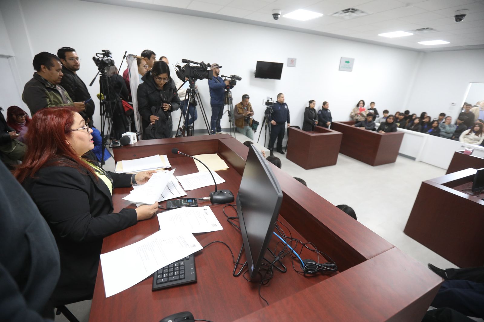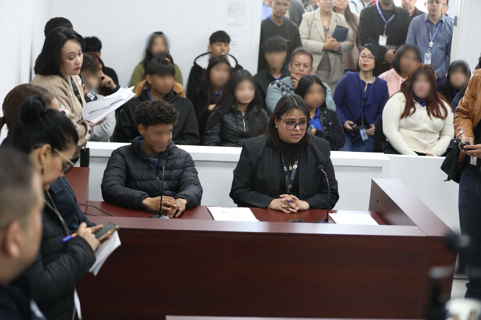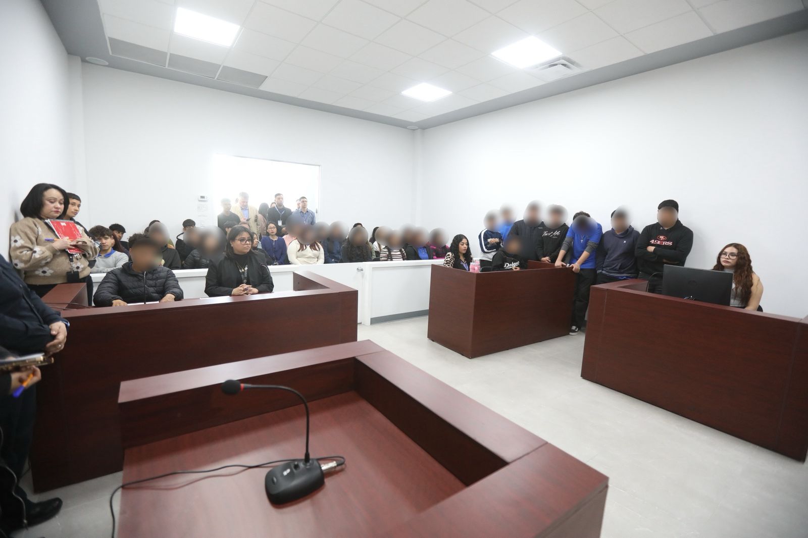 Una vez que se lleva a cabo la plática, pasamos a esta etapa en la que se les invita a este recorrido en donde conocen los procedimientos mediante un simulacro de una audiencia pública, indicó.