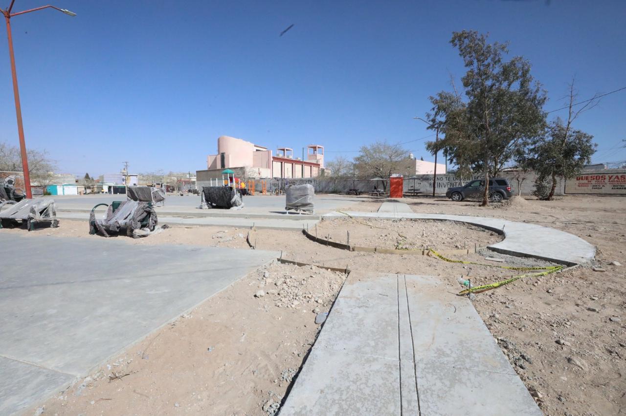 Comentó que los trabajos en este espacio situado en las calles Anémona y Tapioca de la colonia Ampliación Aeropuerto, consisten en la construcción de un andador de concreto, una cancha de usos múltiples con su pintura y rampas para minusválidos, además de la instalación de mobiliario urbano como bancas, contenedores de basura y mesas de picnic.