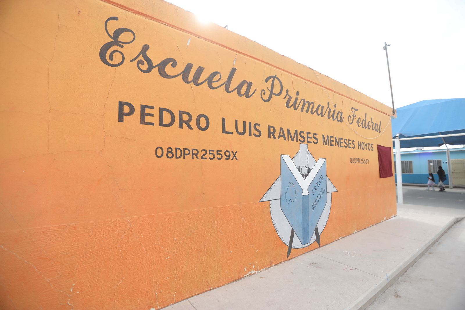 Este día el Presidente Municipal, Cruz Pérez Cuéllar, entregó las obras de rehabilitación de la Escuela Primaria Pedro Luis Ramsés Meneses Hoyos, donde se construyó una cancha de usos múltiples, así como la rehabilitación de los baños, del sistema eléctrico y la iluminación, además del resane y pintura, con una inversión de 1,720,071 pesos.