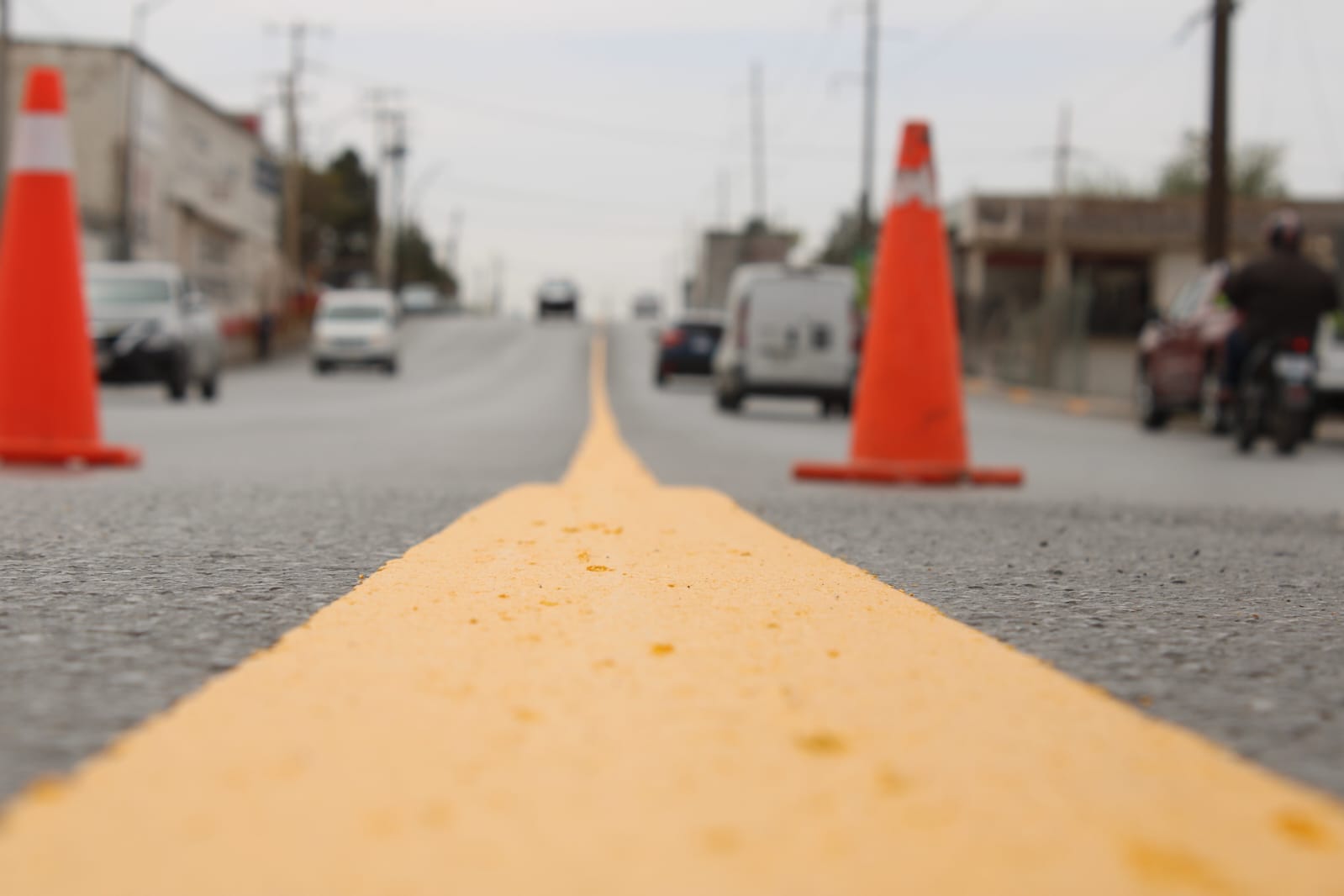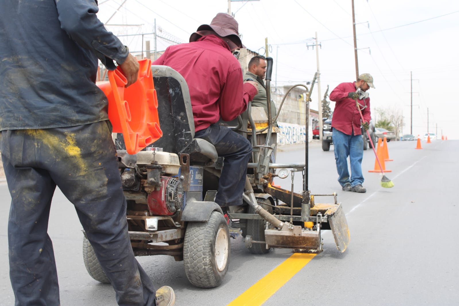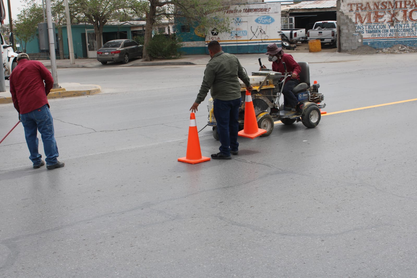 Personal del área de Control de Tráfico de la Coordinación General de Seguridad Vial pintó el eje central para la división de carriles sobre la avenida De los Aztecas, en el tramo que va desde la calle Emilia Pérez Payán hasta la Tzetzales.
