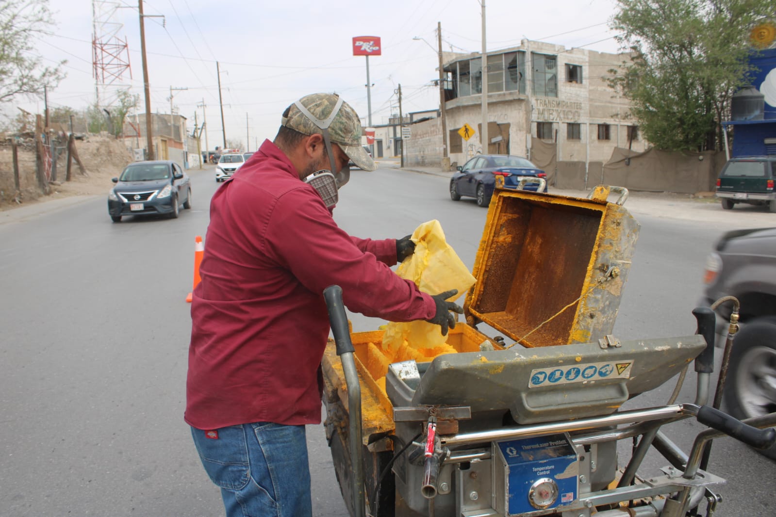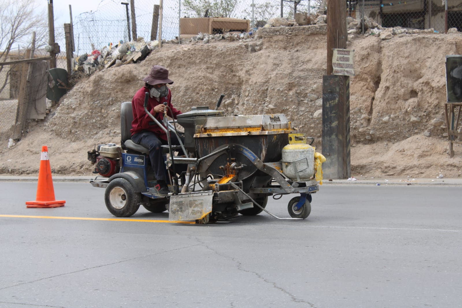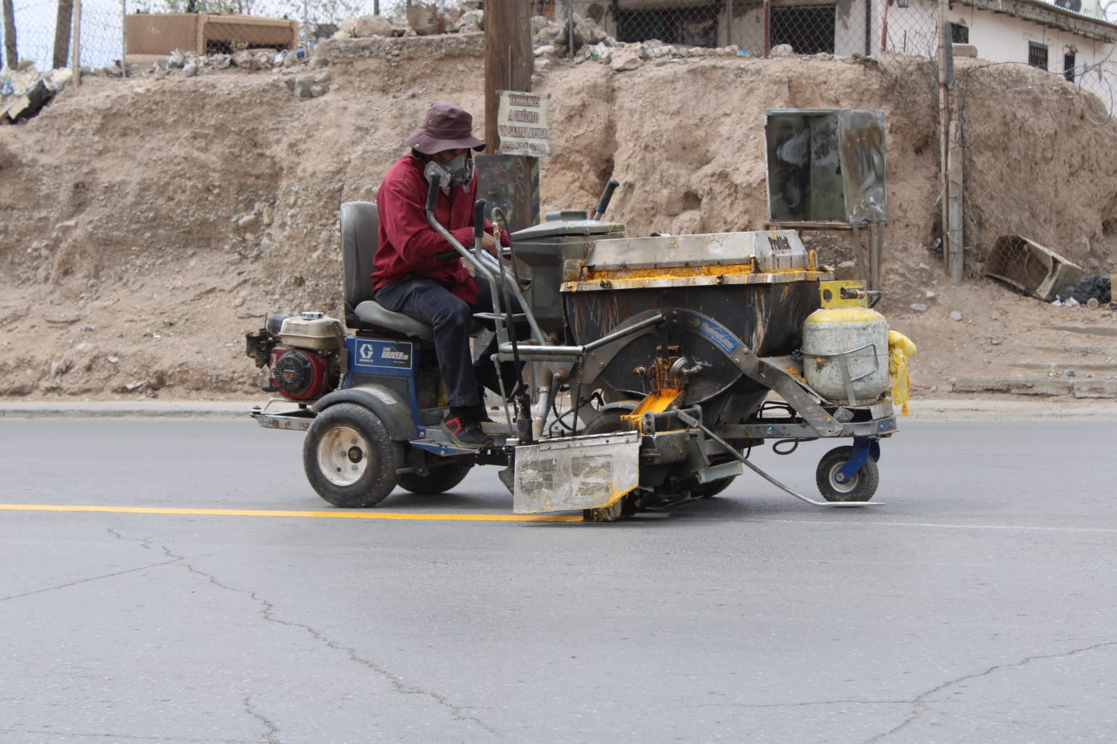 Personal del área de Control de Tráfico de la Coordinación General de Seguridad Vial pintó el eje central para la división de carriles sobre la avenida De los Aztecas, en el tramo que va desde la calle Emilia Pérez Payán hasta la Tzetzales.