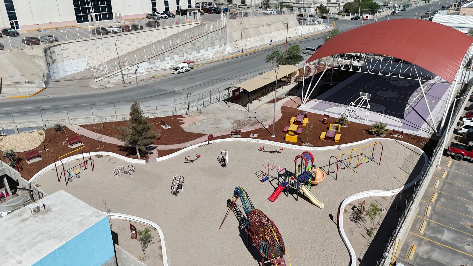El titular de Obras Públicas mencionó que la mejora del parque incluye la pintura de la cancha de usos múltiples, mobiliario urbano, un andador de concreto, cascara de nuez decorativa, así como módulos de juego y de ejercicio, malla sombra, áreas permeables, vegetación, pintura de barda, así como malla ciclónica perimetral y la rehabilitación de los juegos infantiles existentes.