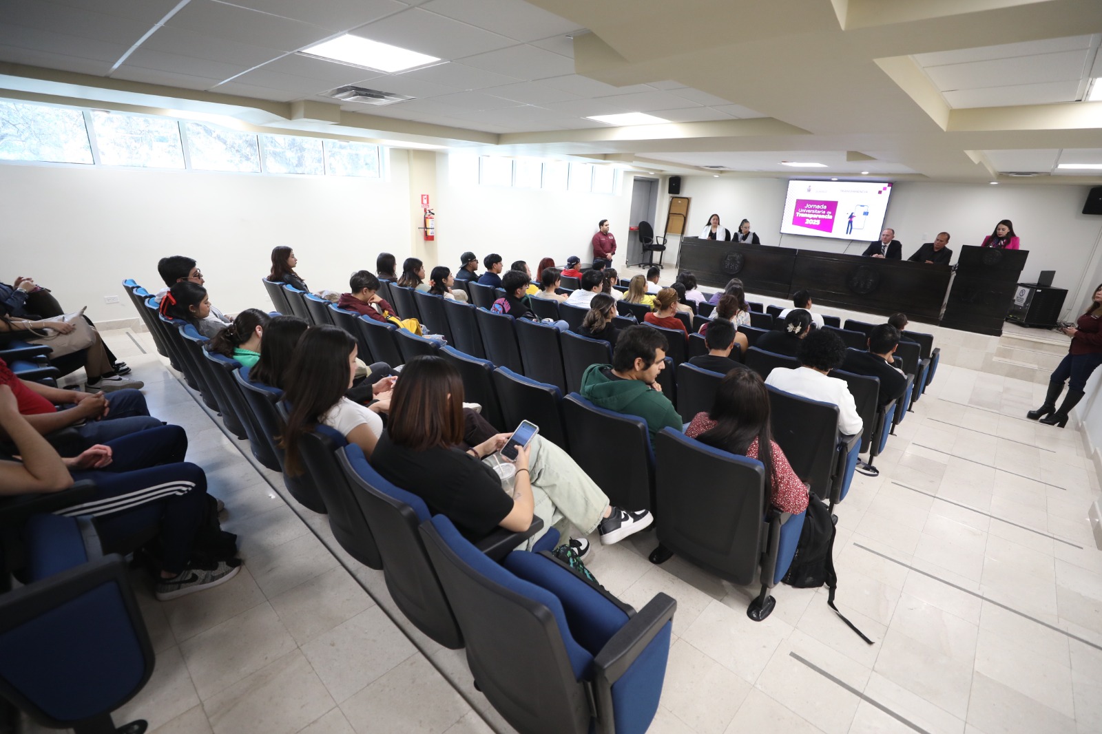 Con el objetivo de que los futuros profesionistas de las carreras de Derecho y Seguridad y Políticas Públicas conozcan cómo ejercer su derecho de solicitar información, el titular de la dependencia, Fernando Gómez Cid de León, brindó una charla a los universitarios.