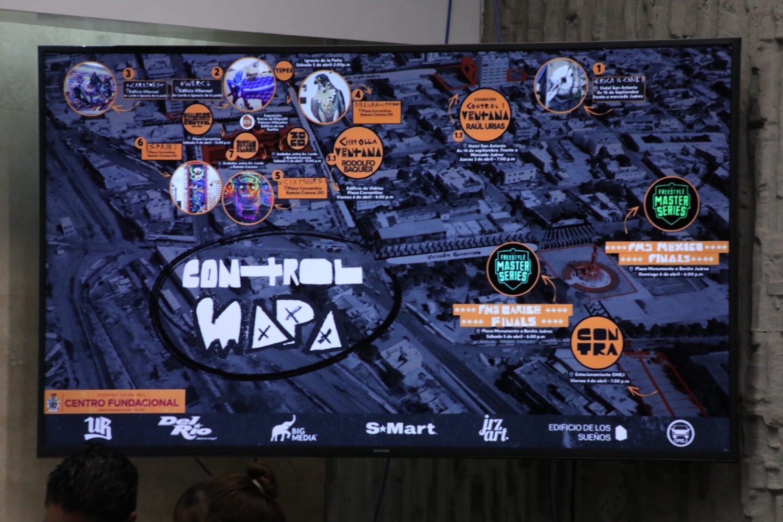 Indicó que de 1 al 6 de abril habrá actividades de muralismo por parte de artistas internacionales en zonas de alta afluencia como la Plaza Cervantina, el Hotel San Antonio, el edificio Carlos Villarreal y el estacionamiento de la Operadora Municipal de Estacionamiento de Juárez (OMEJ), ubicado frente al Monumento a Benito Juárez.