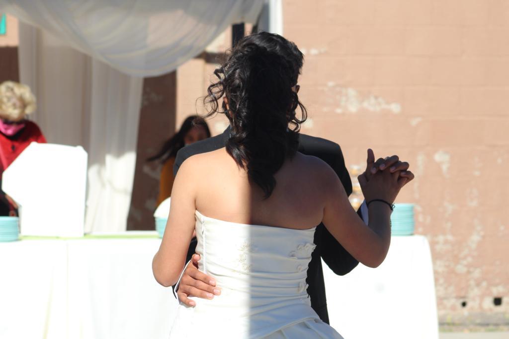 Marilin y su chambelán Kevin de Jesús bailaron el tradicional vals junto a una pequeña corte integrada por amigas y amigos del mismo albergue.