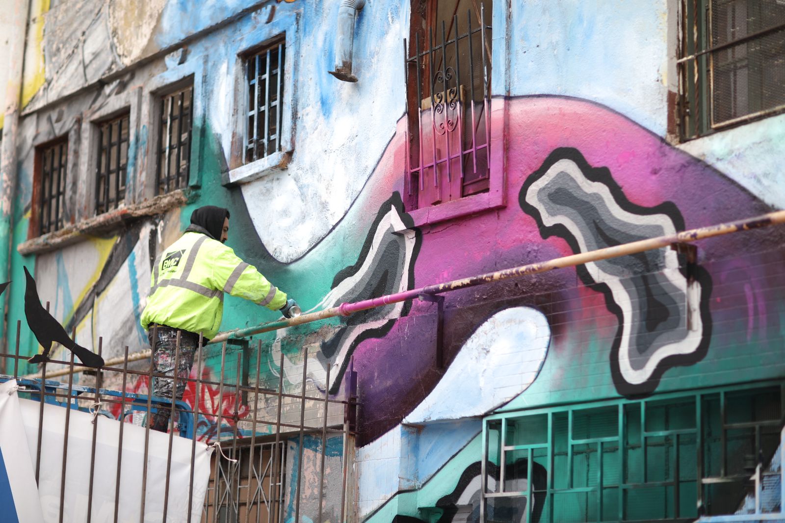 El domingo continuarán pintando los muralistas en la Plaza Cervantina, Edificio Villarreal estacionamiento de la OMEJ (frente al monumento a Benito Juárez) y en el Hotel San Antonio, en horario de 9:00 a 20:00 horas.
