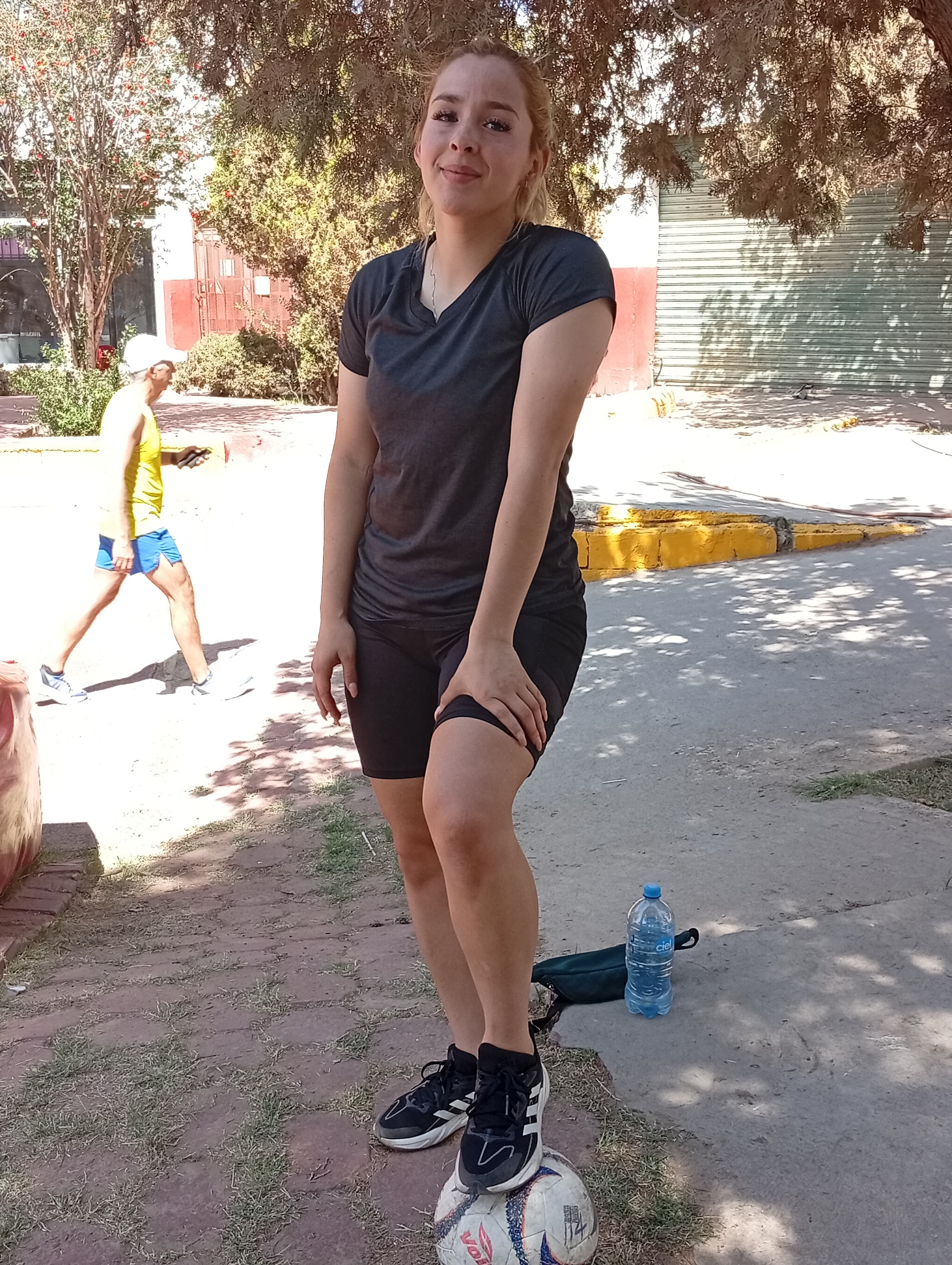 La juarense, defensa central y lateral, hace un receso a su duro entrenamiento para platicar sobre su trayectoria con personal del Instituto Municipal del Deporte, y destaca lo feliz que se sintió al portar con orgullo la playera de la Selección Mexicana de Futbol Femenil.