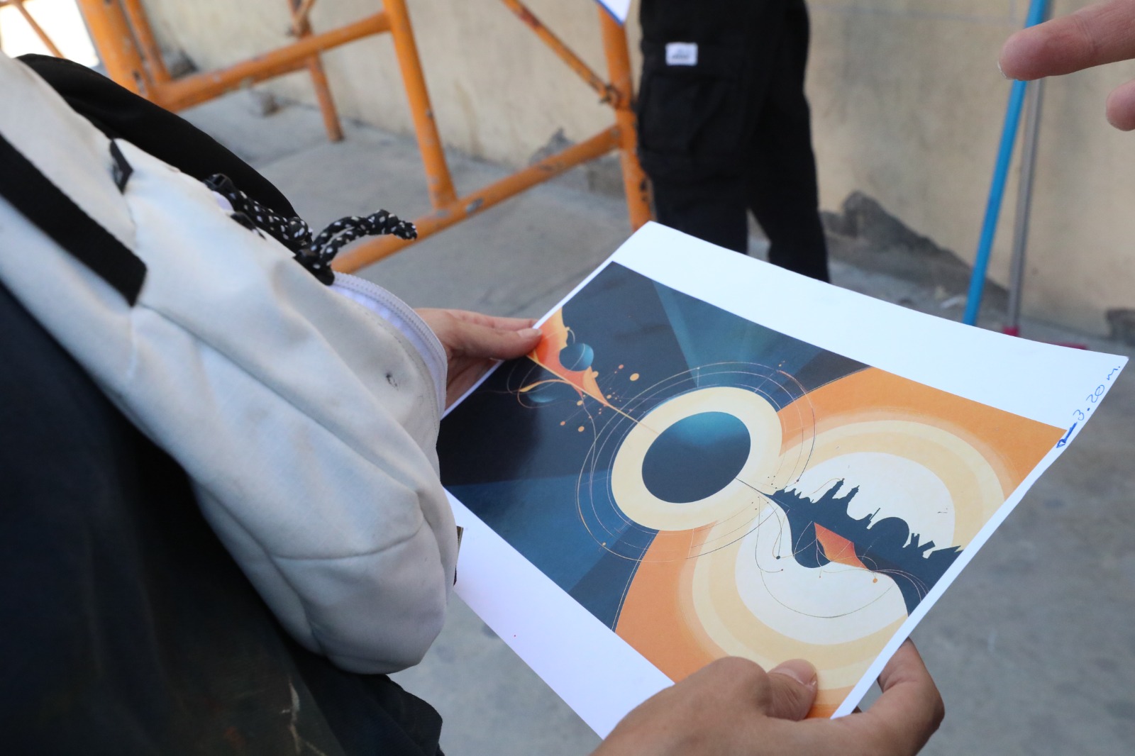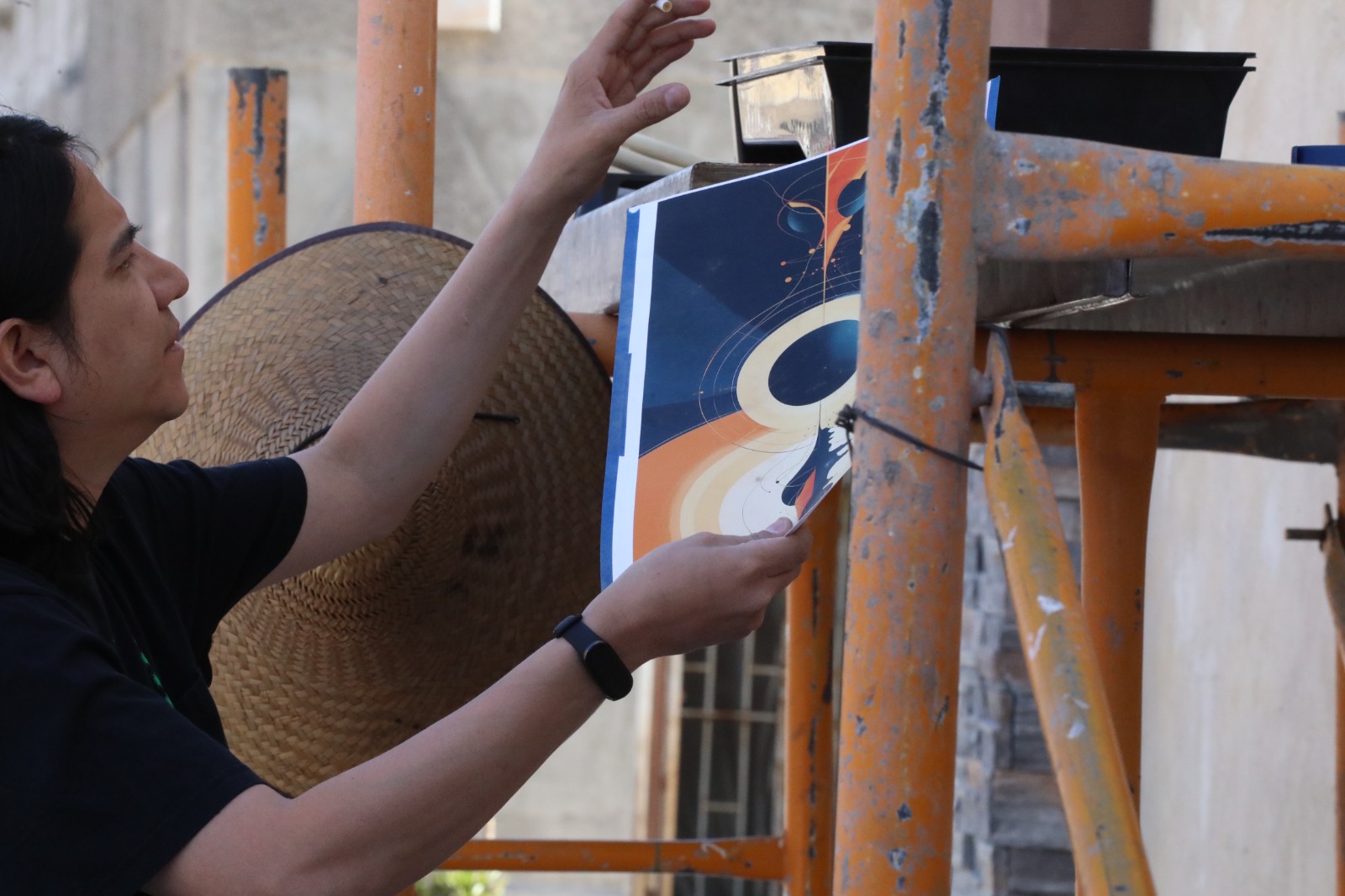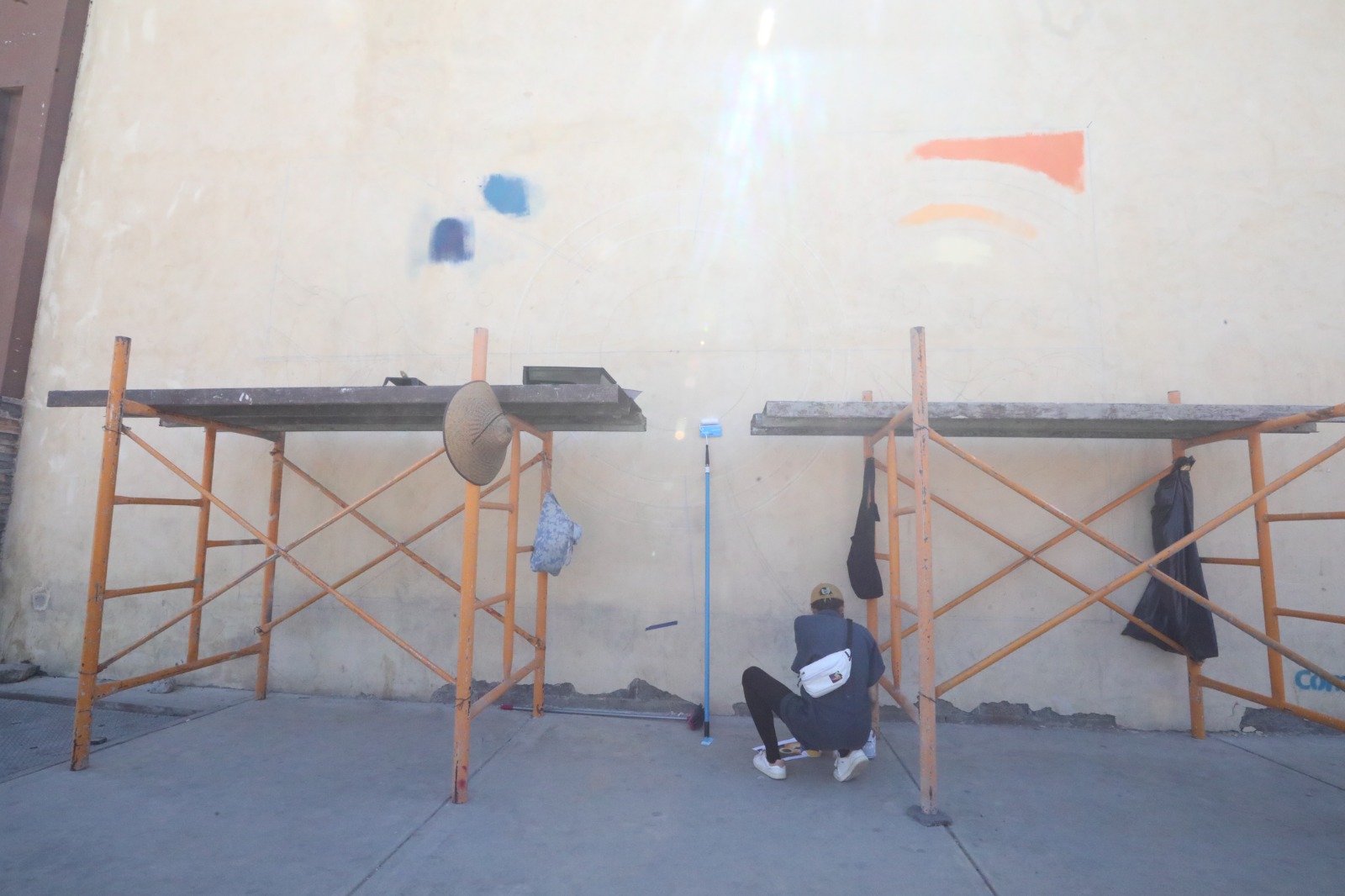 Todos esos sucesos astronómicos serán plasmados en el mural que pinta en la pared trasera de una plaza comercial situada por la calle Santos Degollado.