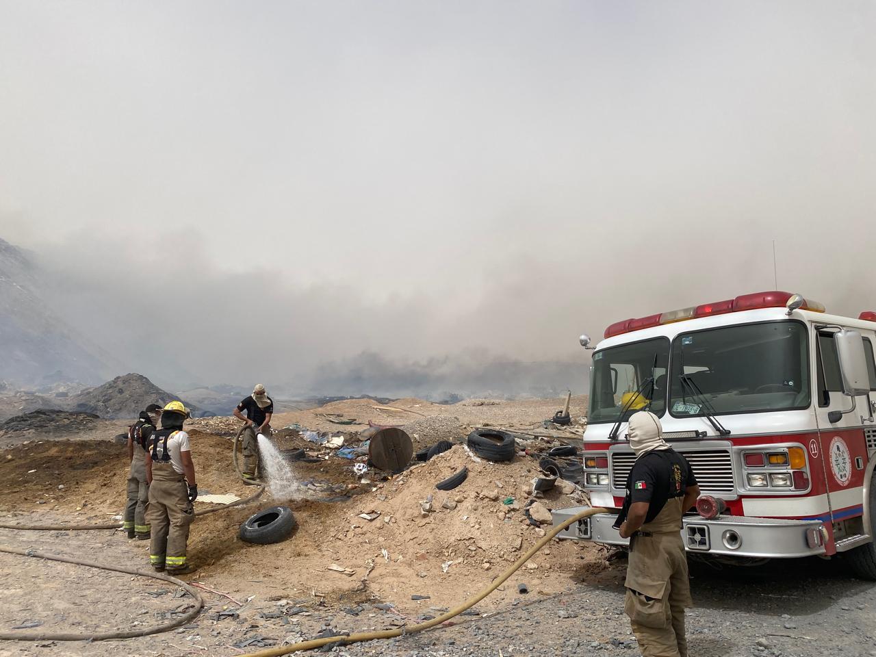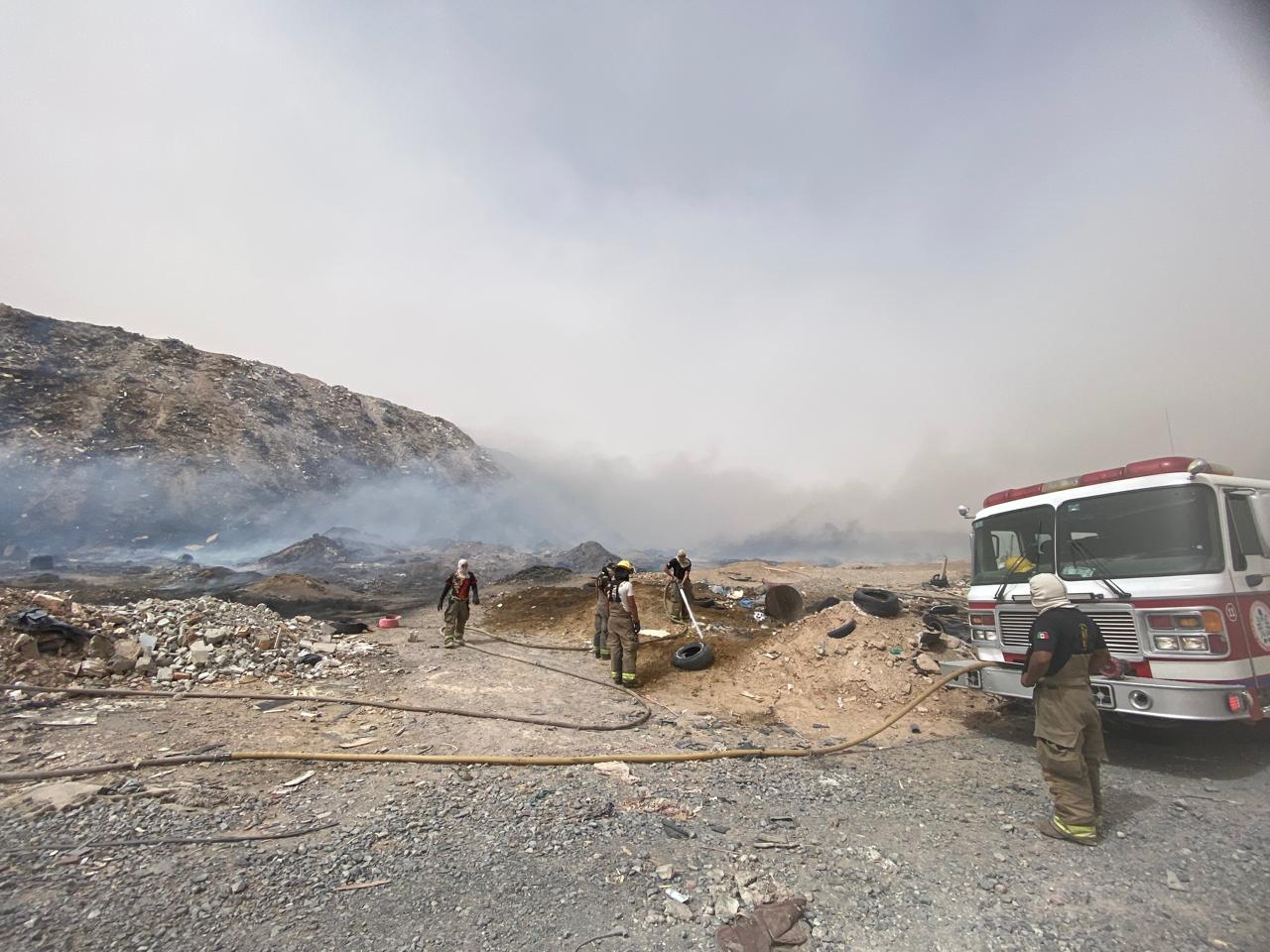 "El incendio es extenso, ya que en el lugar hay acumulación de llantas, plástico y basura", mencionó.