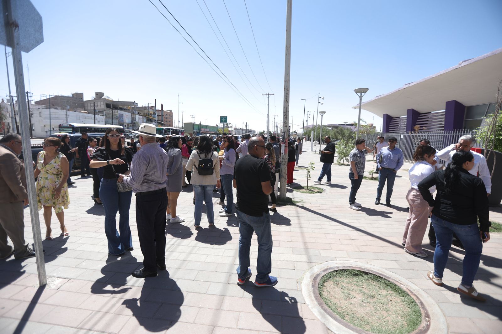 En la Unidad Administrativa “Lic. Benito Juárez”, el simulacro inició a las 11:30, donde se dio la evacuación de 250 empleados y cerca de 100 ciudadanos que acudieron a hacer algún trámite.