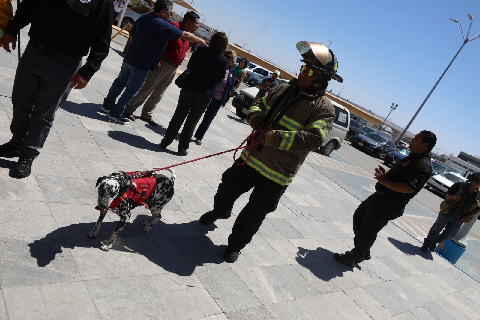 En este simulacro participaron 35 elementos de la Dirección General de Protección Civil, 20 elementos de la Secretaría de Seguridad Pública Municipal y 15 agentes de la Coordinación General de Seguridad Vial, así como brigadistas al interior del edificio, a quienes se les está capacitando para poder intervenir en cualquier tipo de siniestros.