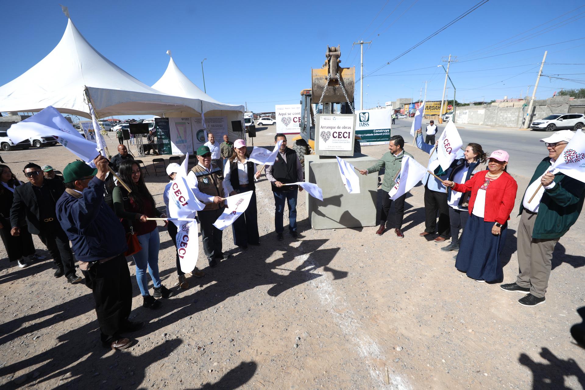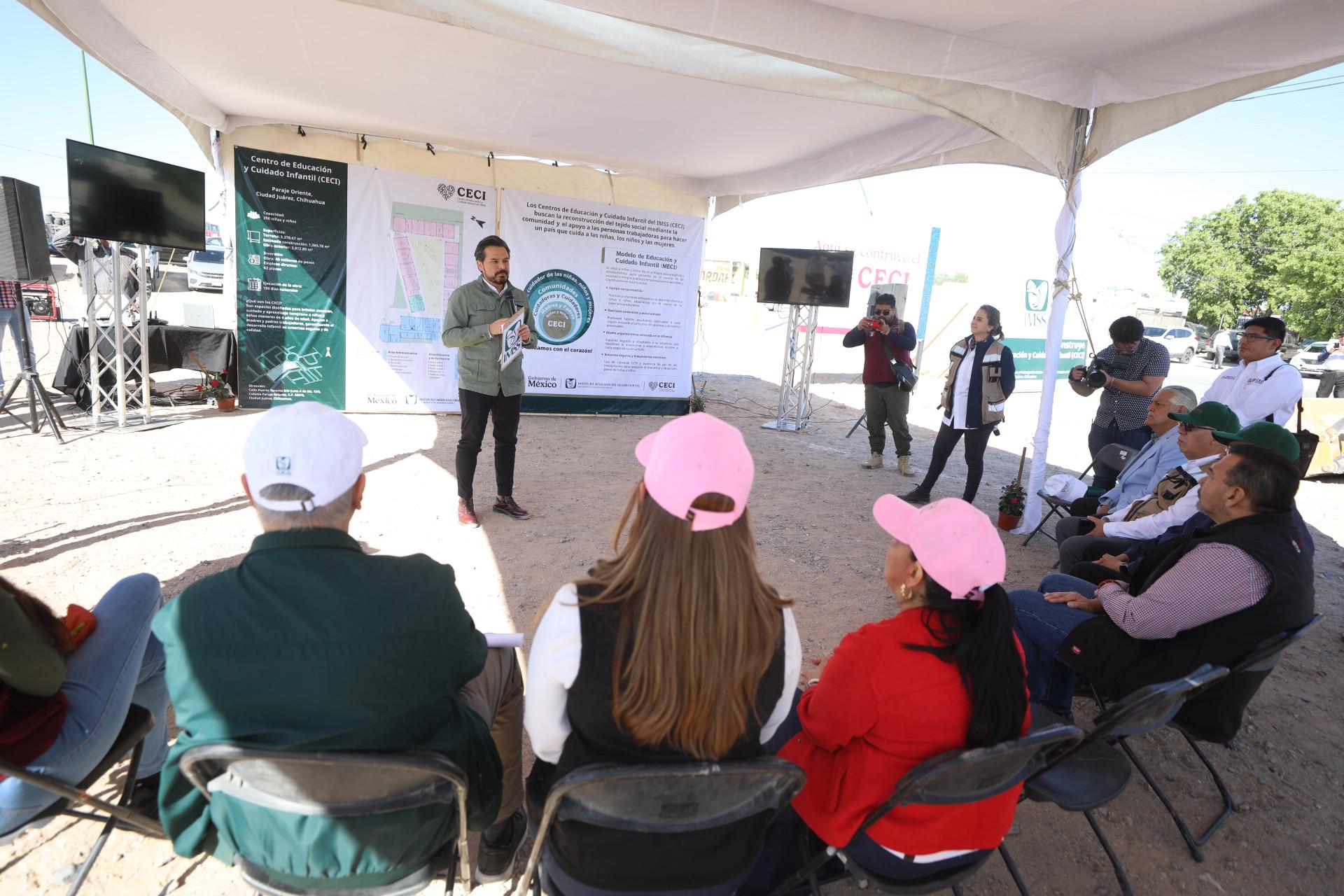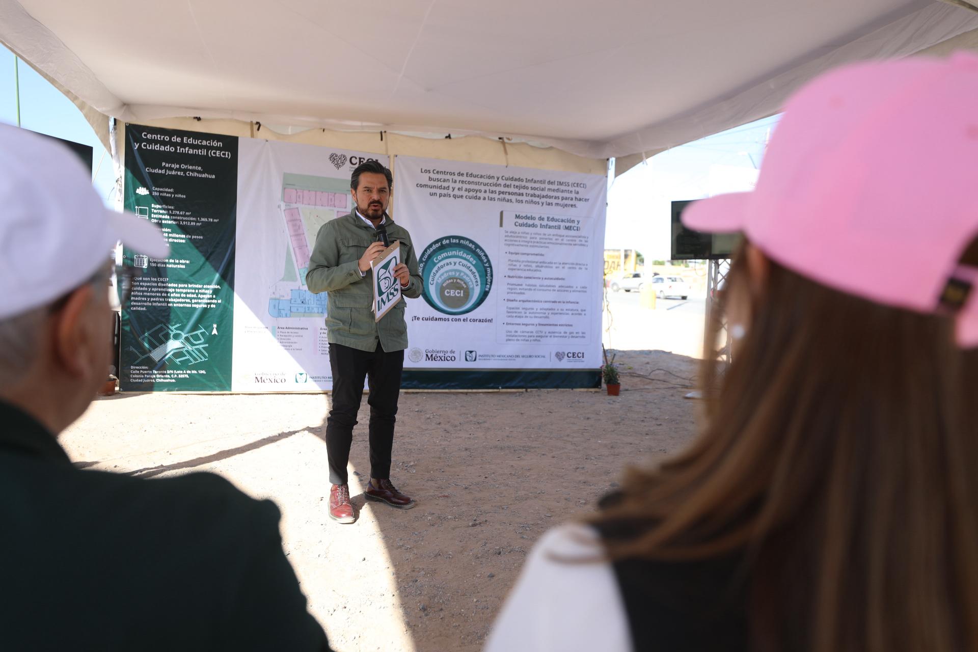 El marco del Día del Niño, el Presidente Municipal, Cruz Pérez Cuéllar y el director general del Instituto Mexicano del Seguro Social, Zoé Robledo Aburto, acudieron a poner la primera piedra de los Centros de Educación y Cuidado Infantil (CECI) en Parajes de Oriente y San Isidro, luego de que hicieron lo mismo en el fraccionamiento Las Gladiolas.