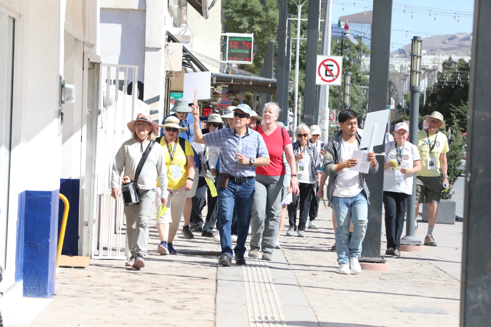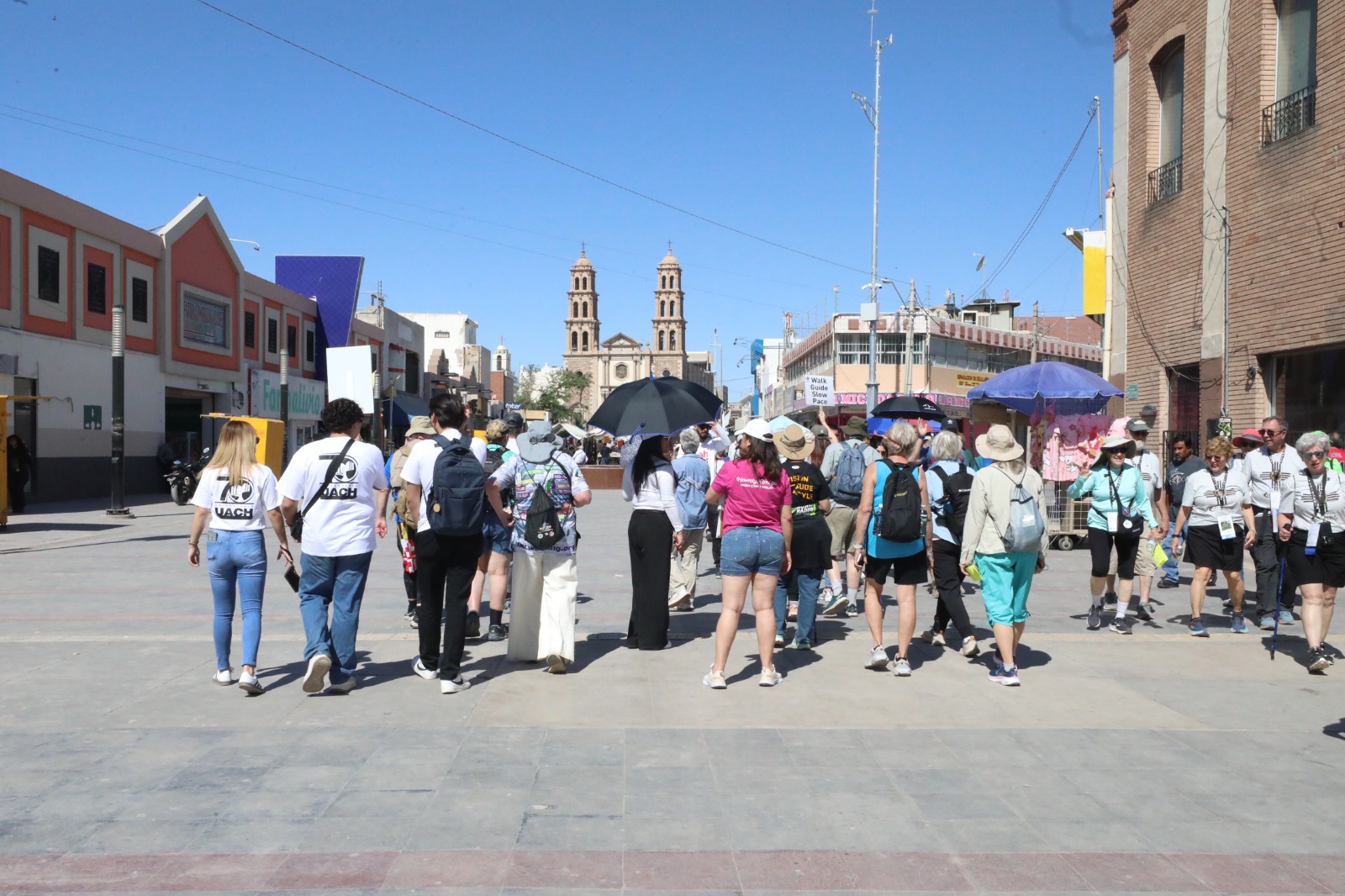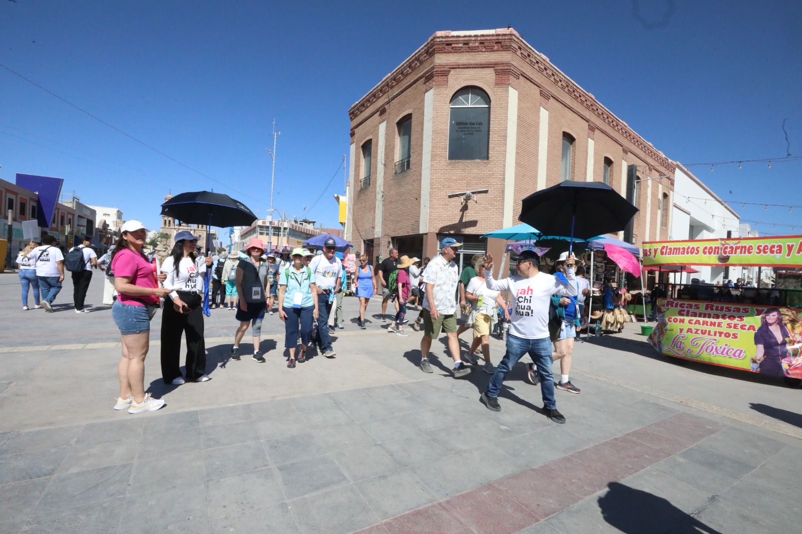 Alrededor de 130 estadounidenses, miembros de la Asociación American Walking Tour de los Estados Unidos, en coordinación con el Buró de Convenciones de Ciudad Juárez y la Oficina de Visit El Paso, recorrieron este día el Centro Histórico de Ciudad Juárez y visitaron algunos de los sitios emblemáticos del sector.