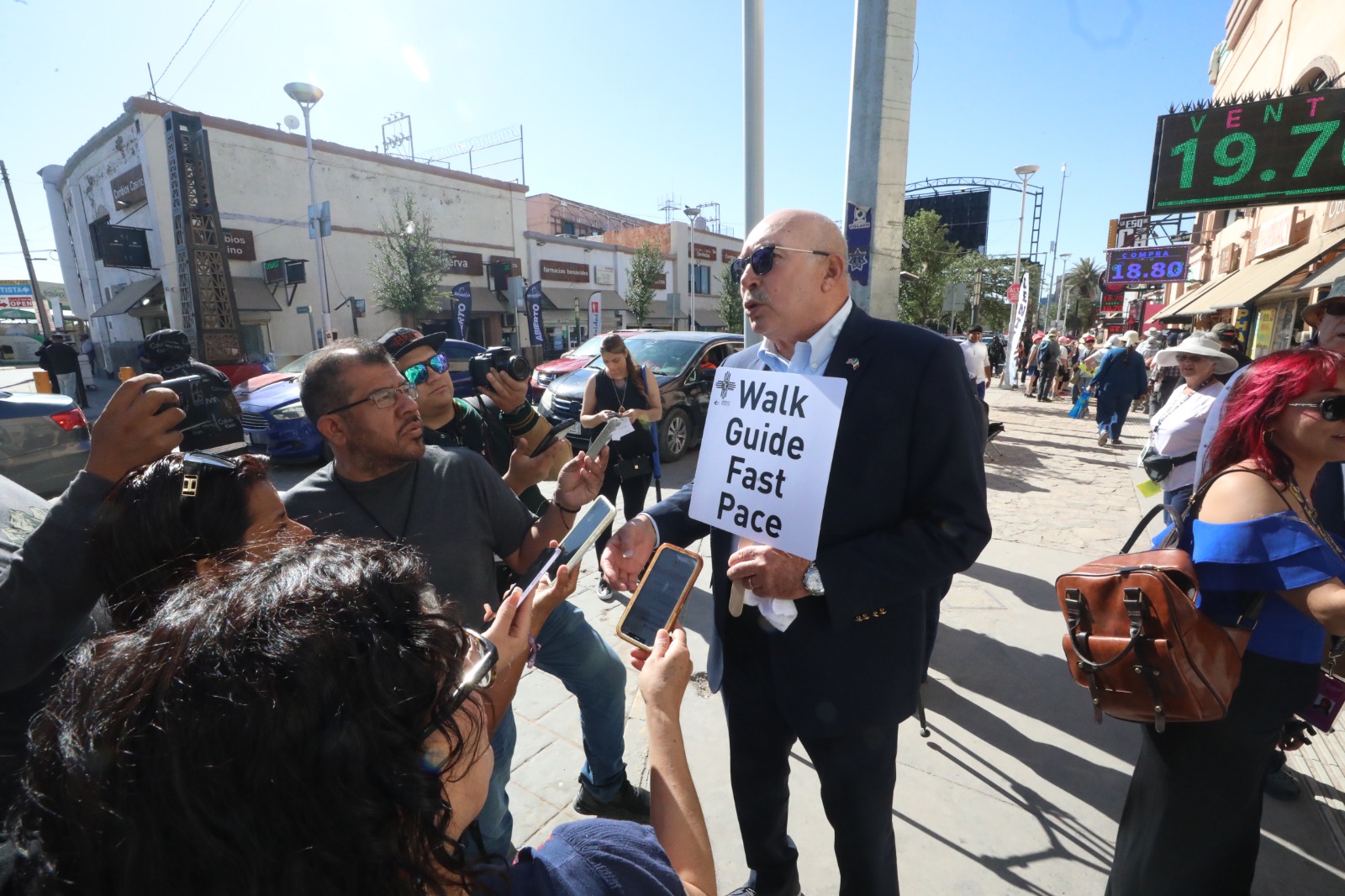 La caminata inició en la avenida Juárez, en el puente internacional Paso del Norte, donde visitaron la primera Iglesia Bautista, el Museo de Tin Tan, el Museo de la Revolución de la Frontera.