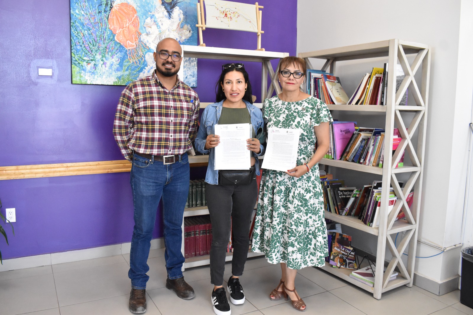 Elvira Urrutia Castro, directora general del Instituto Municipal de las Mujeres (IMM), y Lorena Estrada Calleros, presidenta del Comité de vecinos del Bazar Cultural Monumento a Benito Juárez, firmaron un convenio de colaboración para el manejo en comodato de baños públicos.