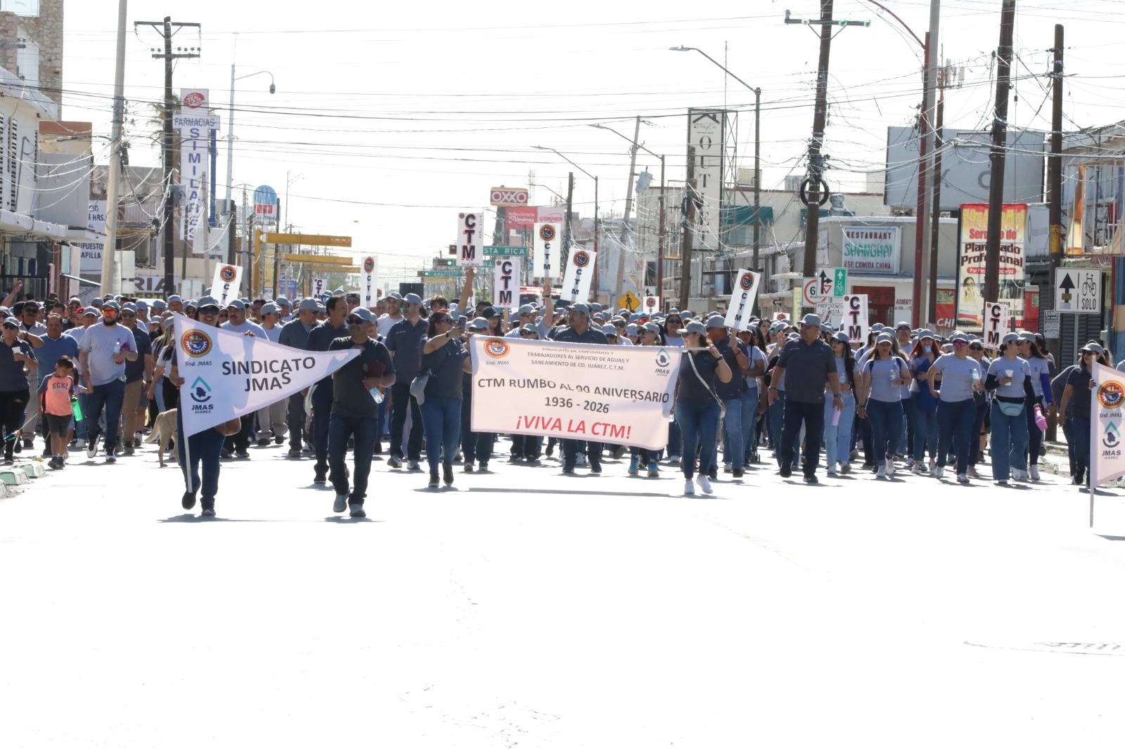 En el desfile participaron trabajadores de los diferentes sindicatos, entre ellos de la Junta Municipal de Agua y Saneamiento (JMAS); Convertors de México; Lear, Eagle Ottawa, Bimbo, Trabajadores del Volante, Materialistas de Ciudad Juárez, Sindicato Único de Trabajadores de la Industria de la Carne.