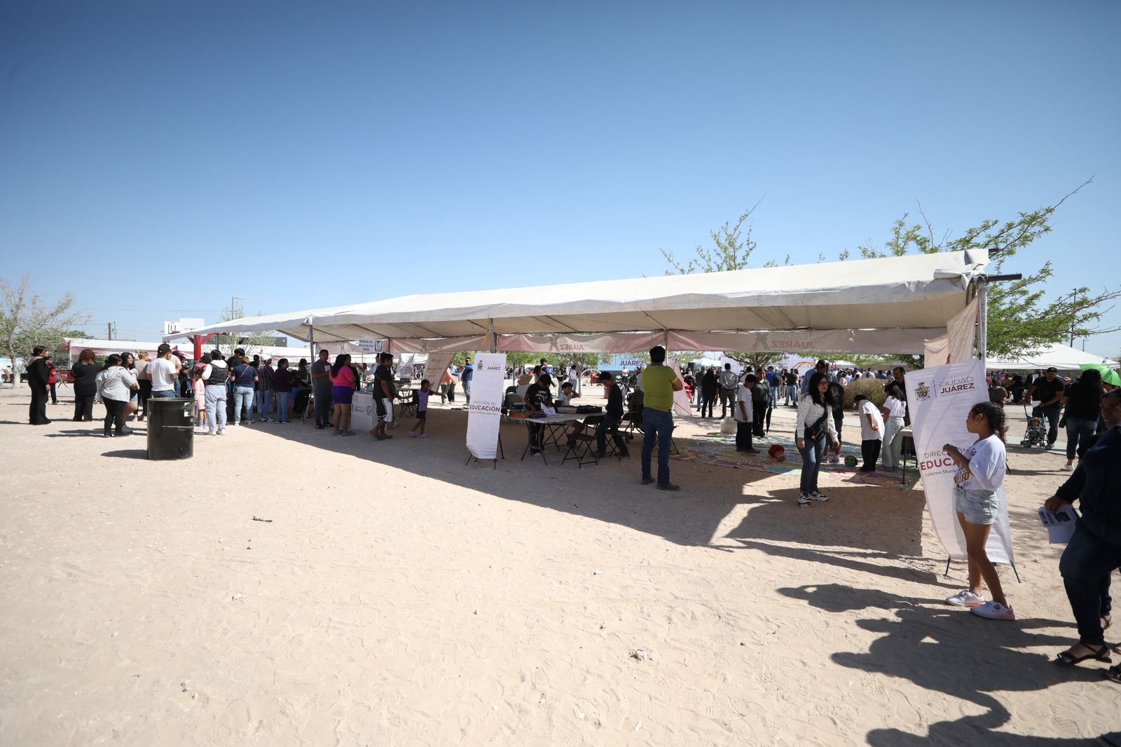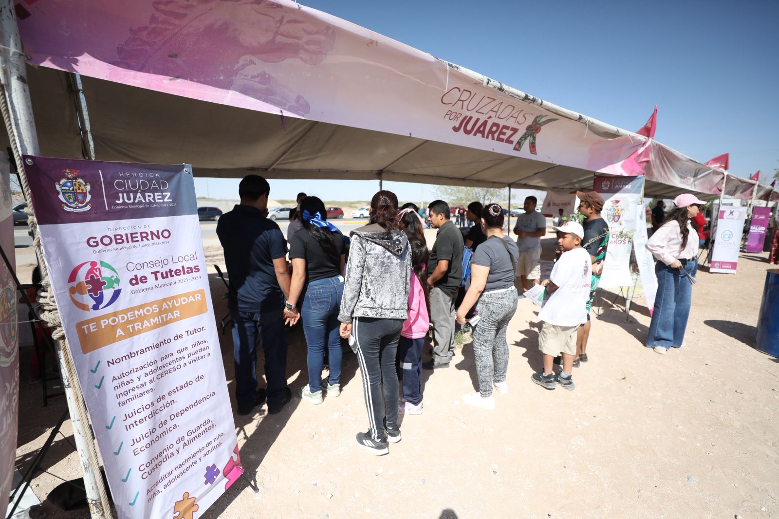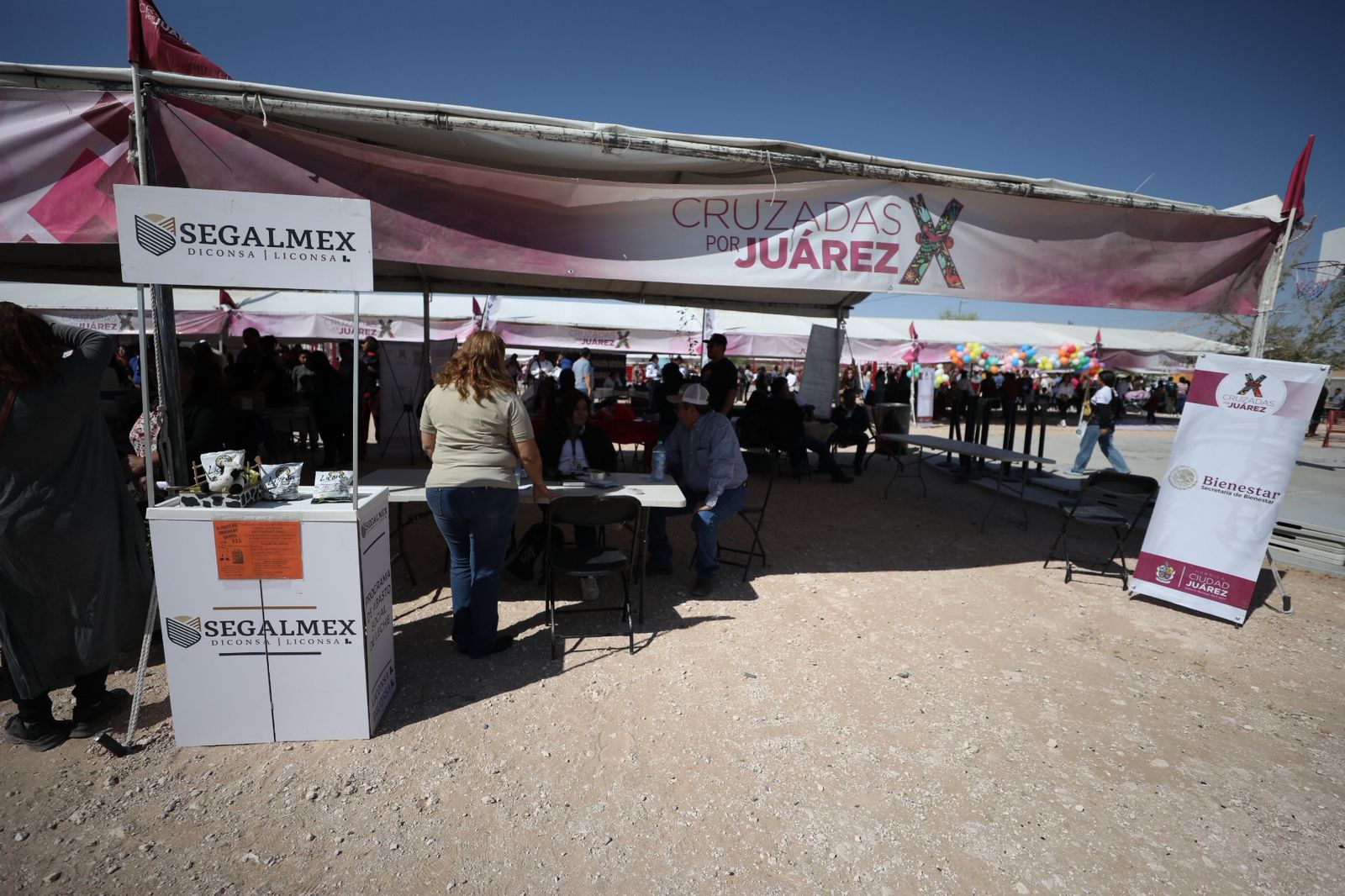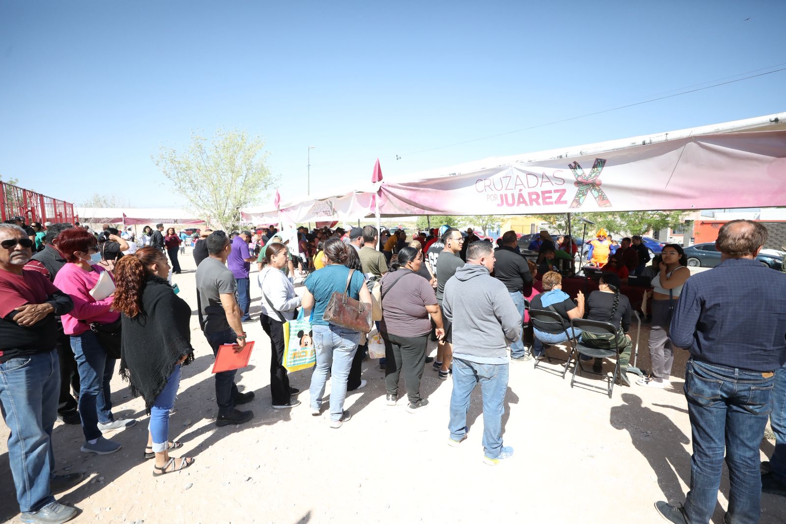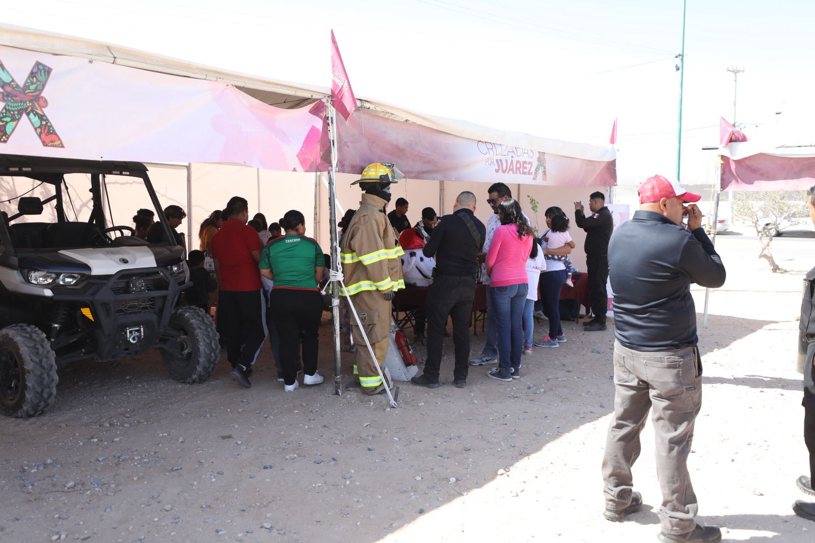 Habitantes de la colonia Sierra Vista y zonas aledañas se beneficiaron este sábado con los diversos servicios y apoyos que otorgó el Gobierno Municipal en las "Cruzadas por Juárez, Atención a las Causas, Ciudad Juárez por la Paz".