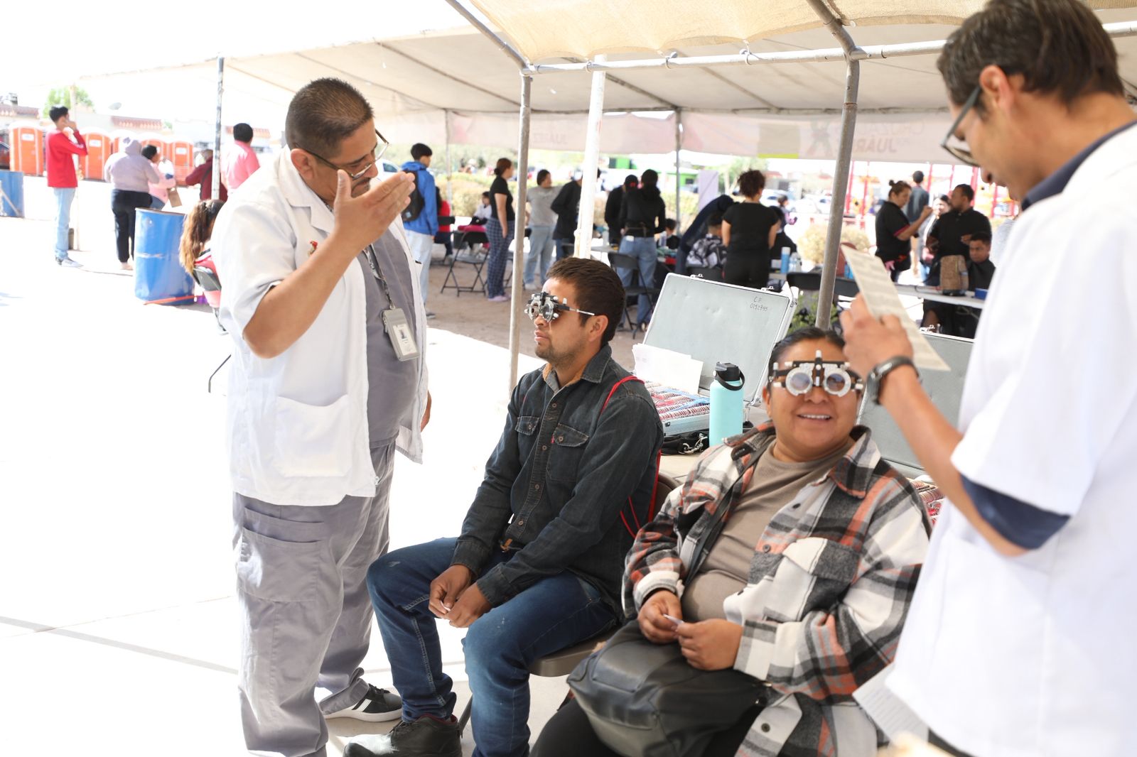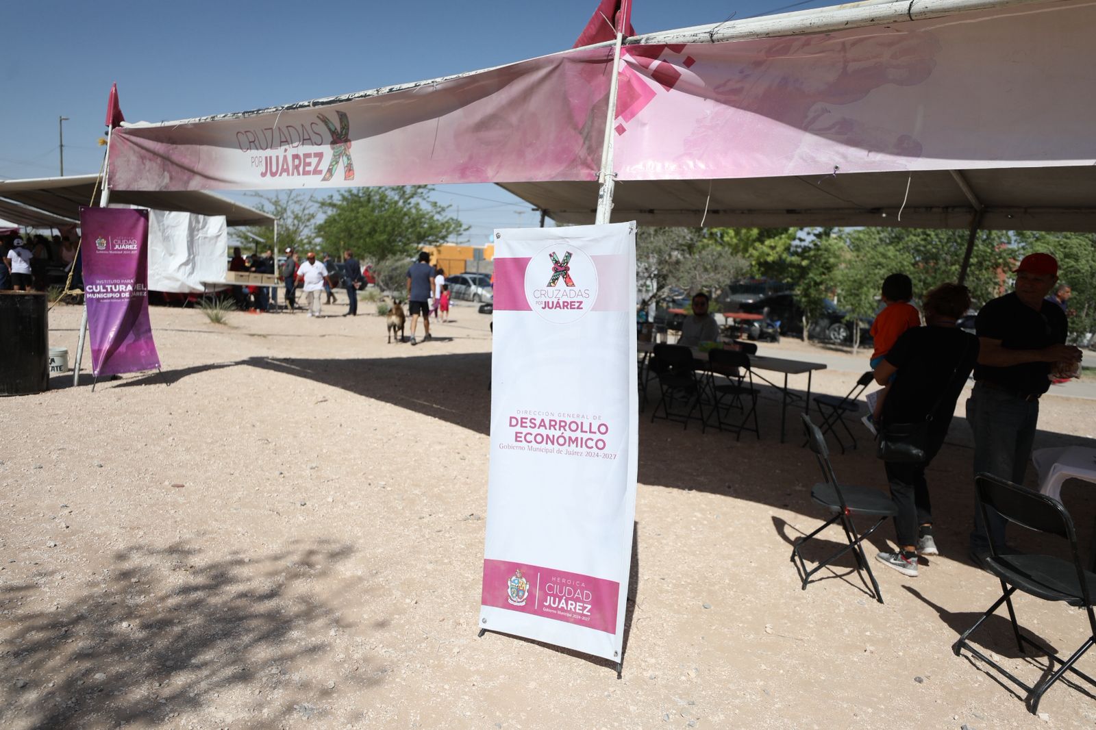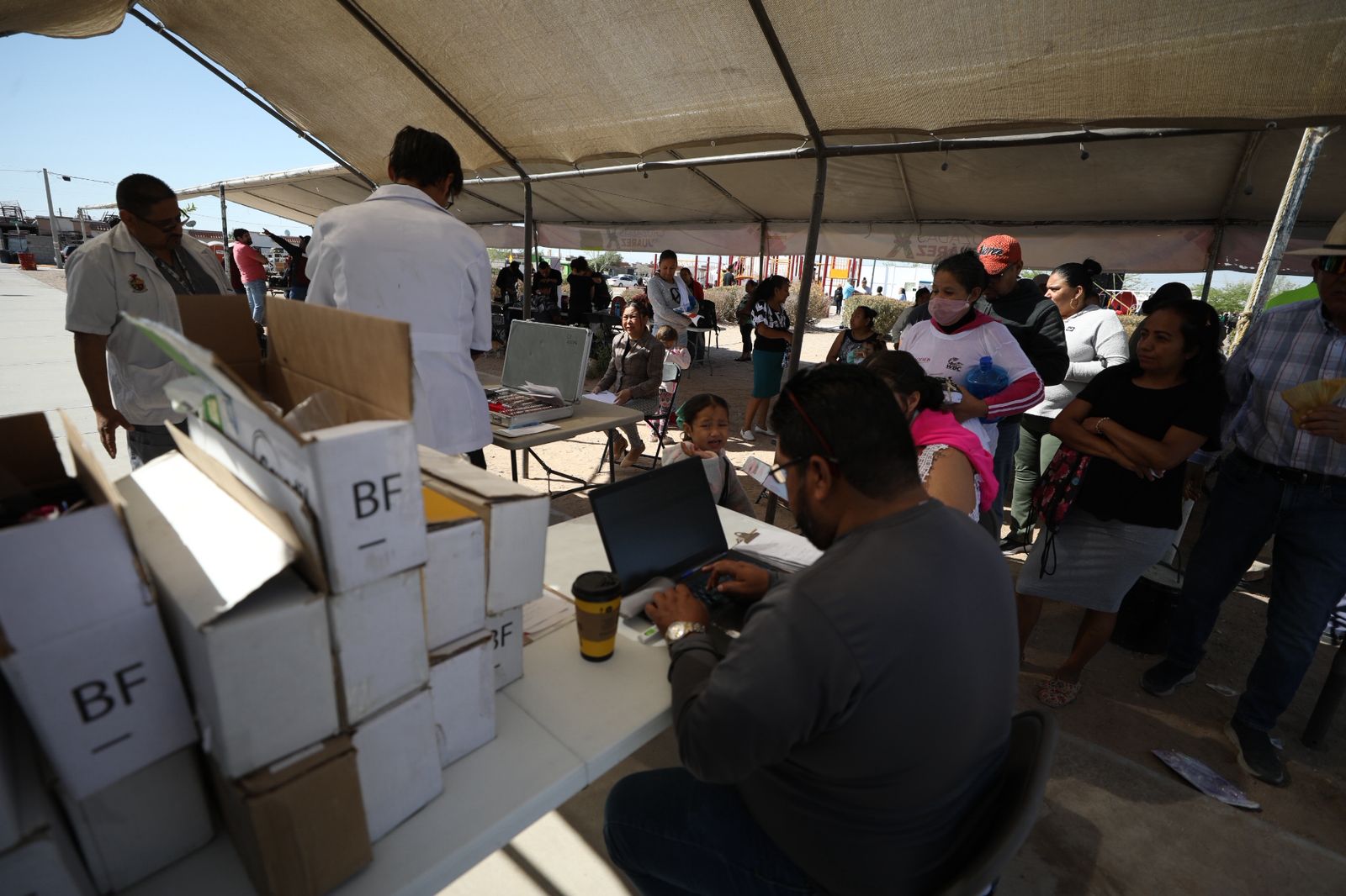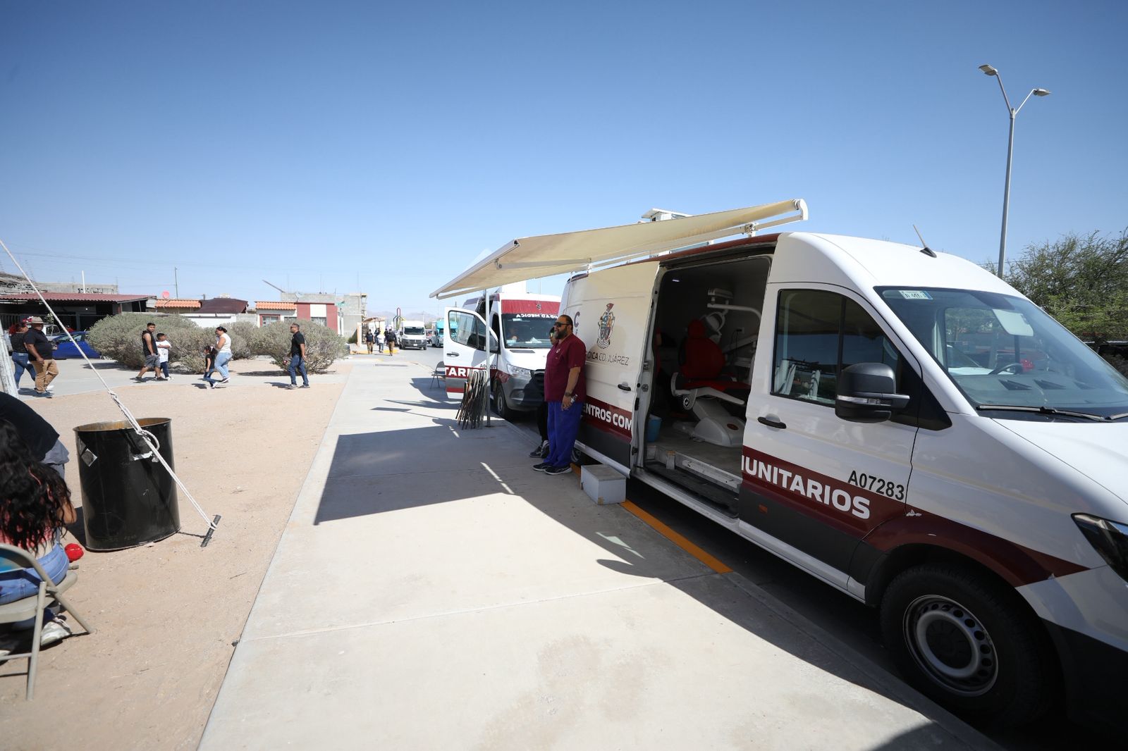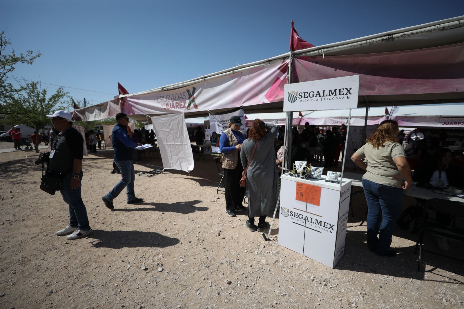 Habitantes de la colonia Sierra Vista y zonas aledañas se beneficiaron este sábado con los diversos servicios y apoyos que otorgó el Gobierno Municipal en las "Cruzadas por Juárez, Atención a las Causas, Ciudad Juárez por la Paz".