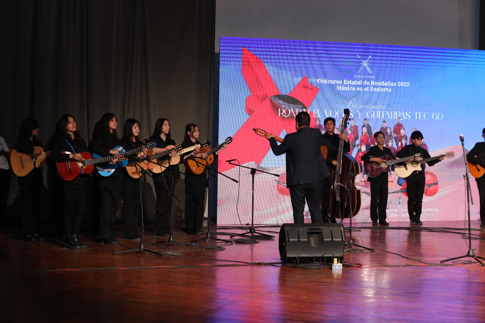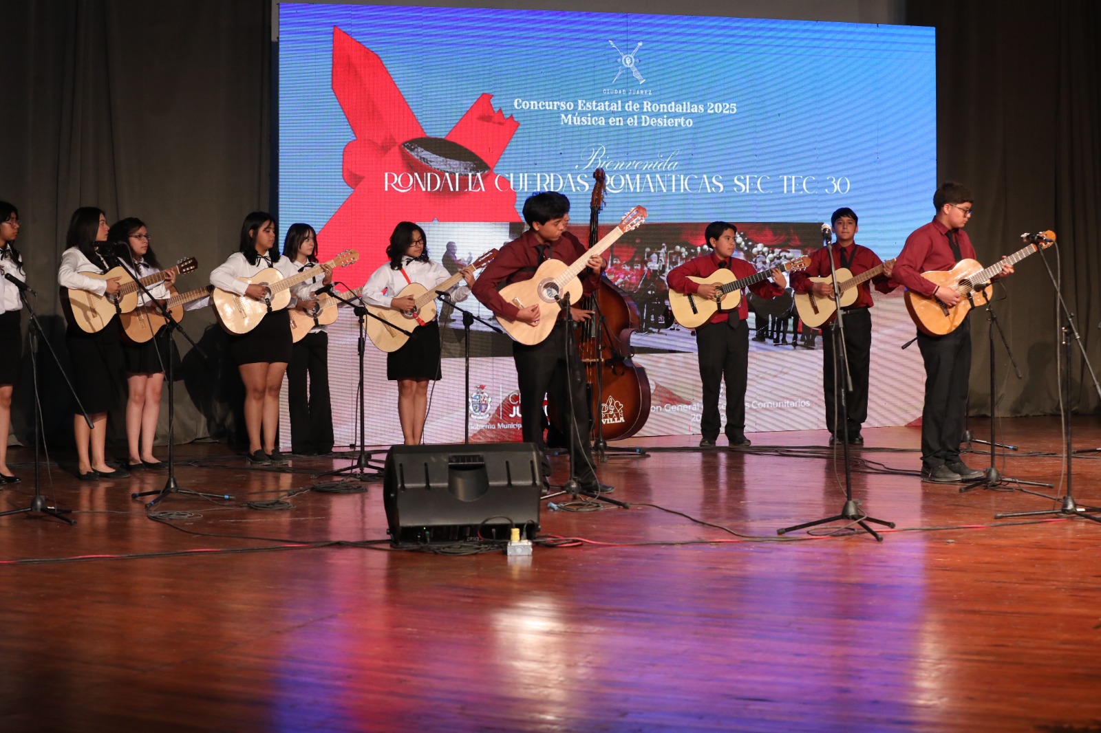 Esta mañana se llevó a cabo la primera parte del Concurso Estatal de Rondallas Música en el Desierto 2025, un evento organizado por la Dirección General de Centros Comunitarios del Gobierno Municipal, que reunió a 19 agrupaciones de diferentes escuelas, centros comunitarios y municipios del estado.