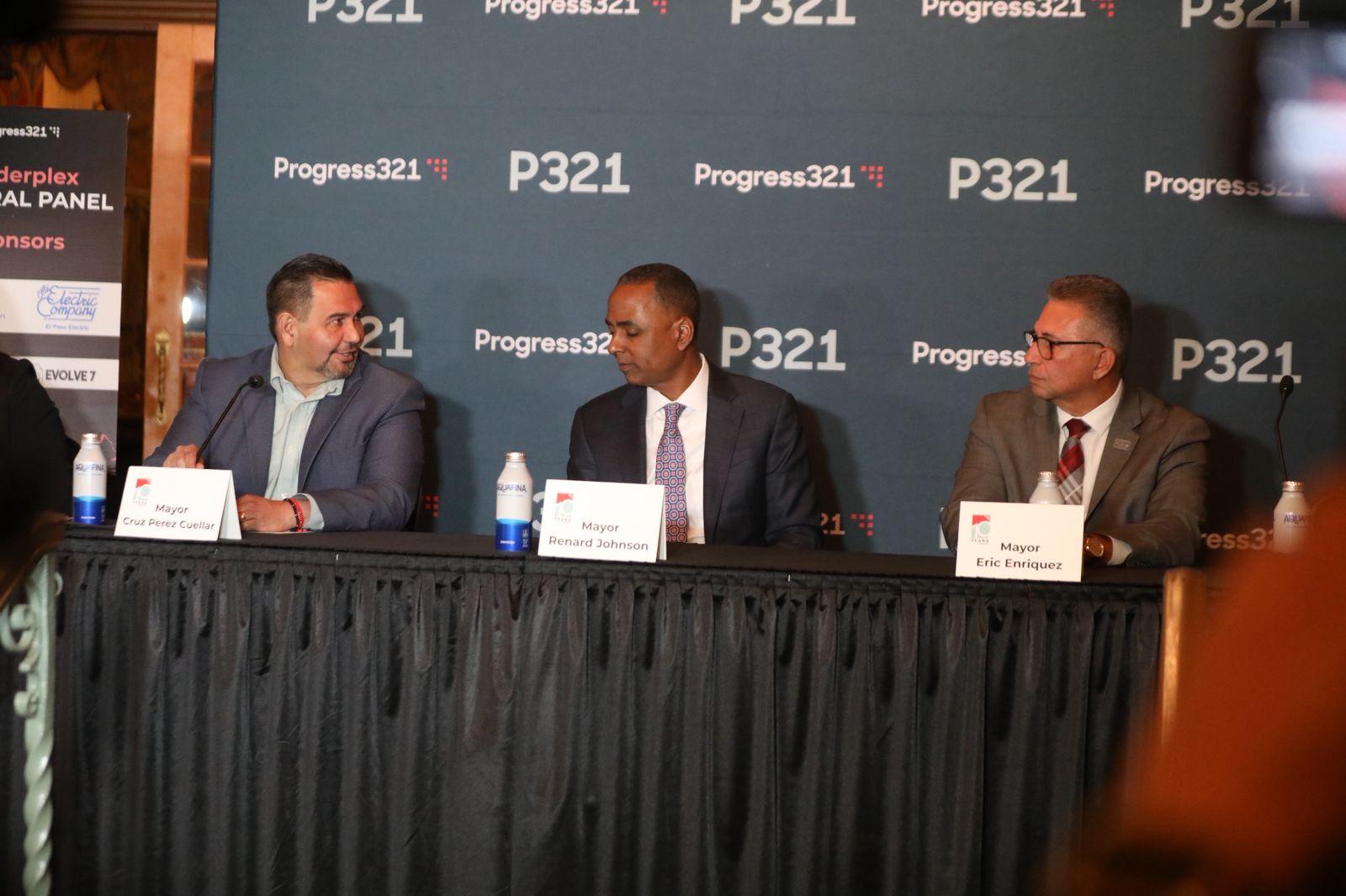 Un día podremos hacer un plan que integre a las tres comunidades: El Paso, Las Cruces y Ciudad Juárez, el cual presentemos en Washington y en la Ciudad de México, para que ese día nos vean como una sola región más allá de ser tres estados y dos países, indicó el Presidente Municipal, Cruz Pérez Cuéllar en el “Progress 321 Borderplex Mayoral Panel”.