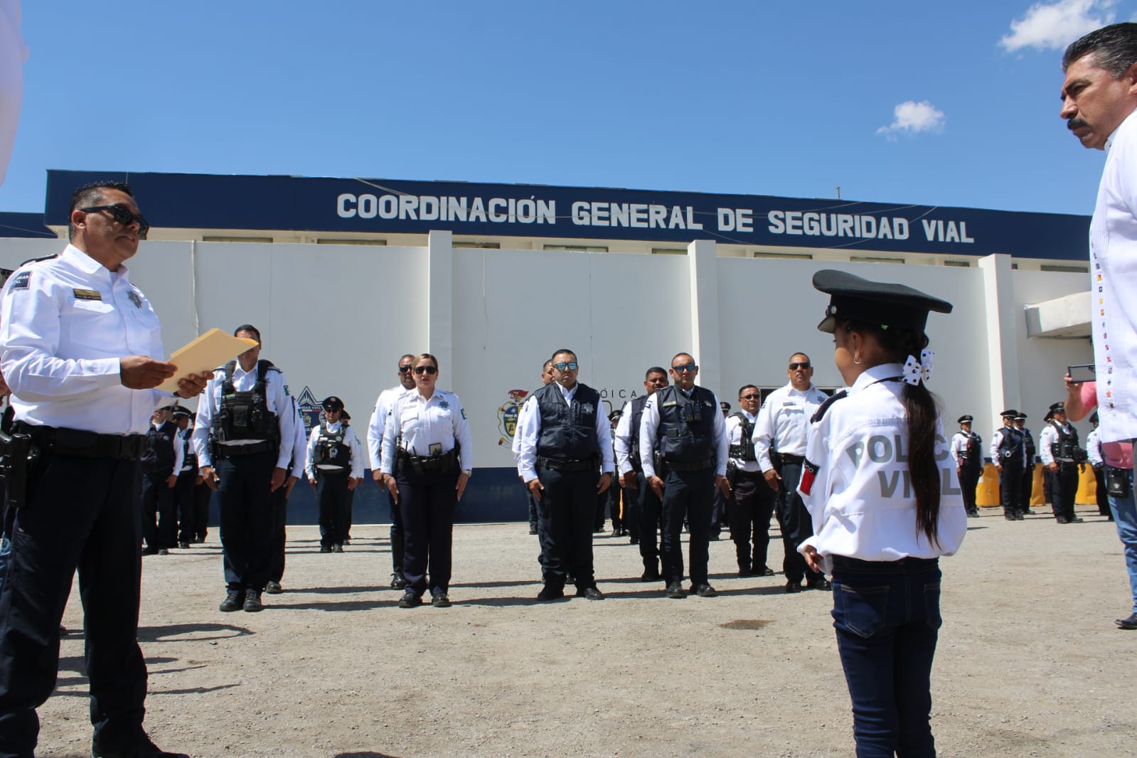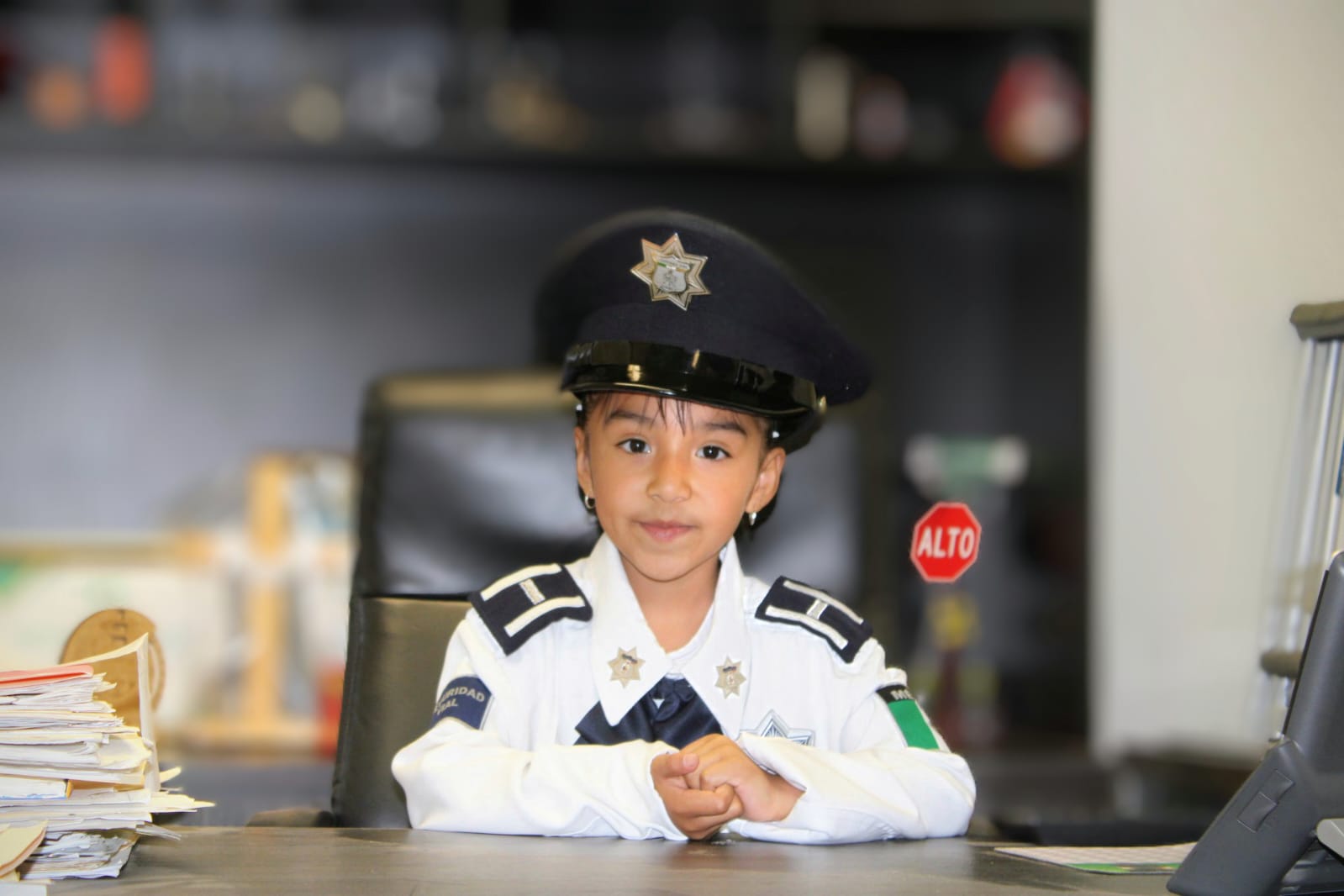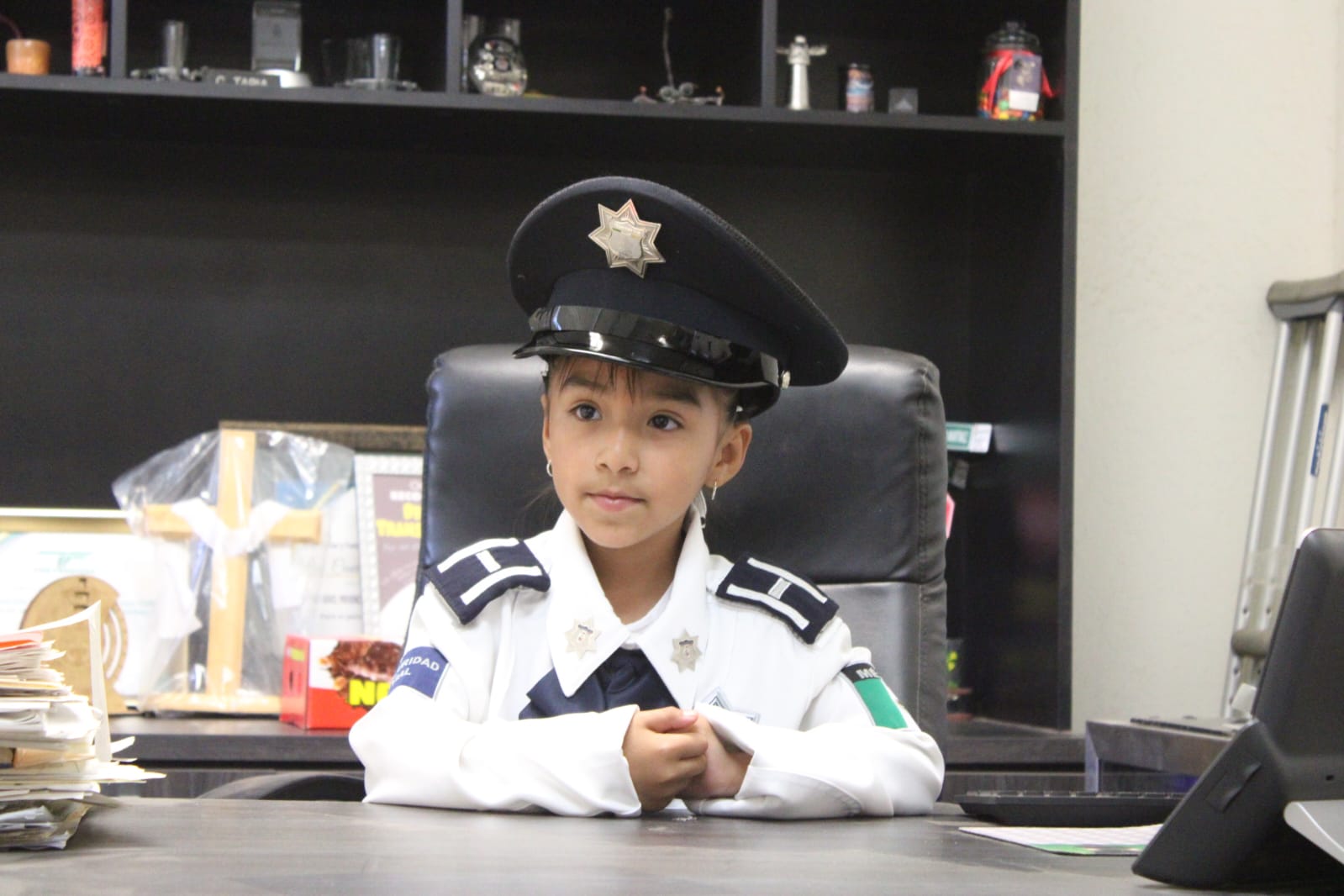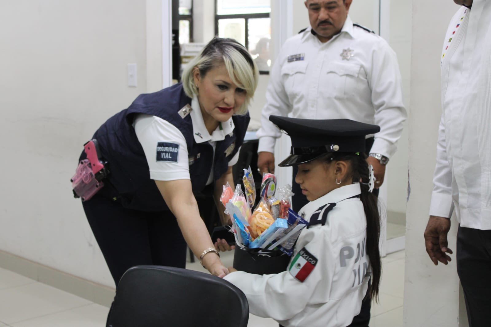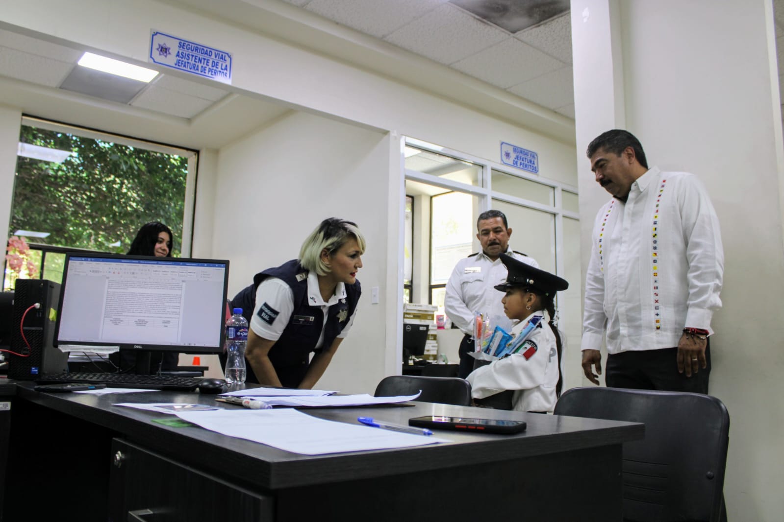La pequeña, quien estuvo acompañada en todo momento por su madre, Sandra De Anda, fue recibida con entusiasmo por la plantilla de colaboradores de esta dependencia municipal, donde asumió simbólicamente las responsabilidades del cargo, recorrió las instalaciones para conocer de cerca las labores que se realizan y dio la instrucción a los policías viales de cuidar a todos los niños de la ciudad.