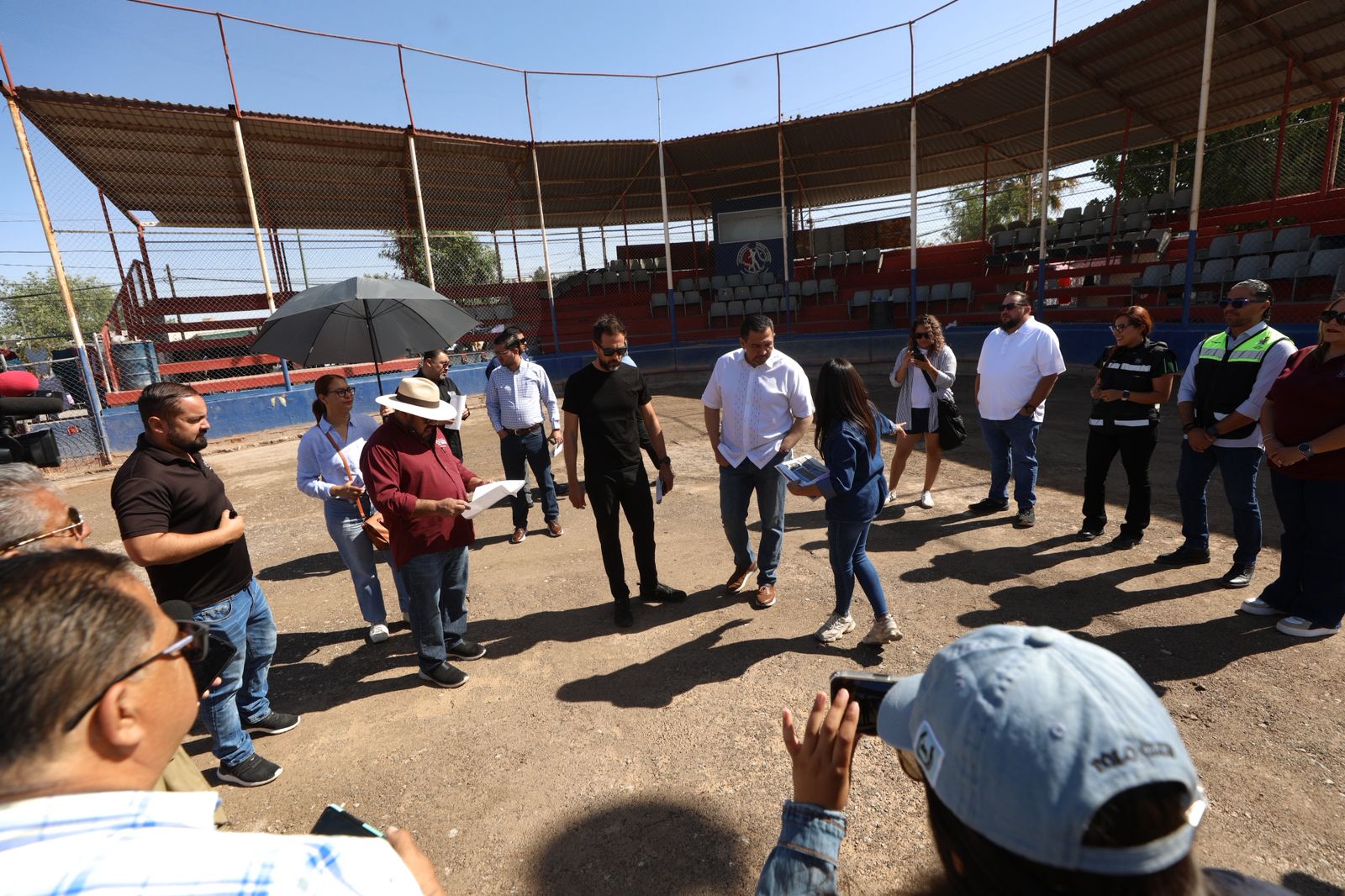 El Presidente Municipal, Cruz Pérez Cuéllar, supervisó este día las obras de rehabilitación del campo de la Liga de Beisbol Infantil y Juvenil Satélite, un proyecto del programa de Presupuesto Participativo 2024.