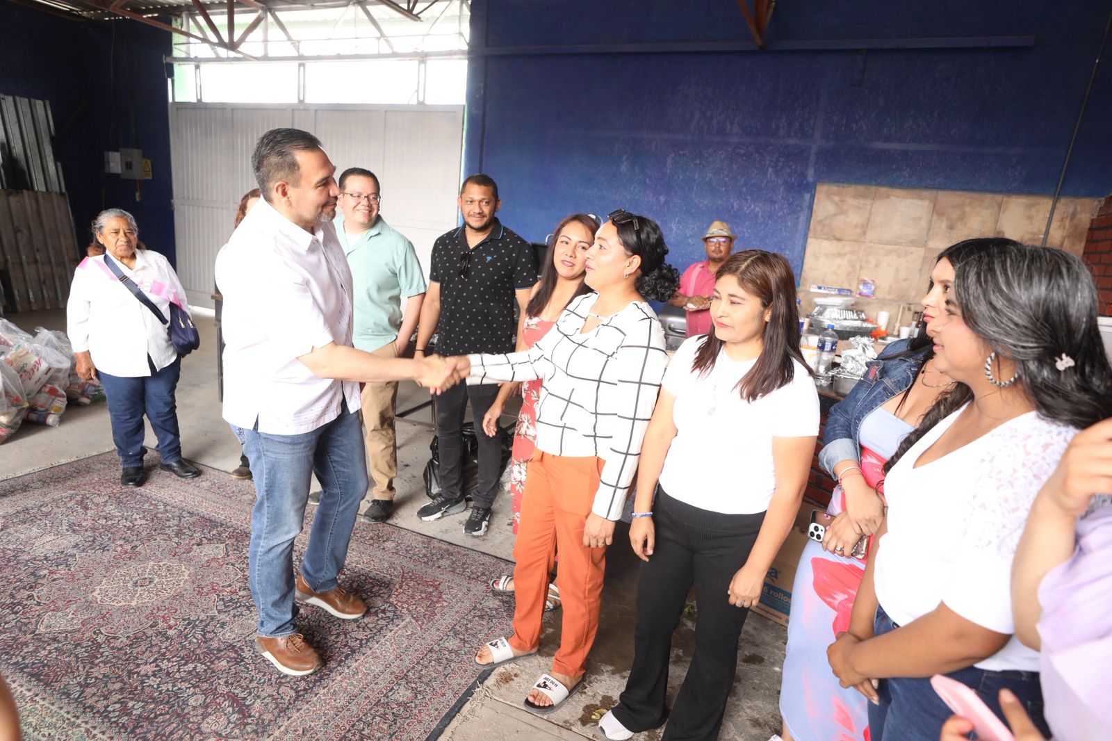 "Gracias por recibirnos, por la invitación, me da mucho gusto saludarlas y desearles que esté 10 de mayo se la pasen muy bien", expresó.