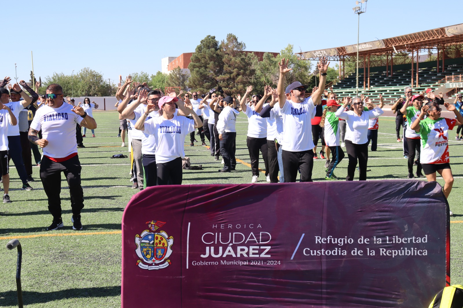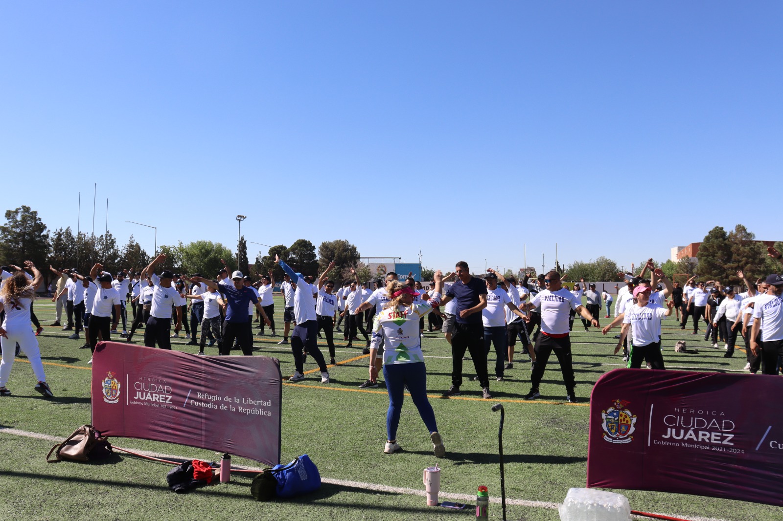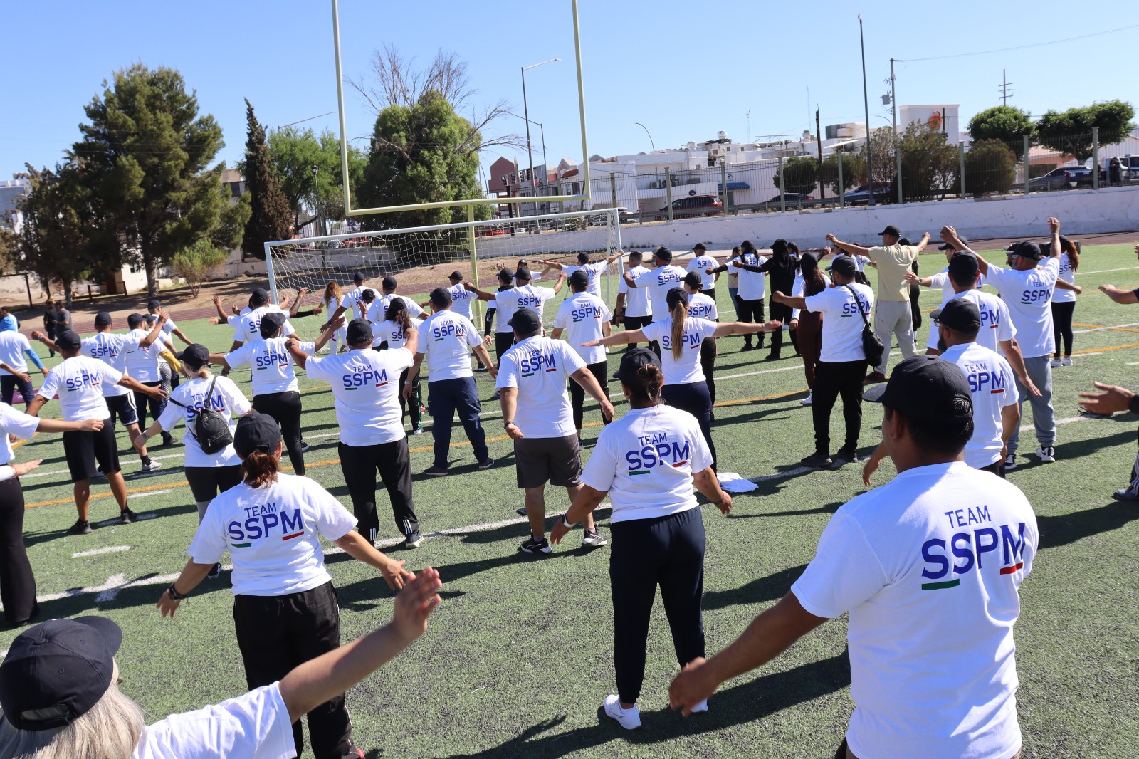 Personal administrativo y agentes de la Secretaría de Seguridad Pública Municipal, de la Coordinación General de Seguridad Vial, y las direcciones de Protección civil y Ecología, cumplieron el reto de acudir a la “Activación por Juárez que promueve el Instituto Municipal del Deporte y Cultura Física.