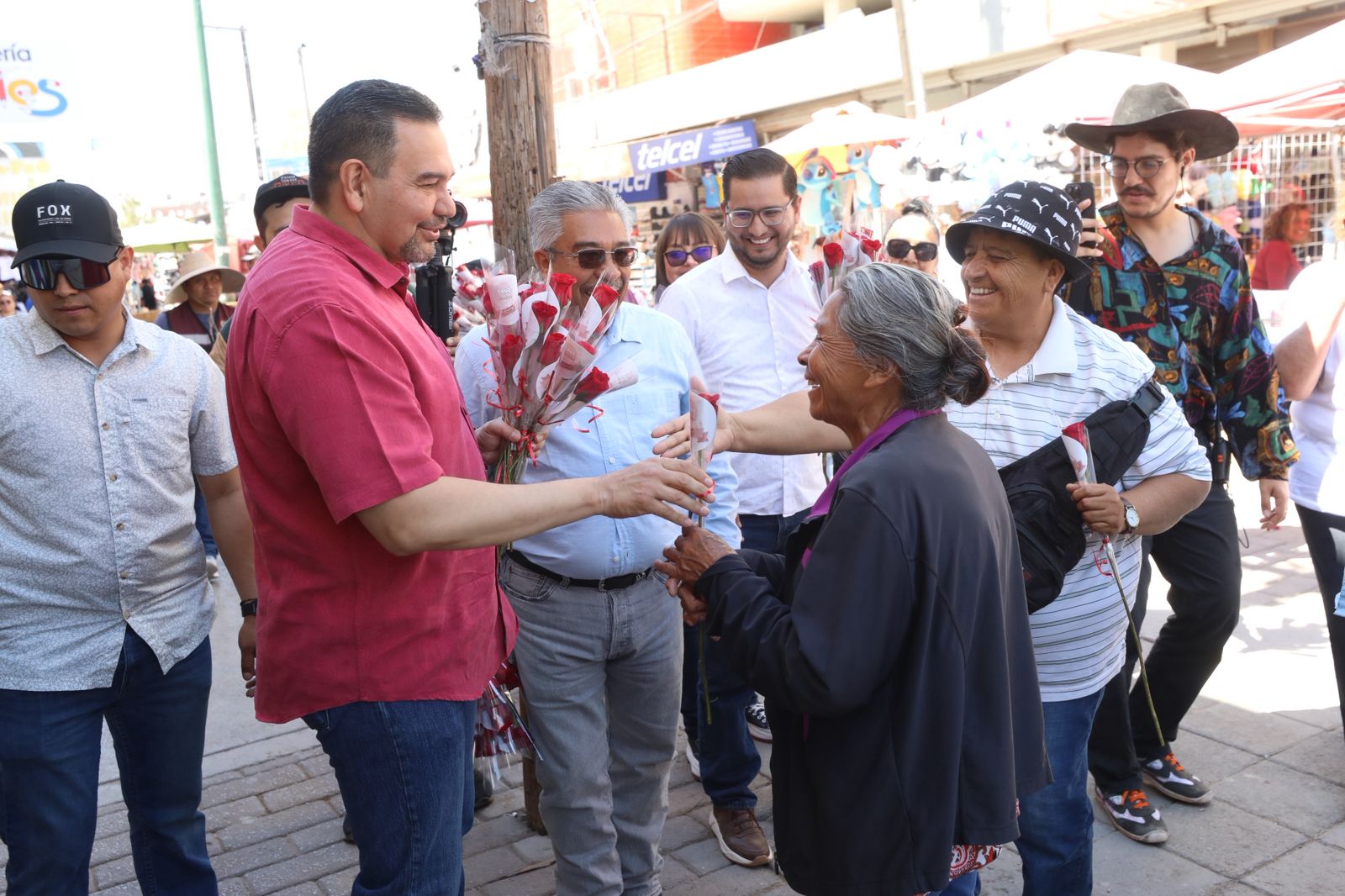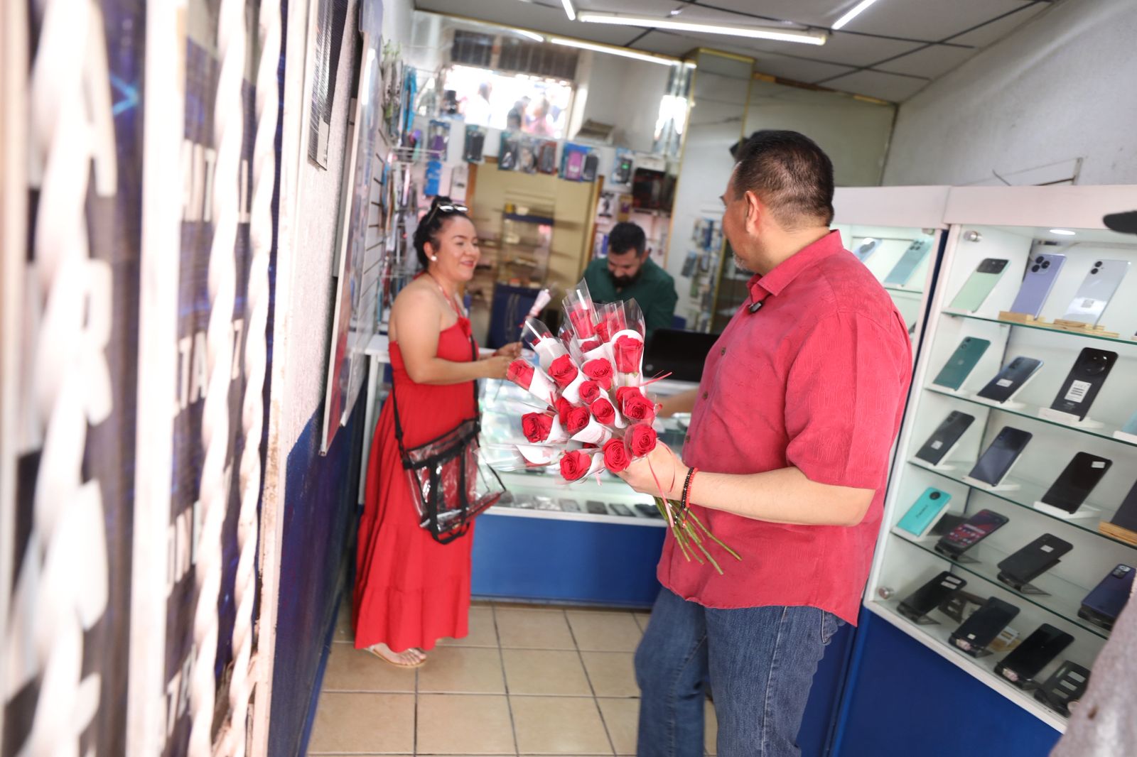 Este día, el Presidente Municipal, Cruz Pérez Cuéllar, regaló rosas a mamás en la Zona Centro con motivo del Día de las Madres.