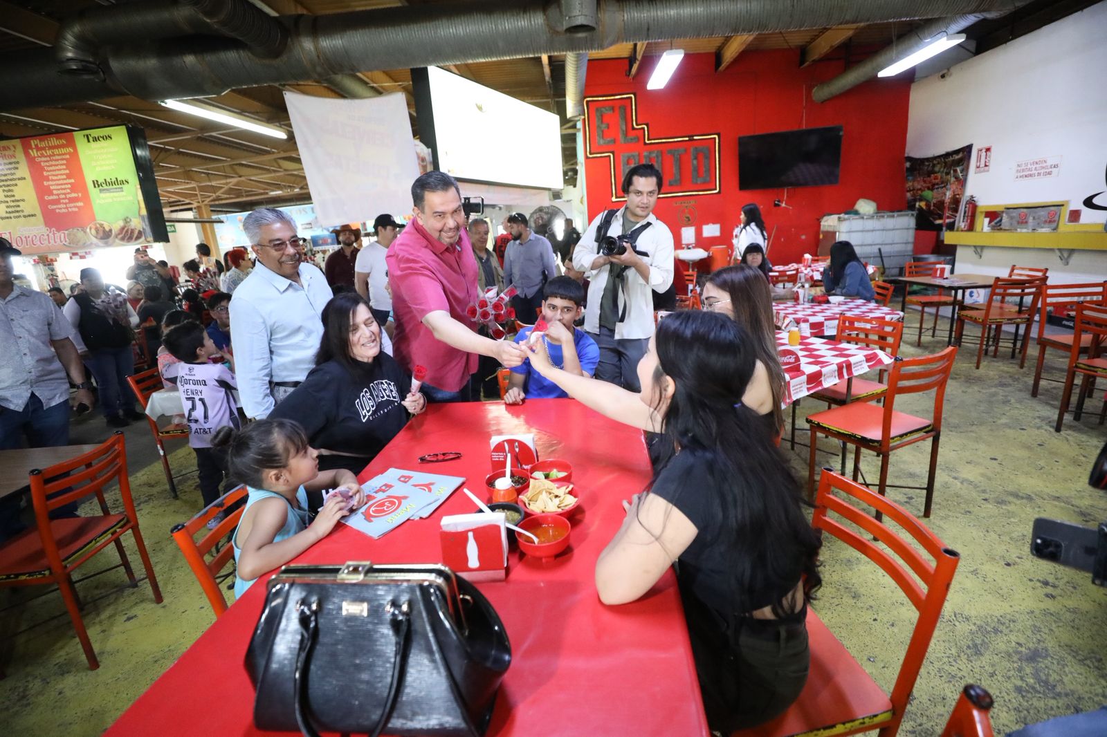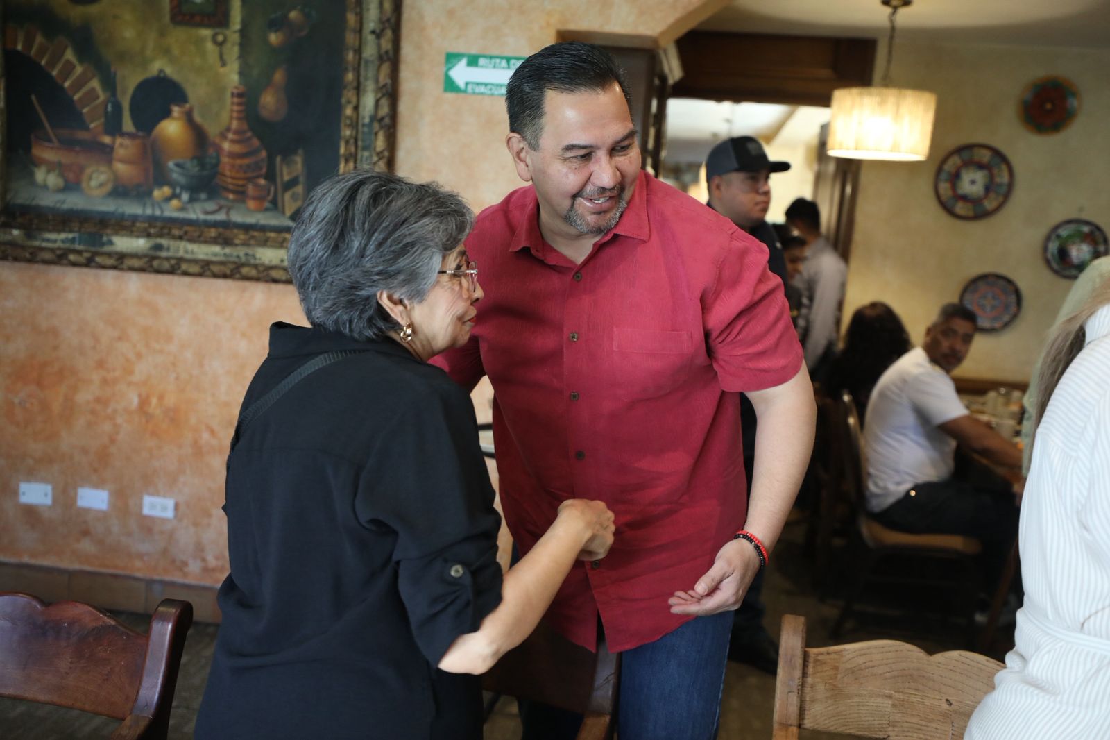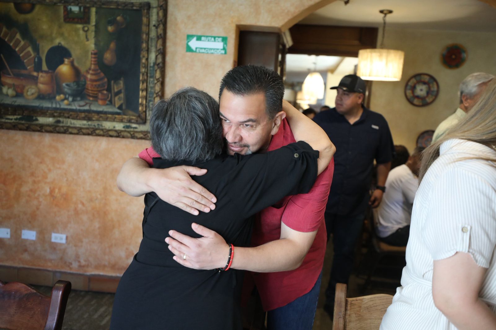 Antes de empezar su recorrido, el alcalde convivió en un desayuno con su mamá Yolanda Cuéllar, su esposa Rubí Enríquez y su hermana Yolanda, a quienes felicitó por esta fecha.