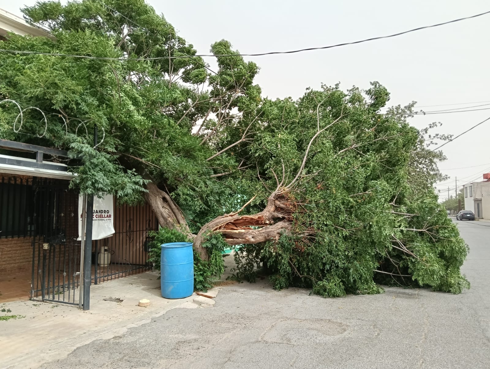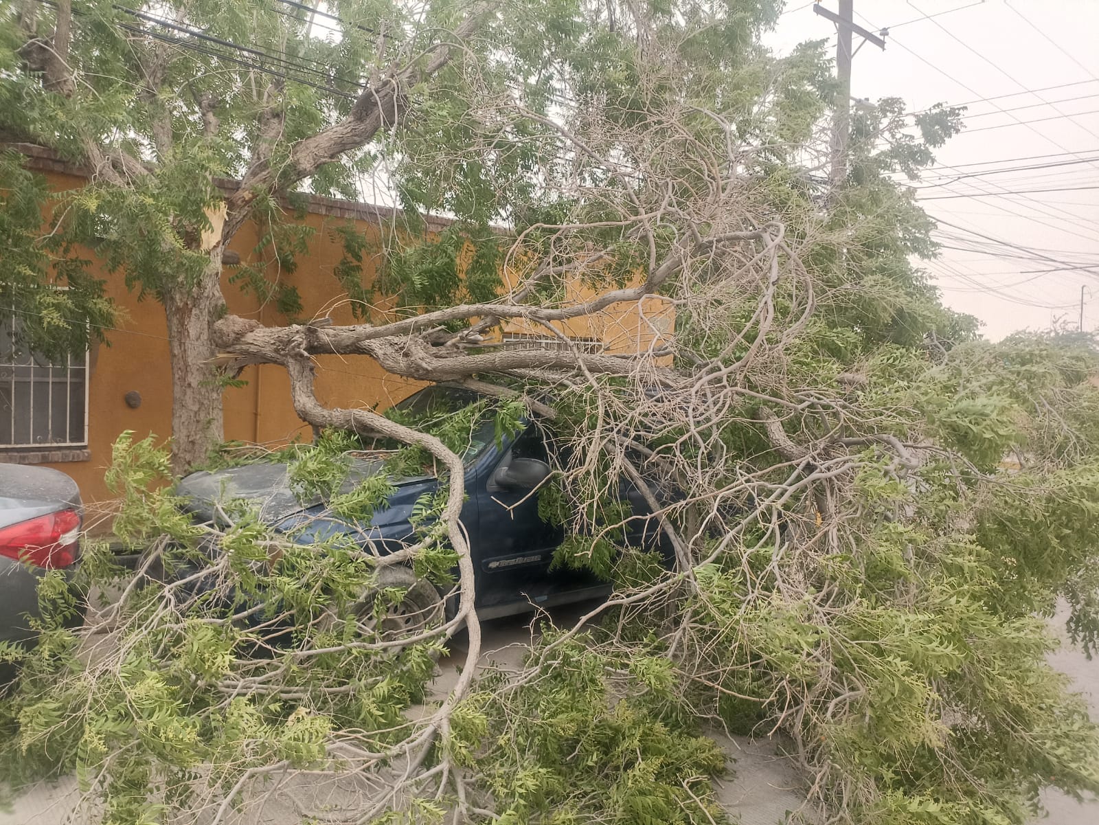 Entre los incidentes registrados se encuentran árboles a punto de caer, bardas colapsadas, postes inestables, una lona desprendida de un panorámico y árboles derribados, incluyendo uno que cayó sobre un vehículo.