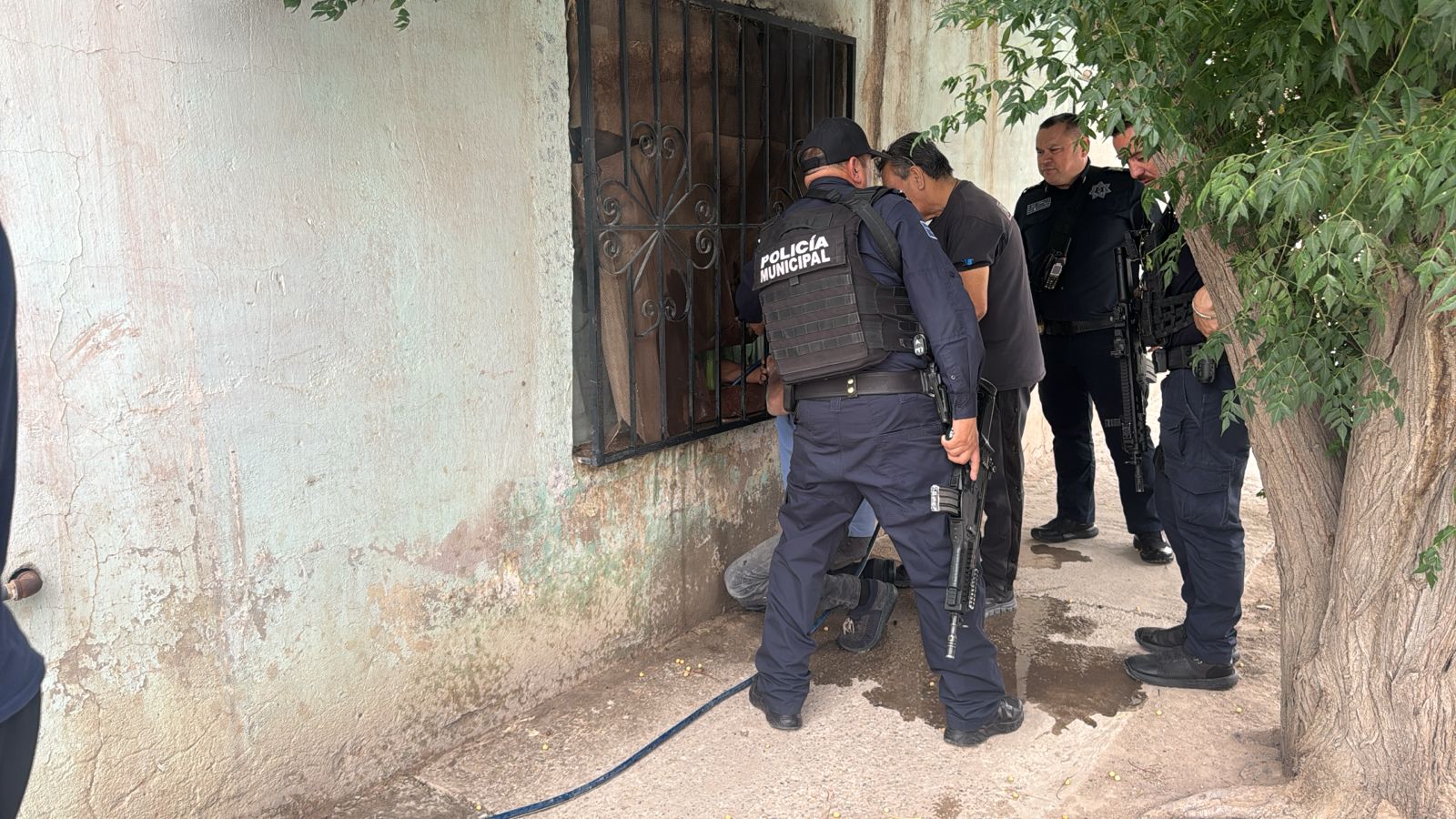 Elementos de la Secretaría de Seguridad Pública Municipal ayudaron a sofocar un incendio en una casa habitación en la colonia Lucio Cabañas.