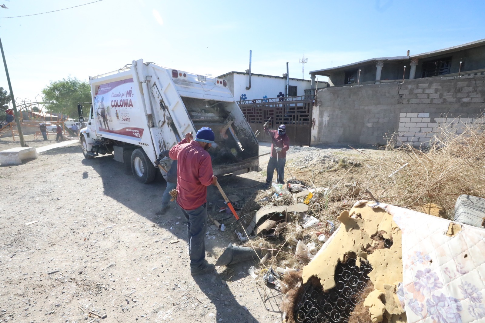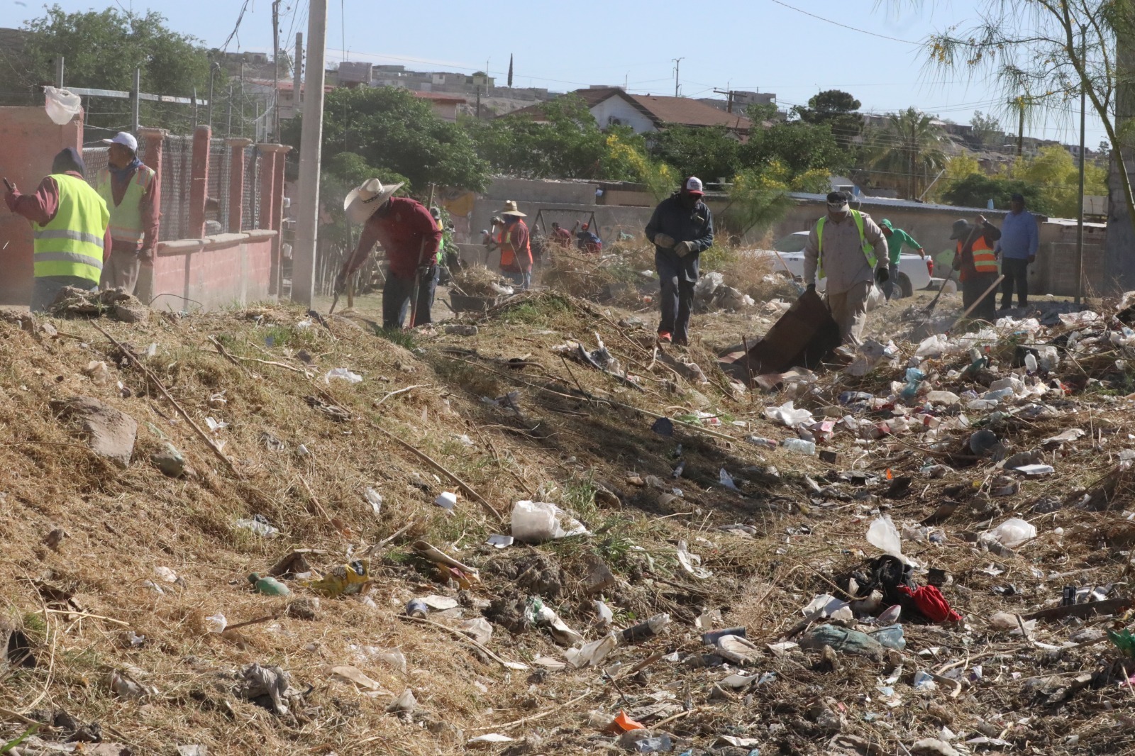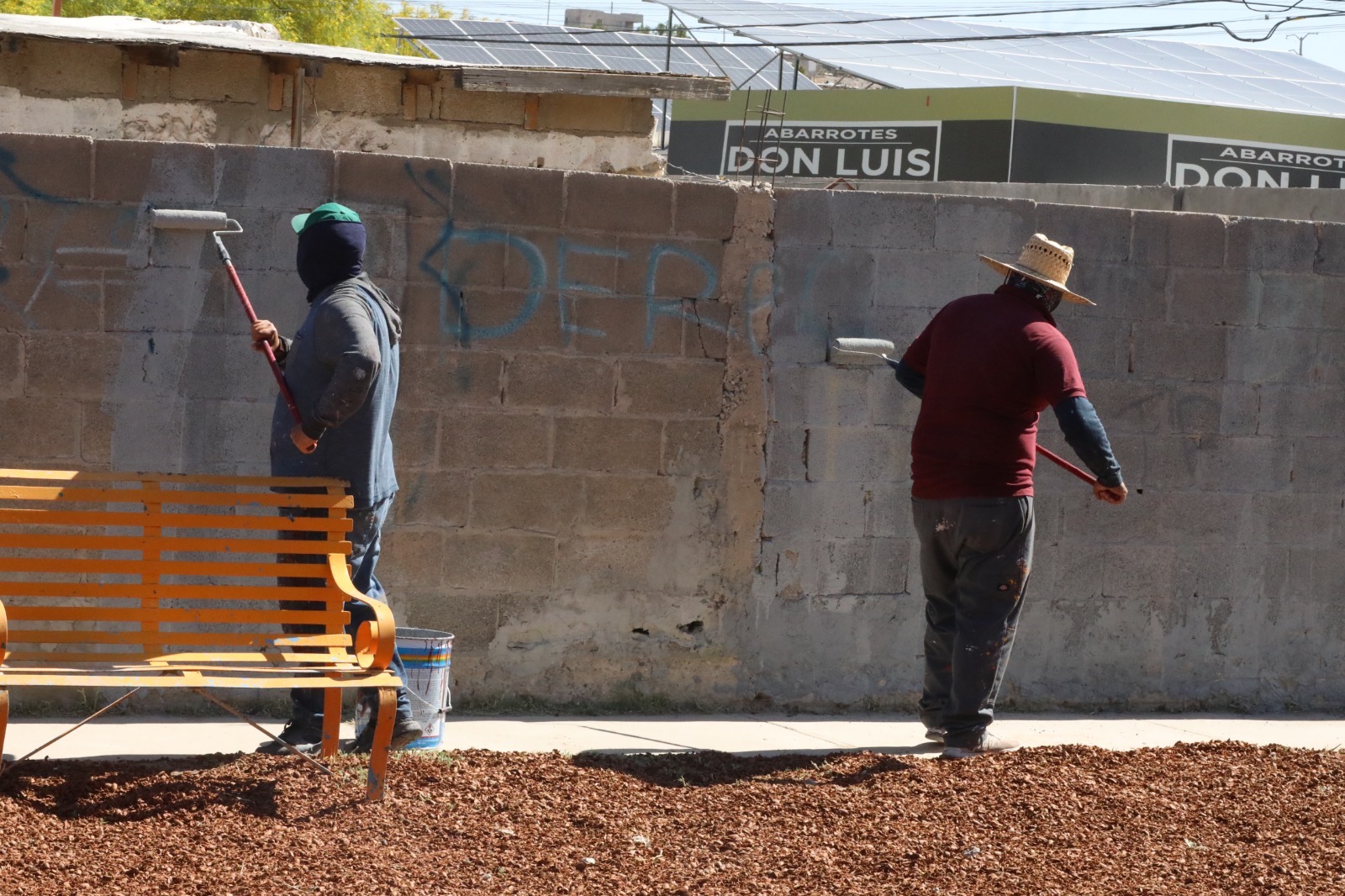 Más de 70 trabajadores entre las direcciones de área de Parques y Jardines y Limpia participaron en labores de limpieza y mantenimiento tanto en los dos parques de la zona como en vialidades aledañas, las cuales presentaban acumulación de basura y tiliches.