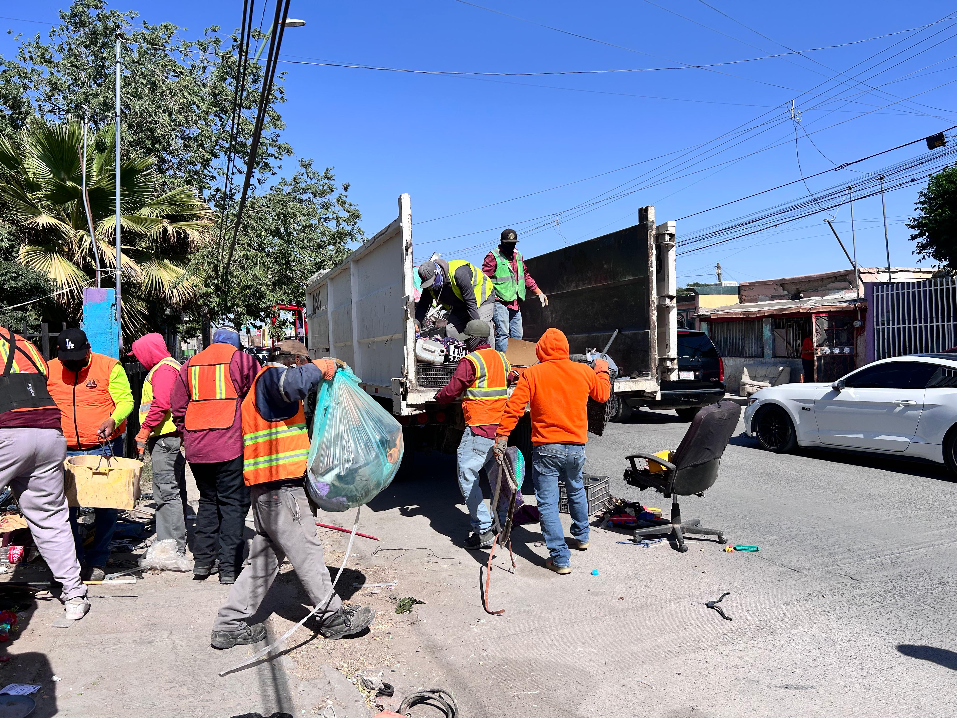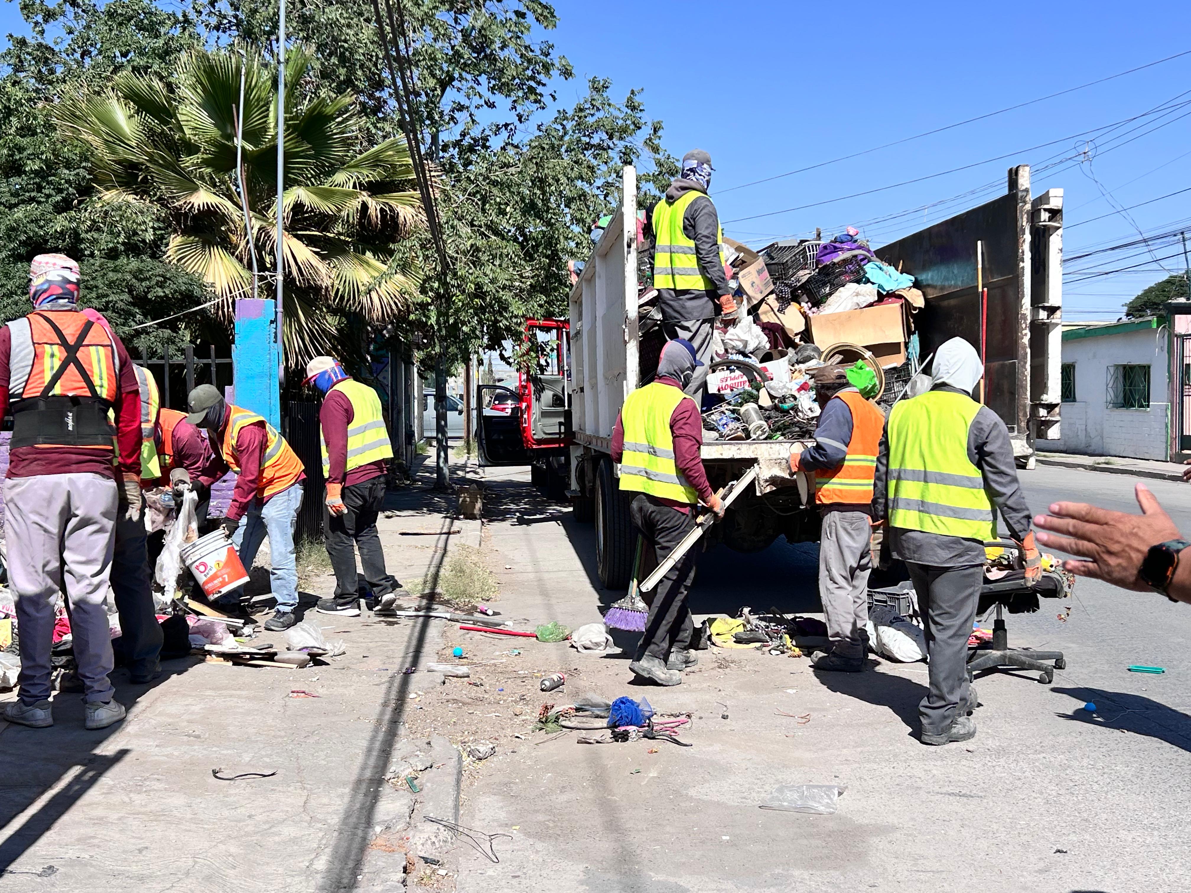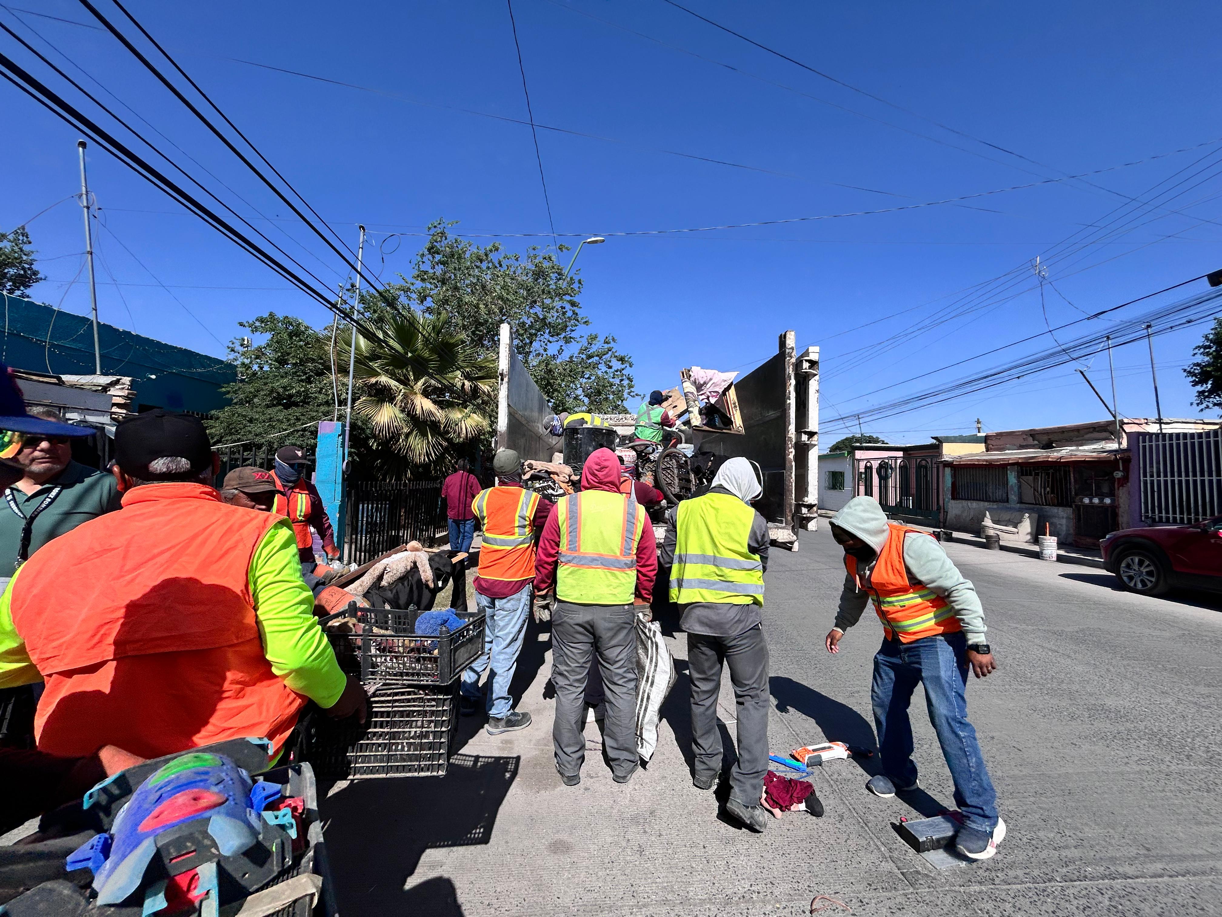Este lunes la Dirección de Limpia atendió por tercera ocasión una vivienda ubicada en la calle Rubén Posada Pompa 2245, en la colonia Melchor Ocampo, la cual ha sido reiteradamente señalada por vecinos como un foco de acumulación de basura, tiliches y diversos desechos.