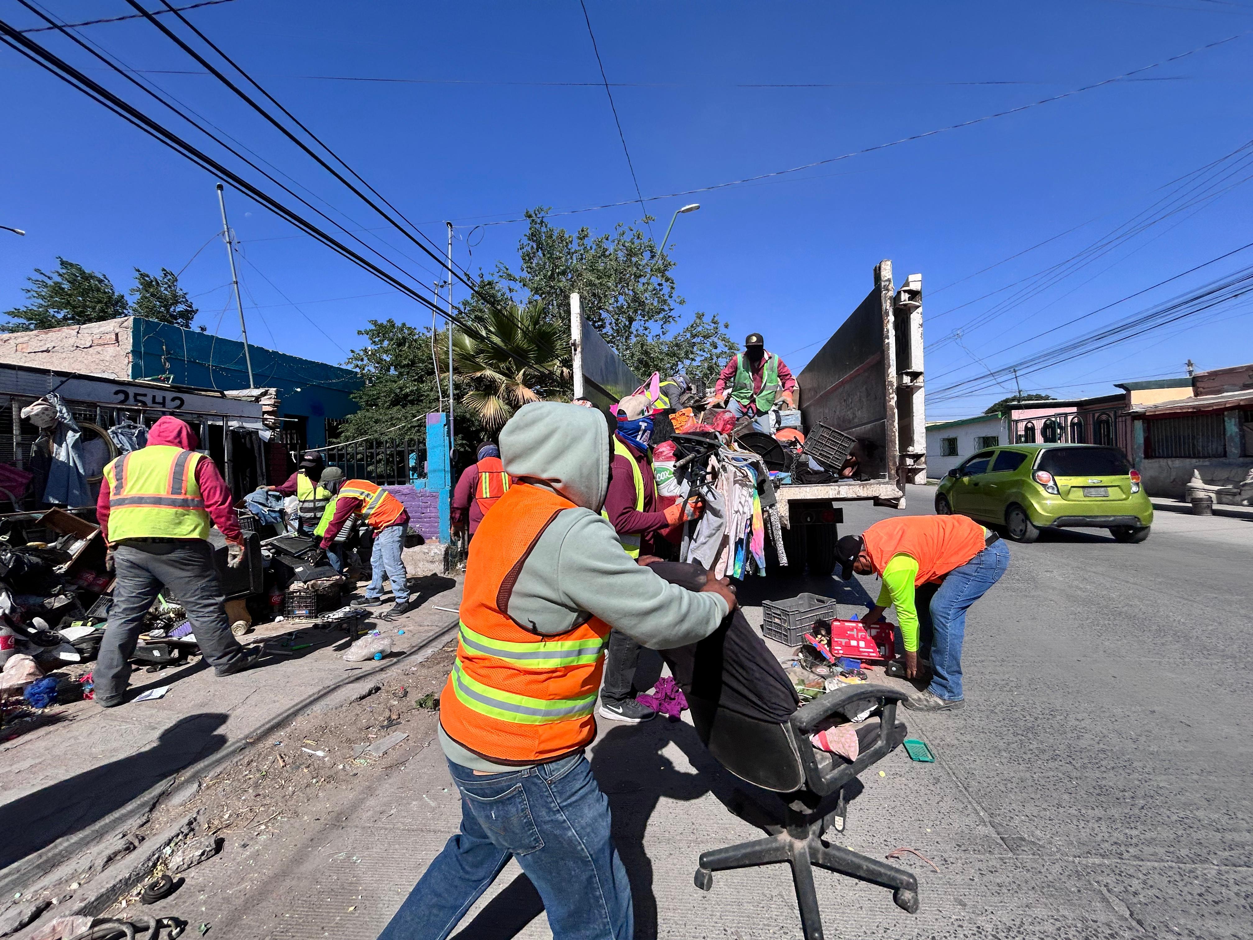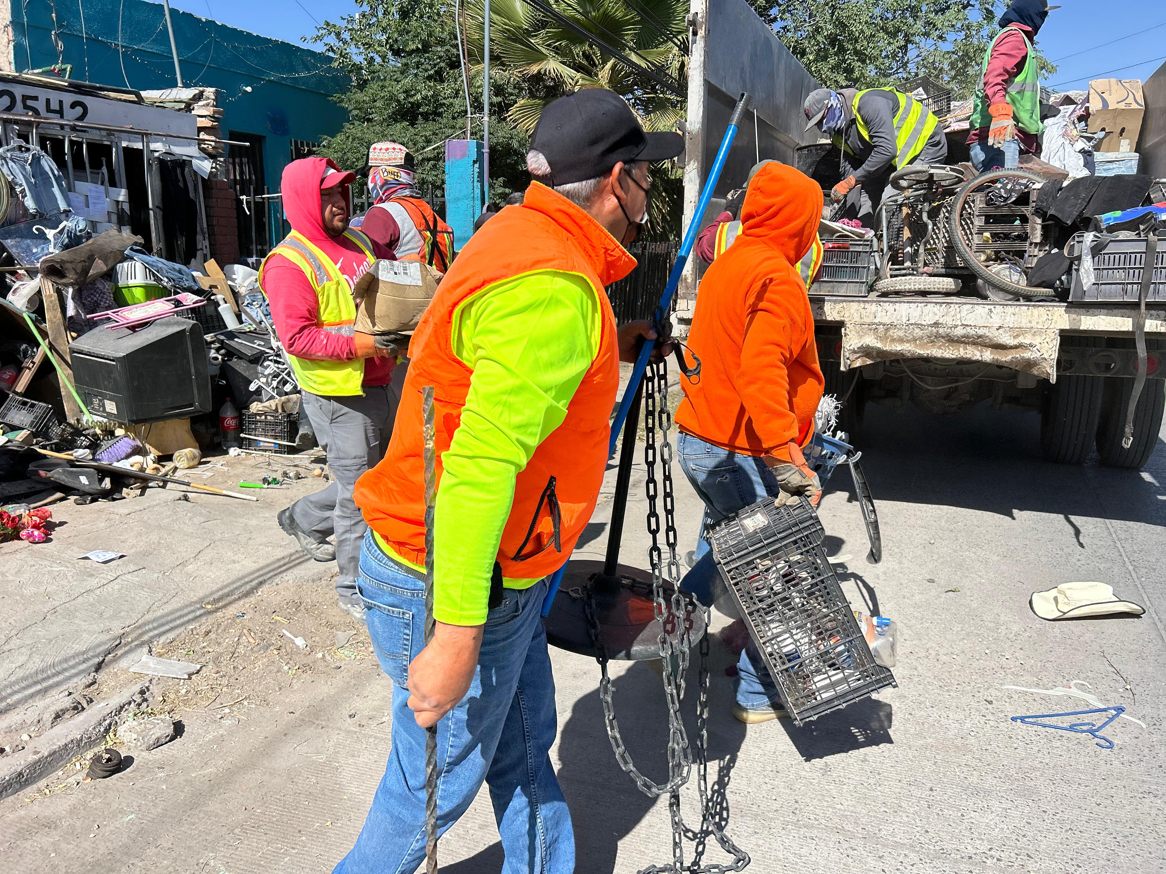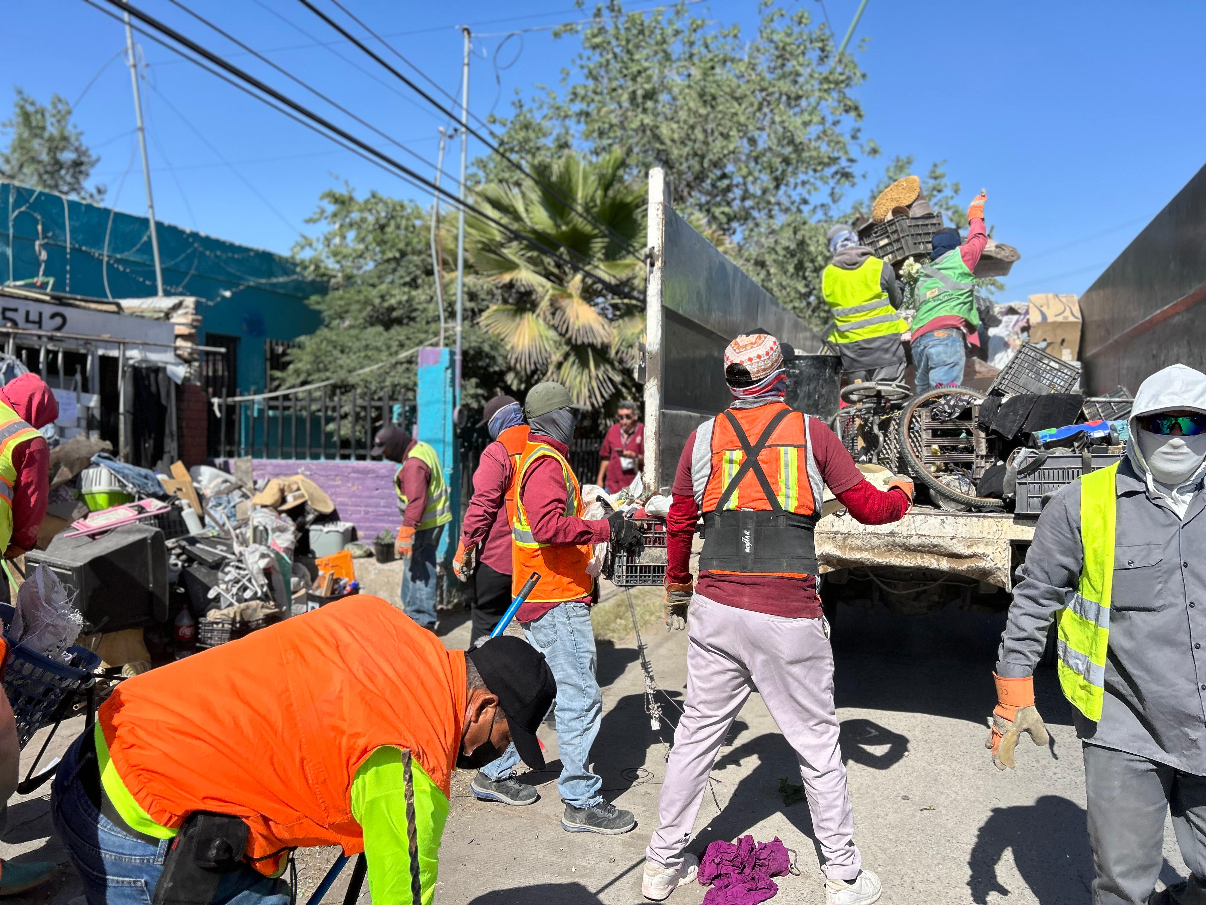 Este lunes la Dirección de Limpia atendió por tercera ocasión una vivienda ubicada en la calle Rubén Posada Pompa 2245, en la colonia Melchor Ocampo, la cual ha sido reiteradamente señalada por vecinos como un foco de acumulación de basura, tiliches y diversos desechos.