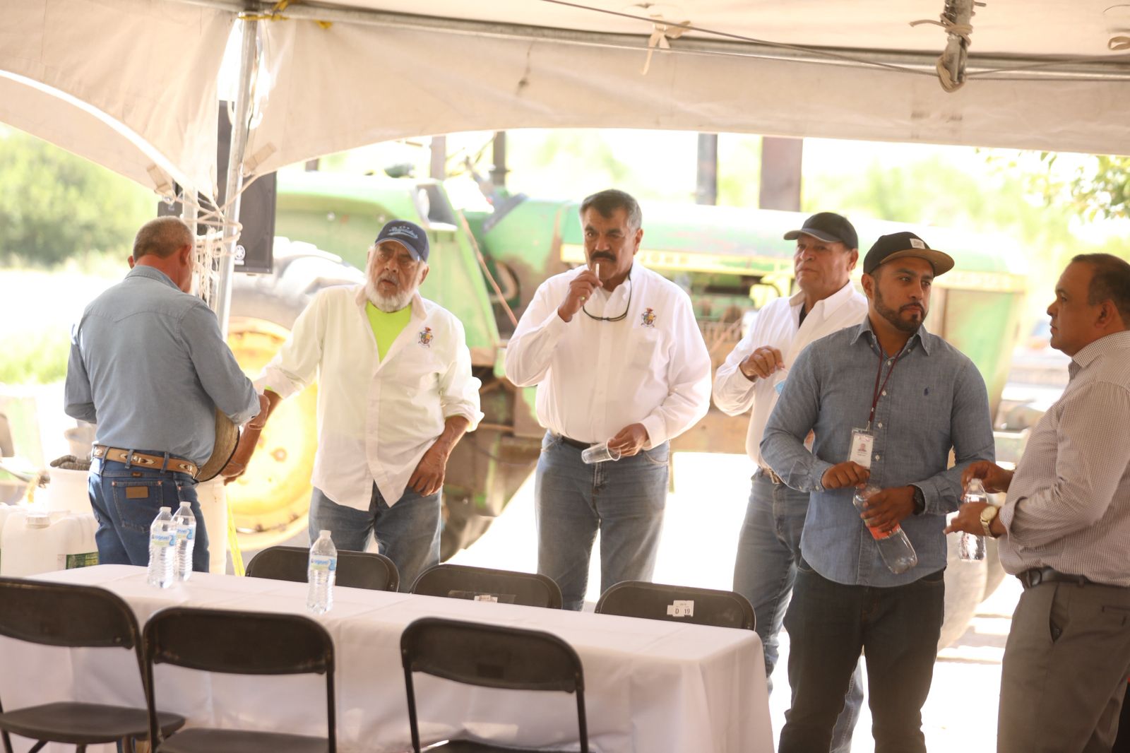 En un evento realizado en el ejido San Isidro, el Presidente Municipal, Cruz Pérez Cuéllar, presidió este día la entrega simbólica de solución nutritiva a productores del Valle de Juárez.