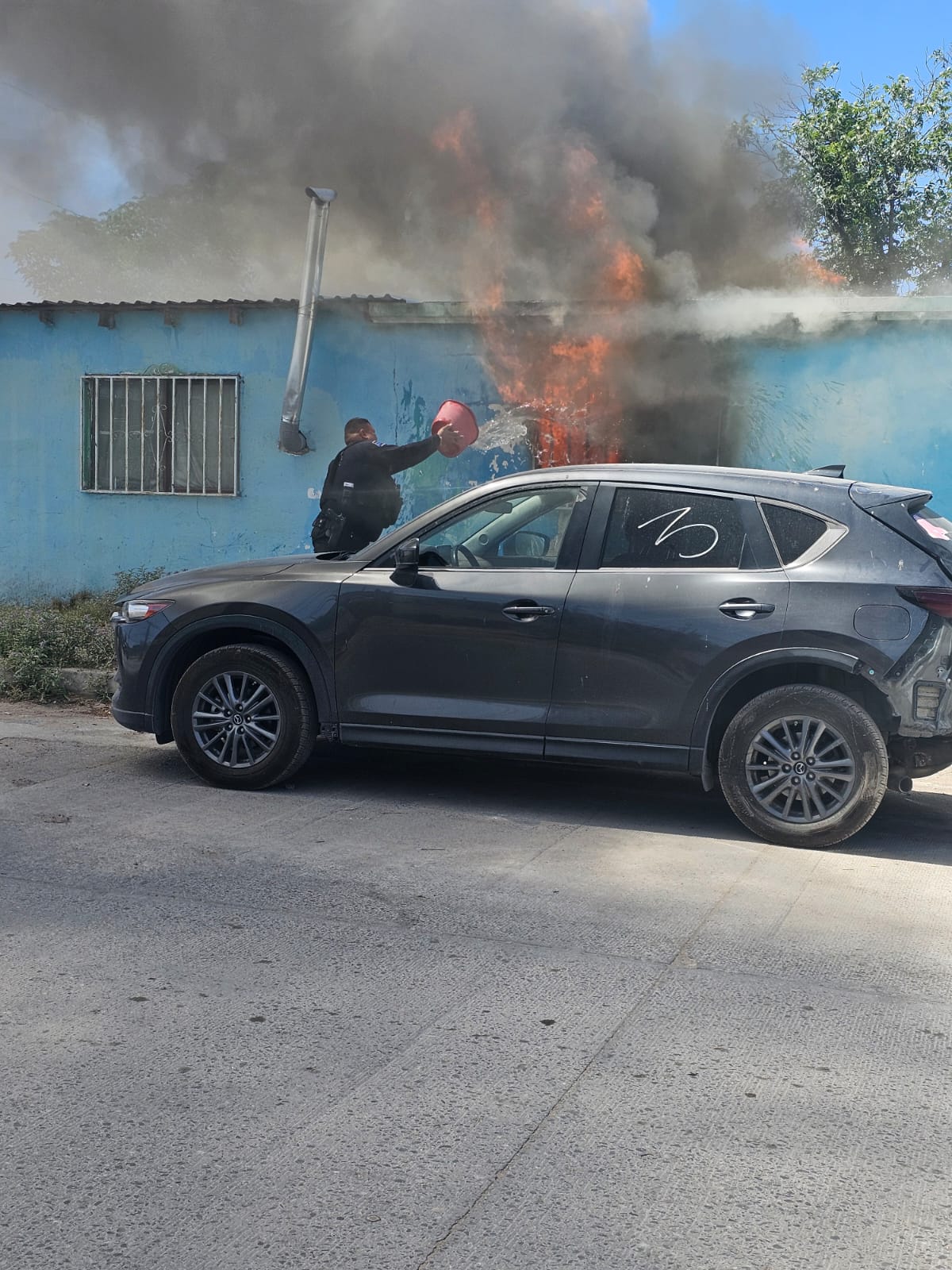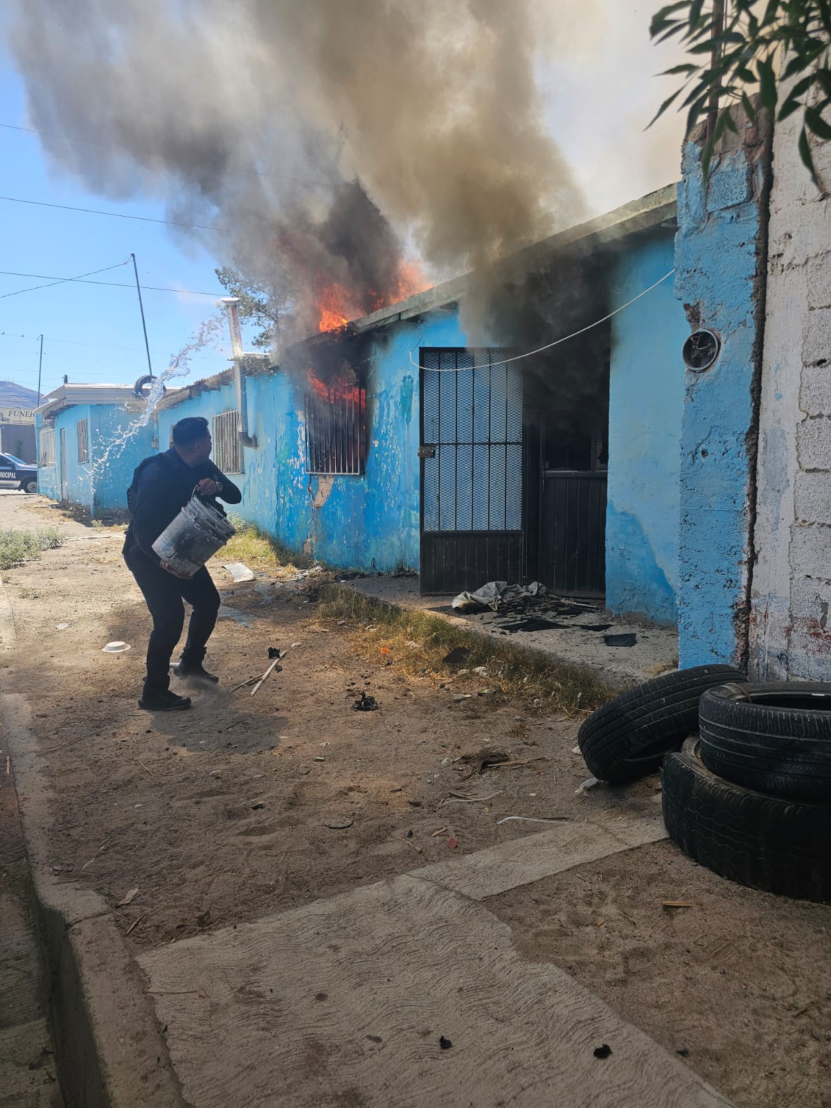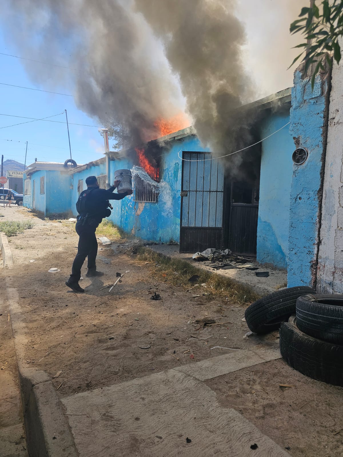 Ayudan policías municipales a sofocar incendio en la colonia Independencia II