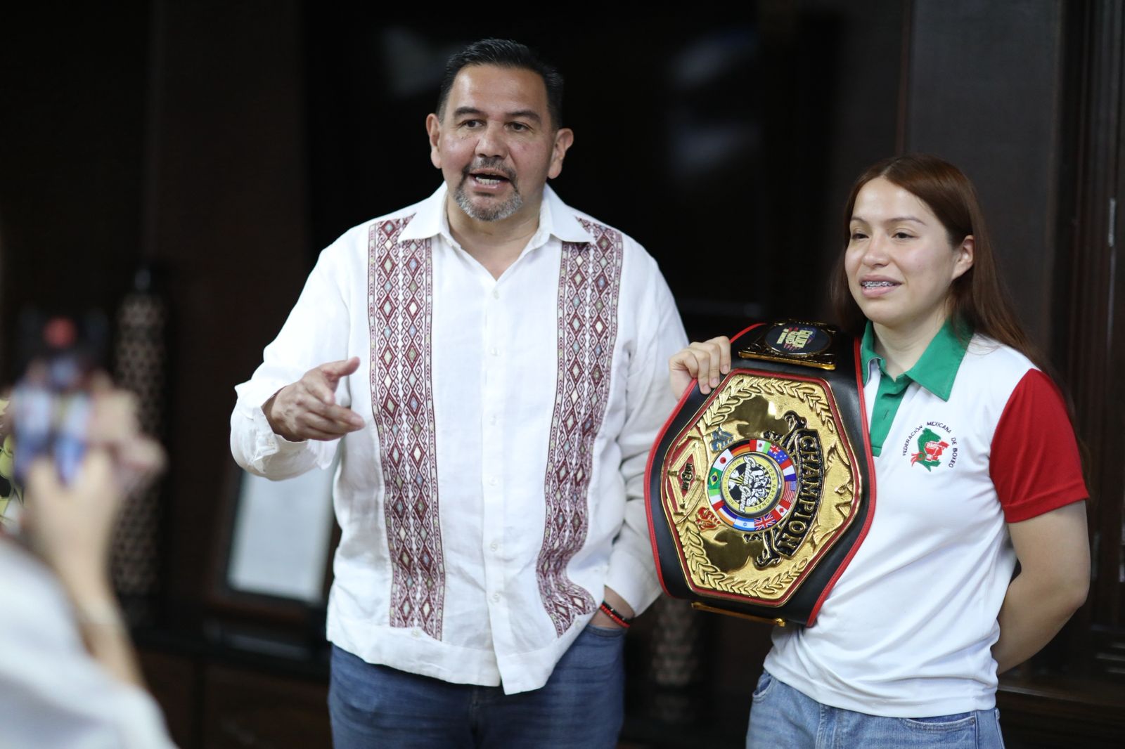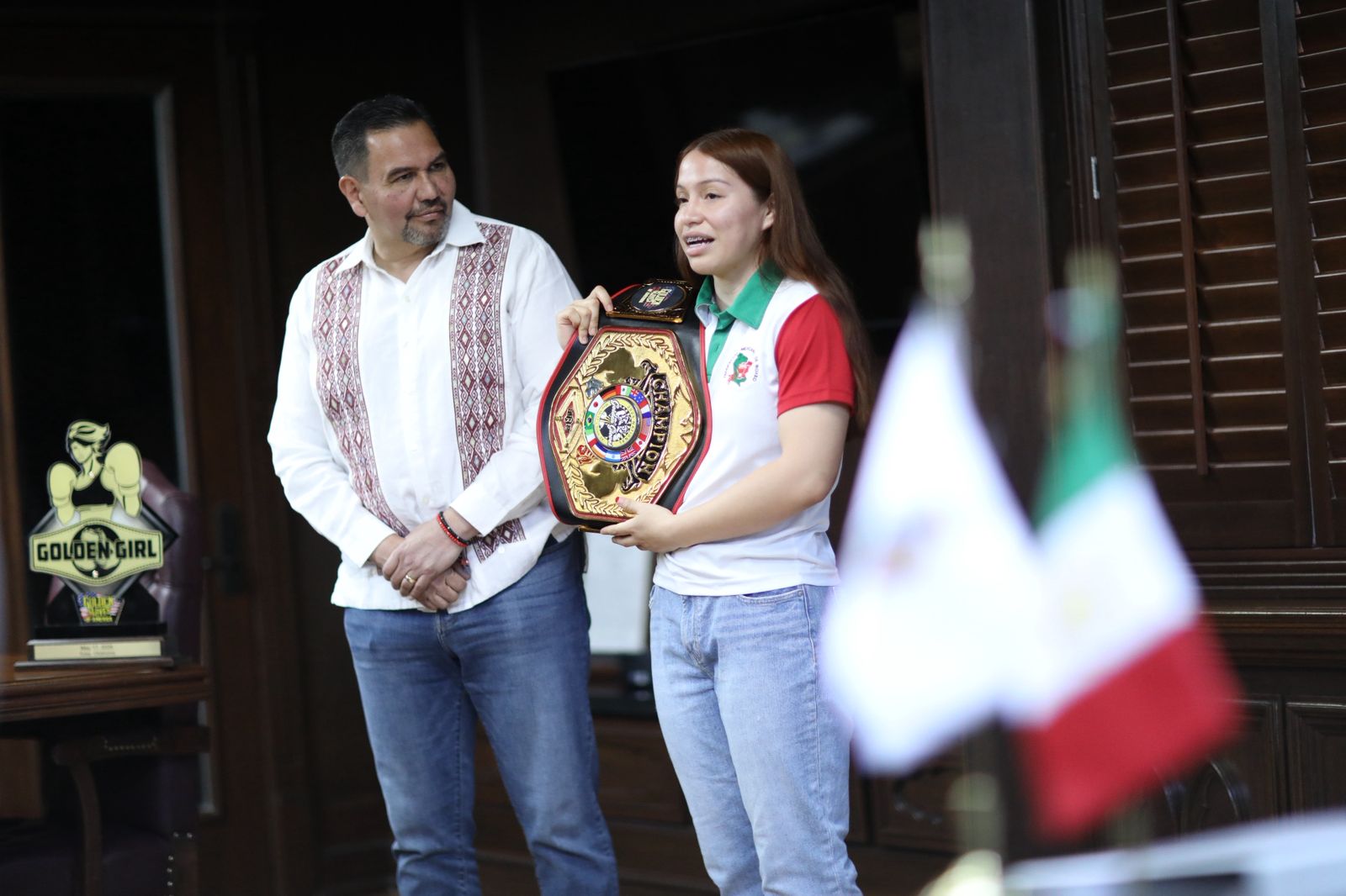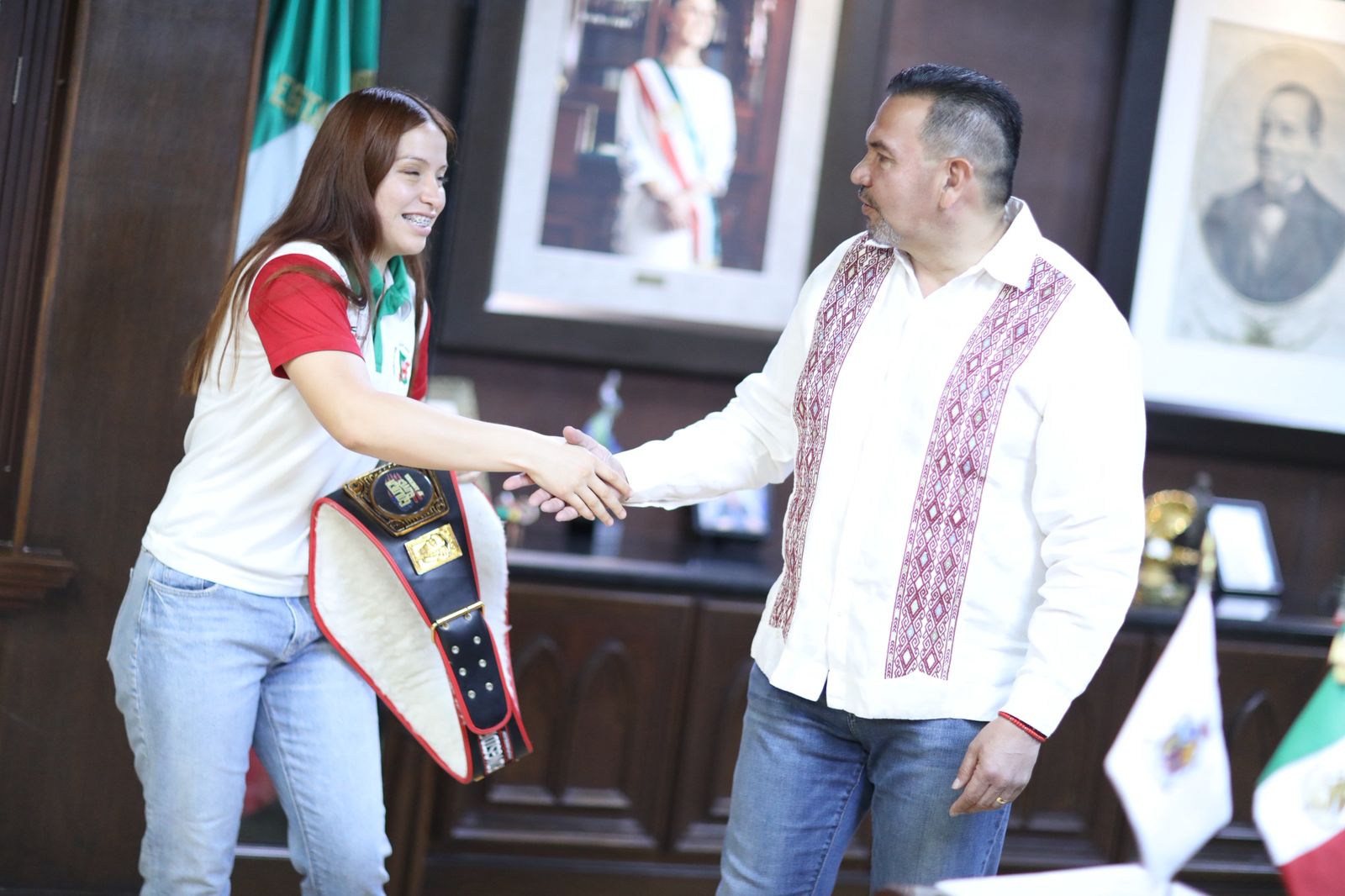 La boxeadora juarense Suzeth Ramírez Hernández visitó este día al Presidente Municipal, Cruz Pérez Cuéllar para agradecerle el respaldo brindado a lo largo de su carrera y compartirle personalmente el campeonato que recientemente obtuvo en una competencia internacional.