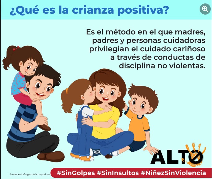 Dijo que la crianza positiva es el método en que madres, padres y personas cuidadoras privilegian el cuidado cariñoso a través de conductas de disciplina no violentas, pues son prácticas de cuidado, protección, formación y guía que posibilitan el desarrollo, bienestar y crecimiento saludable y armonioso, tanto físico como mental en los menores.