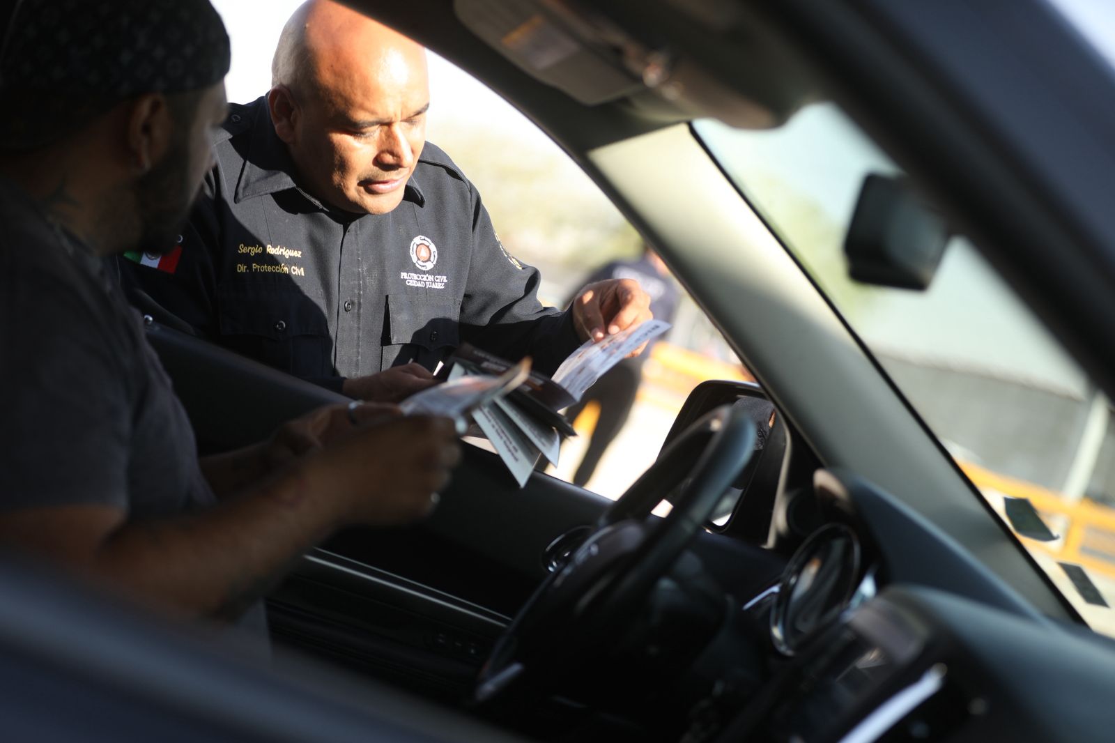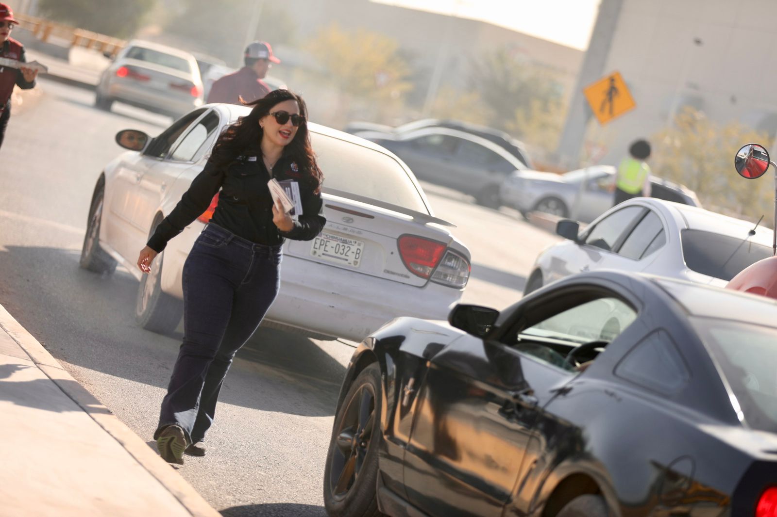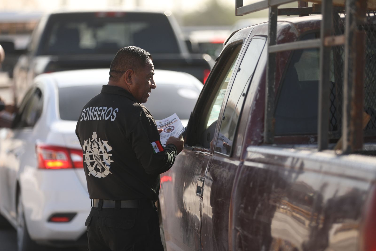 Varios funcionarios y alrededor de 150 empleados municipales se colocaron en la intersección de las vialidades para abarcar los cuatro cruces, a fin de que la información llegara a toda la gente que se traslada por esa área al sur de la ciudad.
