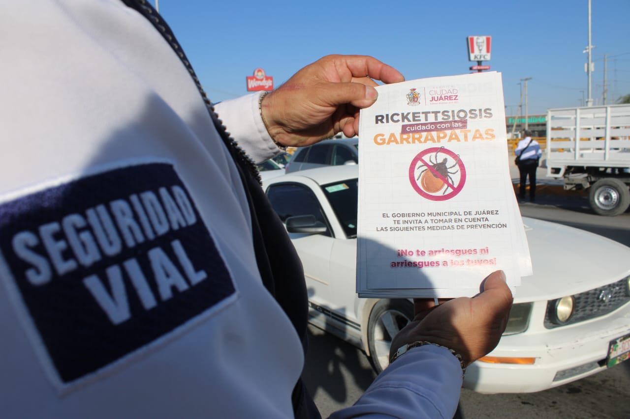Con el fin de mantener informada a la ciudadanía sobre los riesgos y la manera de prevenir la rickettsia, agentes de la Coordinación General de Seguridad Vial, adscritos al área de Educación Vial, participaron en la entrega de volantes, acciones encabezadas por la Dirección de Ecología y a las cuales también se sumaron otras instancias.