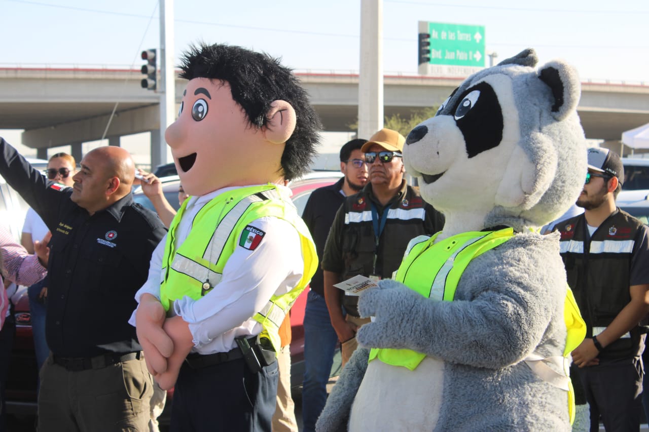 Las botargas de Seguridad Vial, “Policarpio” y “Mapache”, contribuyeron en estas labores, acercándose con los niños que iban acompañados de sus padres, para que de igual manera estén atentos a cualquier situación que pudiera presentarse en este tema.