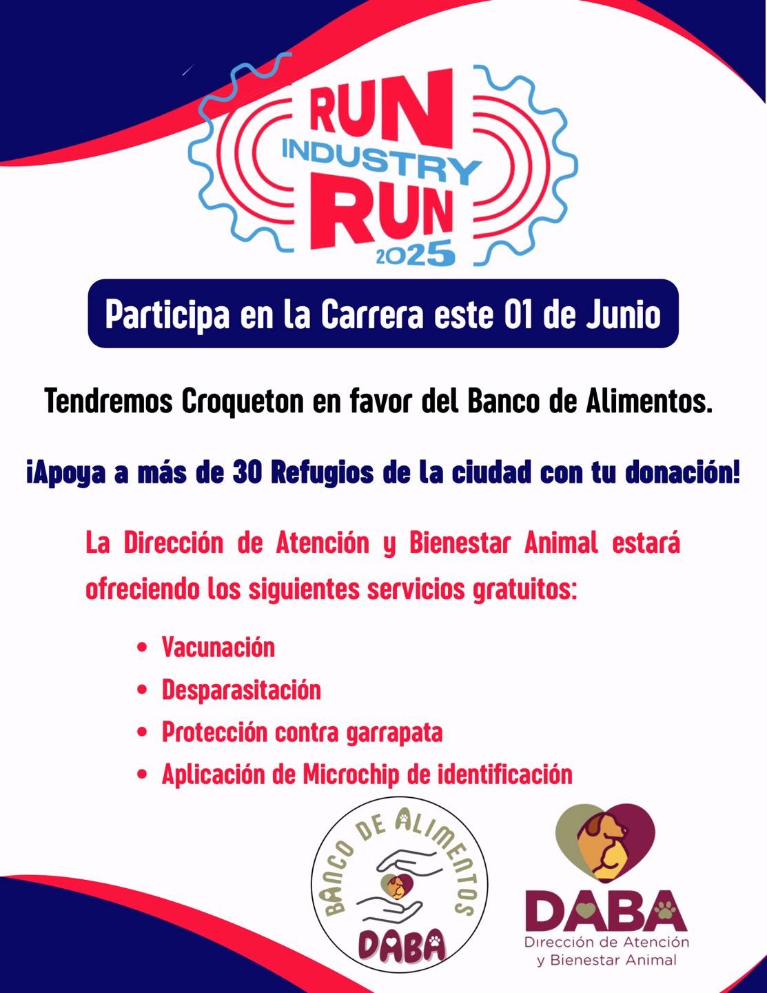 La Dirección de Atención y Bienestar Animal (DABA), invita a la ciudadanía a participar en la tercera edición de la carrera Run Industry Run, que se llevará a cabo el 1 de junio.