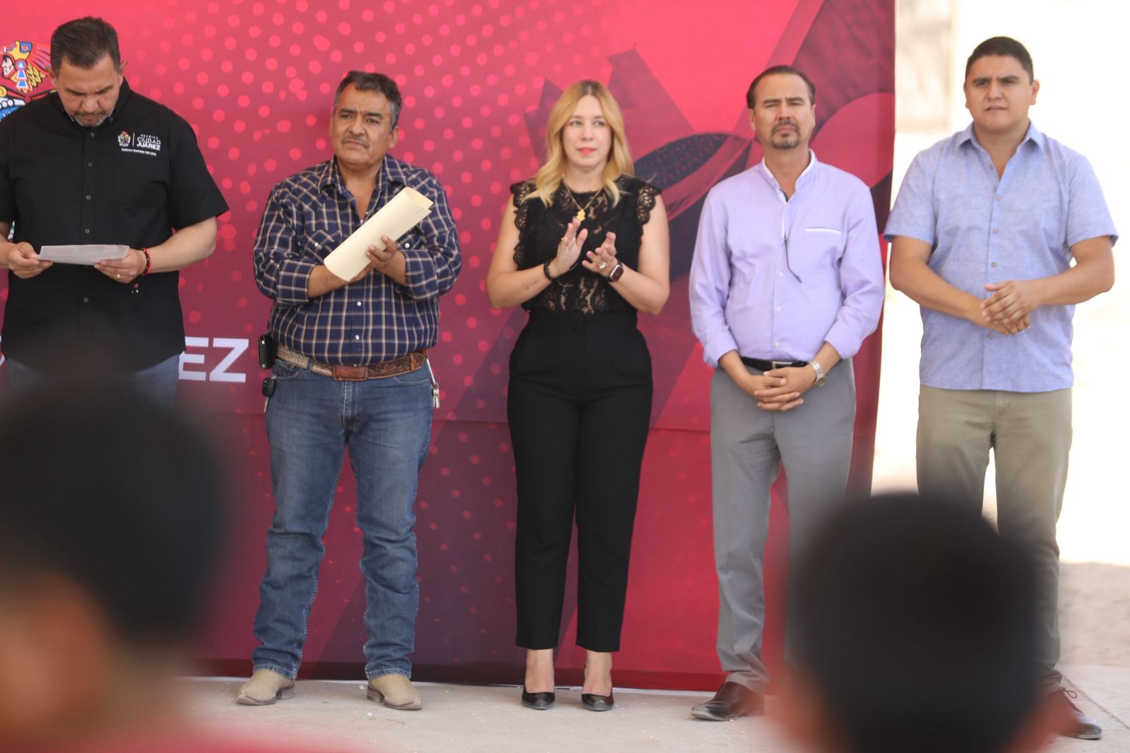 En la entrega estuvieron el titular de Obras Públicas, Daniel González García; el director de Educación del Municipio, Guillermo Alvídrez; la Sindica Municipal, Ana Carmen Estrada; el director de Servicios Públicos, Arturo Rivera Barreno; el coordinador de Infraestructura Educativa, Ismael Rueda y el regidor Jorge Marcial Bueno Quiroz; en representación de los padres de familia, Patricia García y el supervisor de la Zona 72, Miguel Ángel González Guerrero.