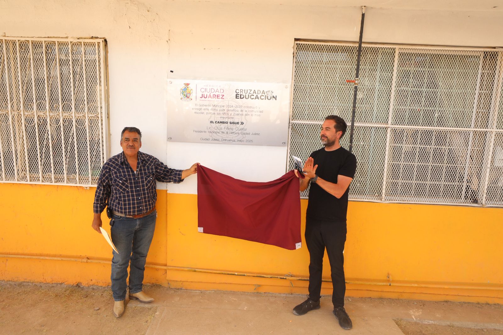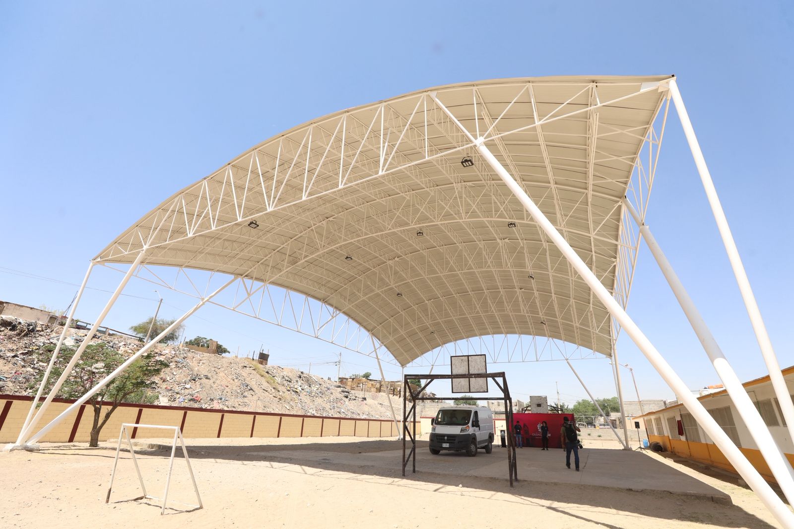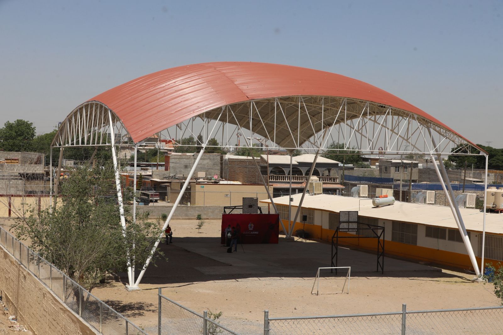 Este día el Presidente Municipal, Cruz Pérez Cuéllar, entregó una barda perimetral y domo que fueron construidos en la Escuela Primaria Juan Álvarez, ubicada en la colonia Salvárcar.
