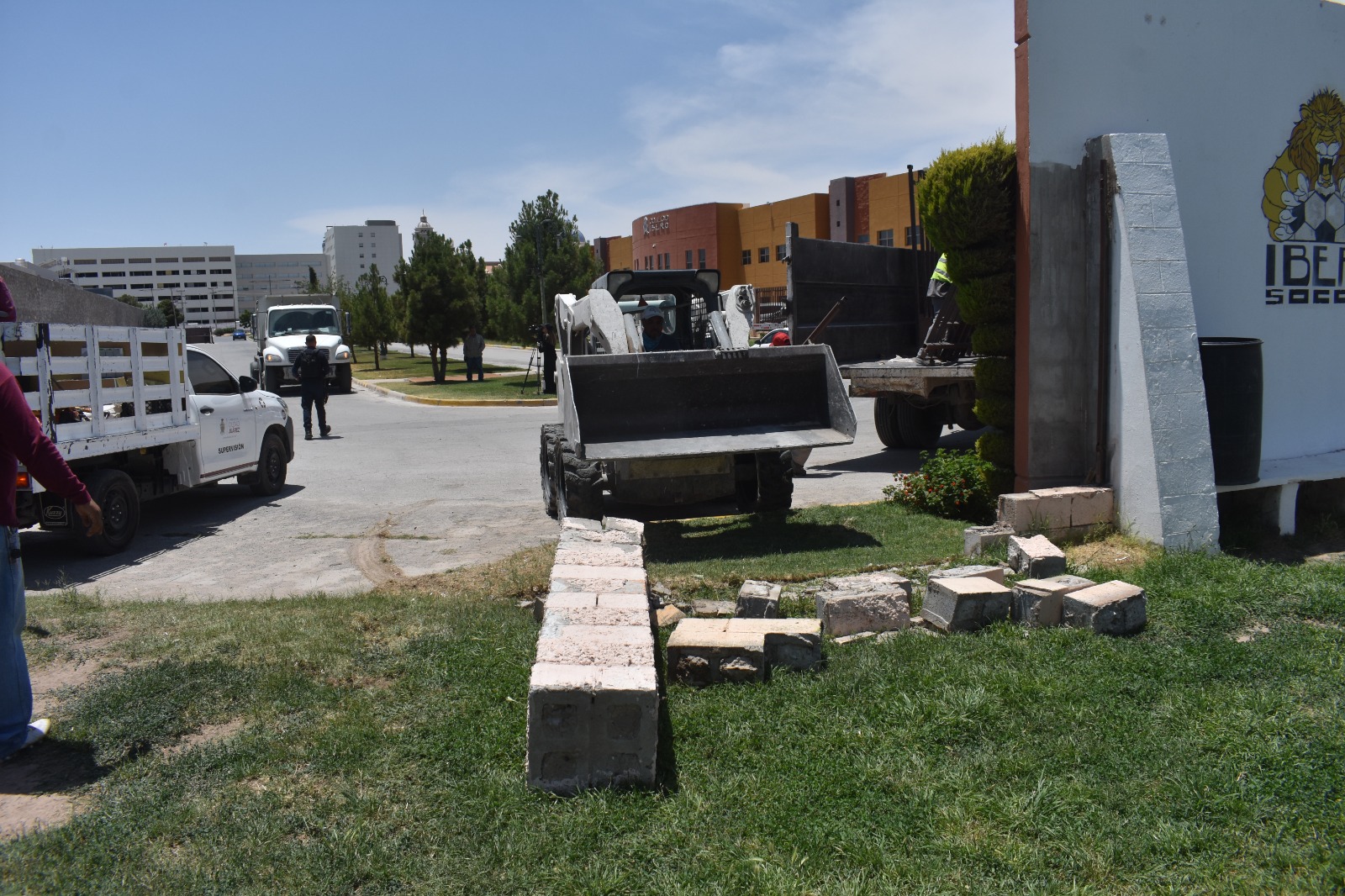Como parte del Operativo de Reordenamiento Urbano, el Gobierno Municipal, a través de distintas dependencias, llevó a cabo la demolición de columnas y rejas en un colegio de la ciudad, debido a que estaban obstruyendo la vía pública.