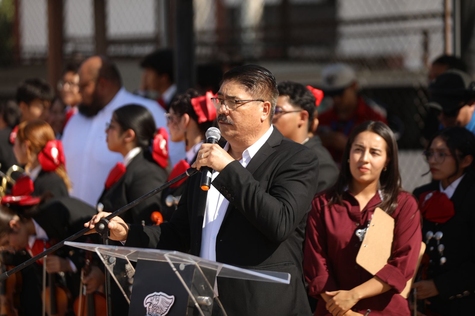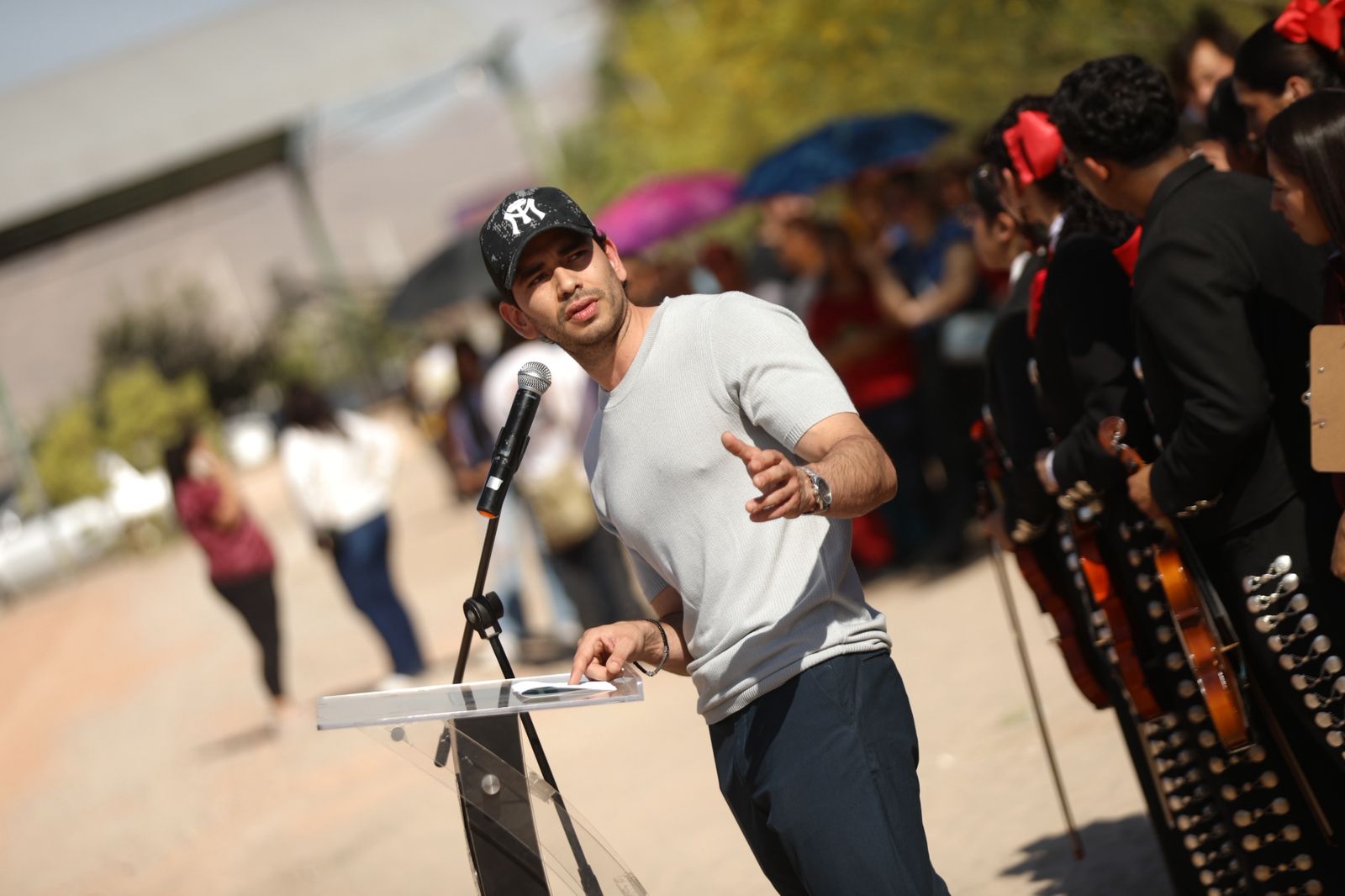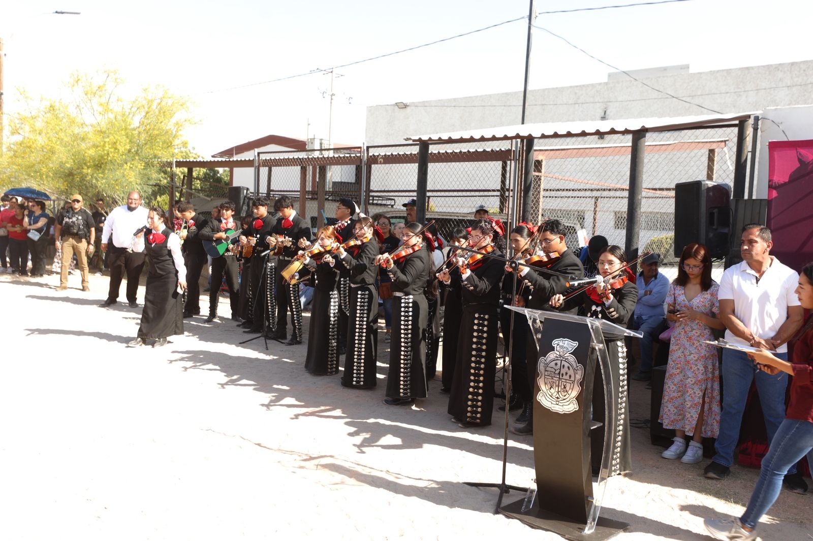El Mariachi Juvenil Juárez, del CBTIS 128, amenizó el evento donde estuvieron el director general de Obras Públicas del Municipio, Daniel González; el director general de Servicios Públicos Municipales, Arturo Rivera; el secretario de Seguridad Pública Municipal, César Omar Muñoz Morales y la síndica Municipal, Ana Carmen Estrada.