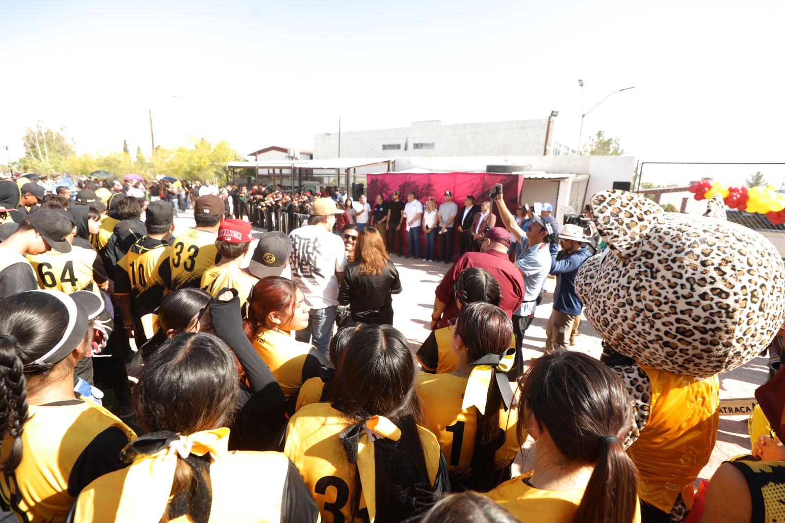 El Presidente Municipal, Cruz Pérez Cuéllar, entregó este día los trabajos de acondicionamiento del campo de beisbol del Centro de Bachillerato Tecnológico Industrial y de Servicios CBTIS 128, como parte del Presupuesto Participativo.