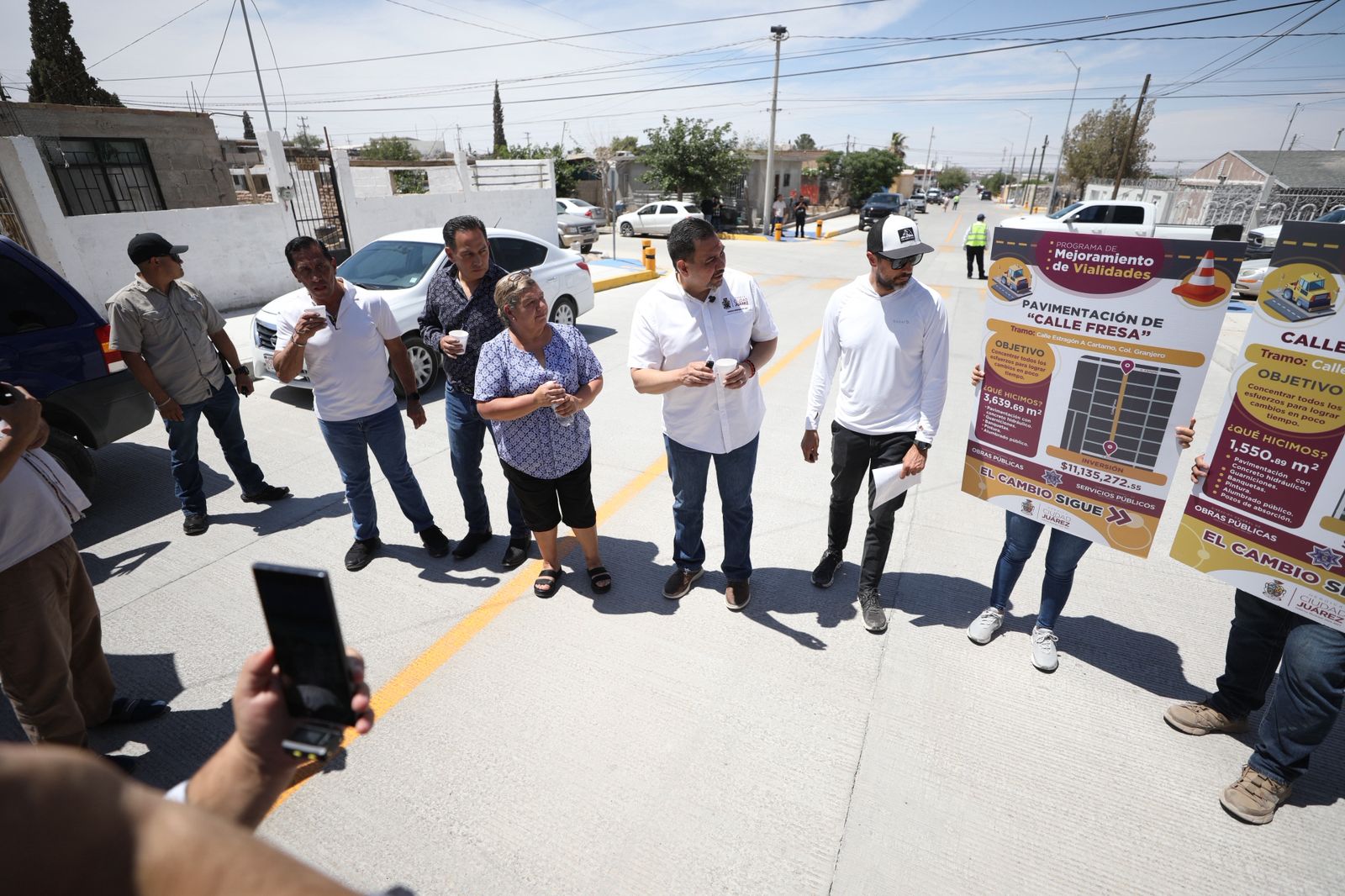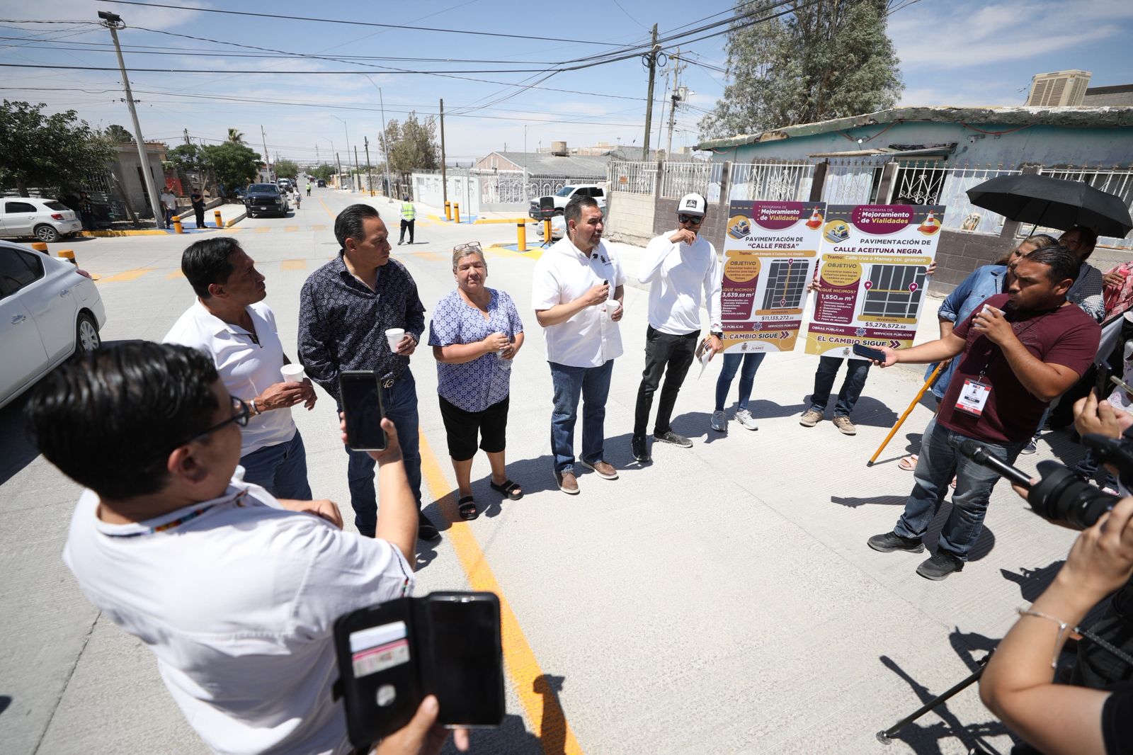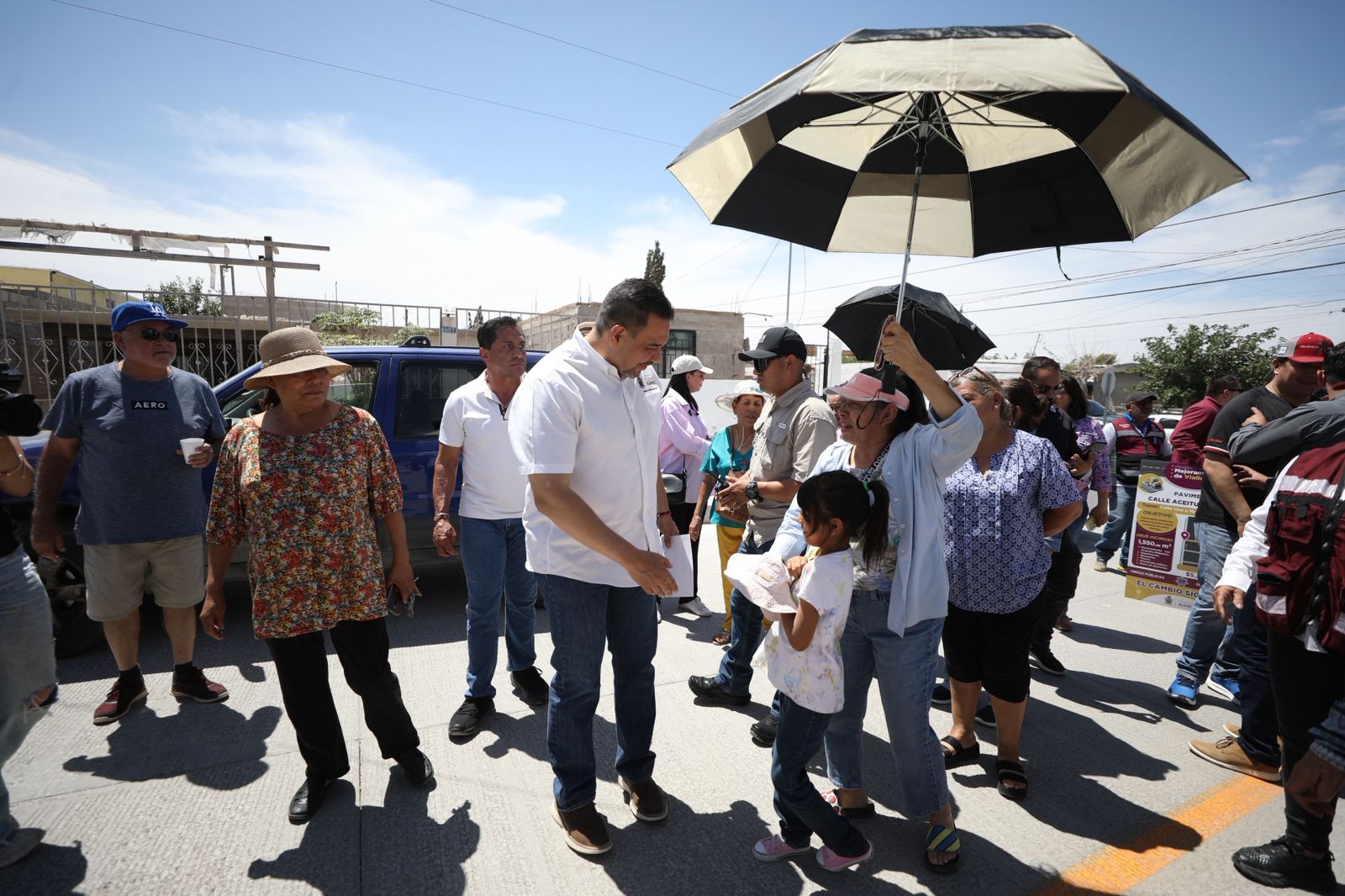 El Presidente Municipal, Cruz Pérez Cuéllar, hizo entrega de las obras de pavimentación de las calles Fresa y Aceituna Negra a los vecinos de la colonia El Granjero.