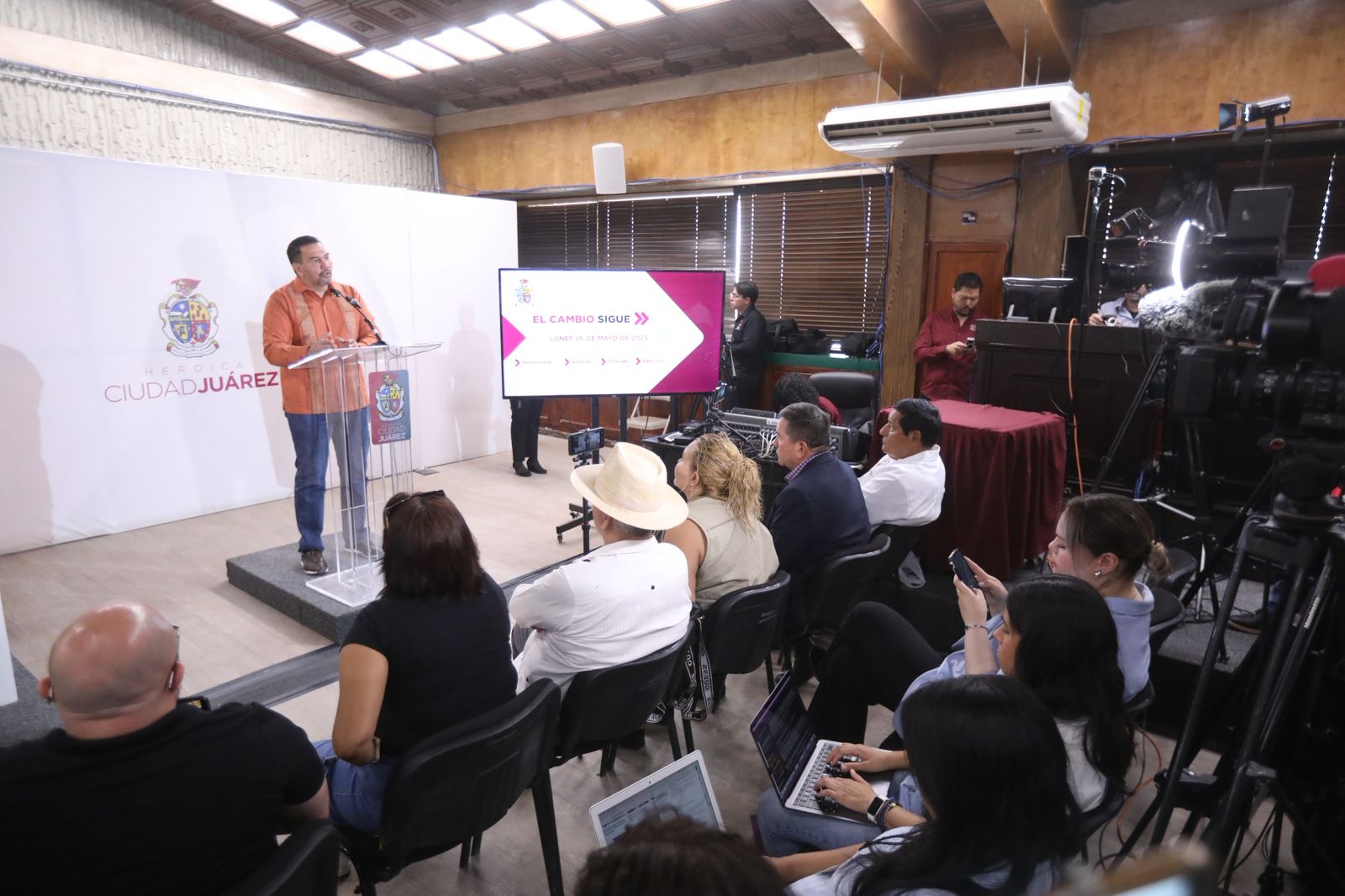 Durante la conferencia de cada semana en el salón Francisco I. Madero, de la presidencia municipal, el alcalde destacó que la empresa no contaba con el permiso de la Dirección de Parques y Jardines para retirar los árboles del camellón y aunque sí lo solicitó, todavía no se le concedía.